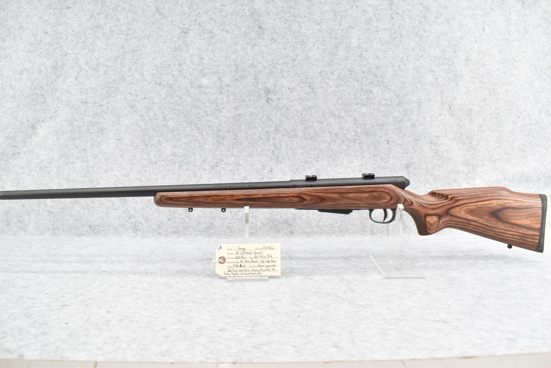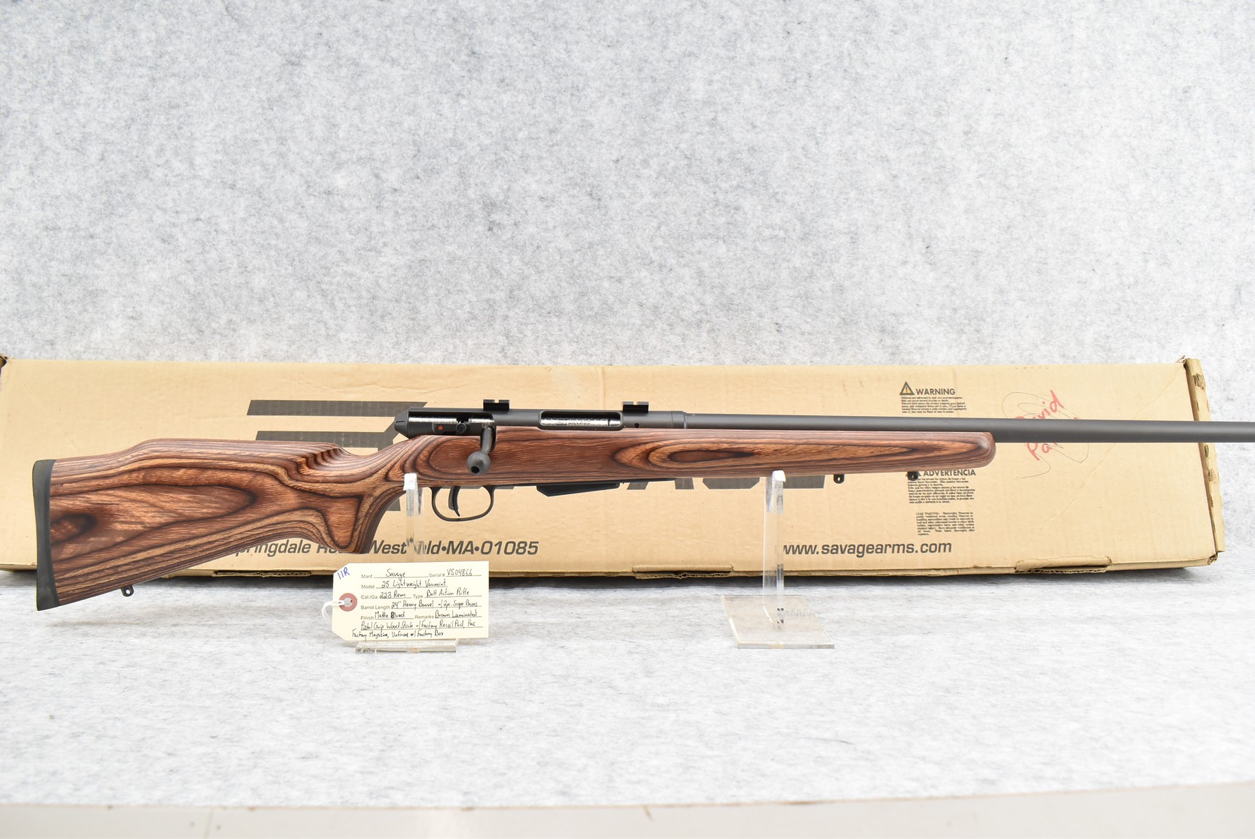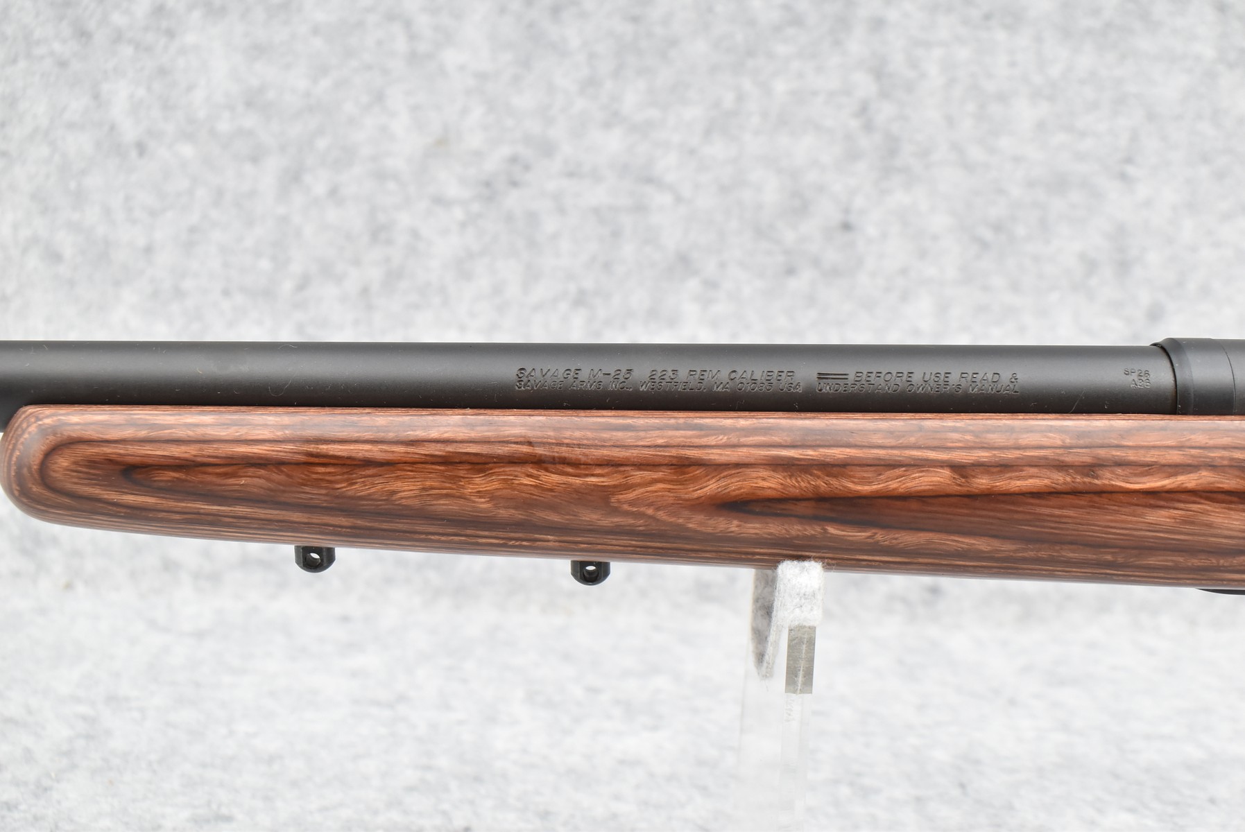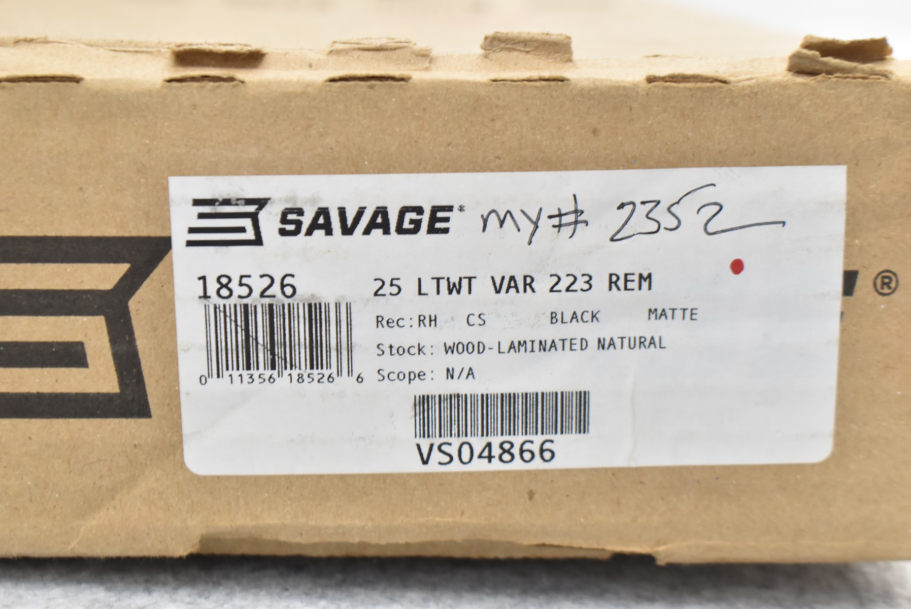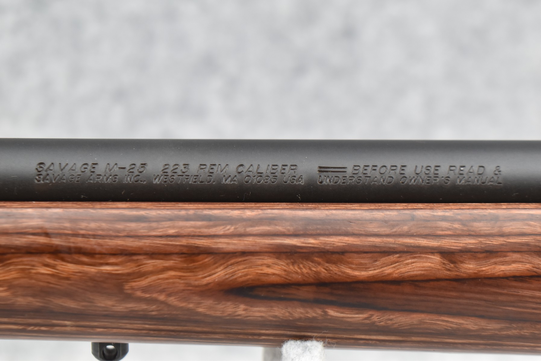 11R. Savage – Mod. 25 Lightweight Varmint – 223 Rem. Cal. Bolt Action Rifle – w/24” Heavy Barrel w/2-Piece Scope Bases – Matte Blued Finish – w/Brown Laminated Pistol Grip Wood Stock w/Factory Recoil Pad – Unfired w/Factory Box and Factory Magazine