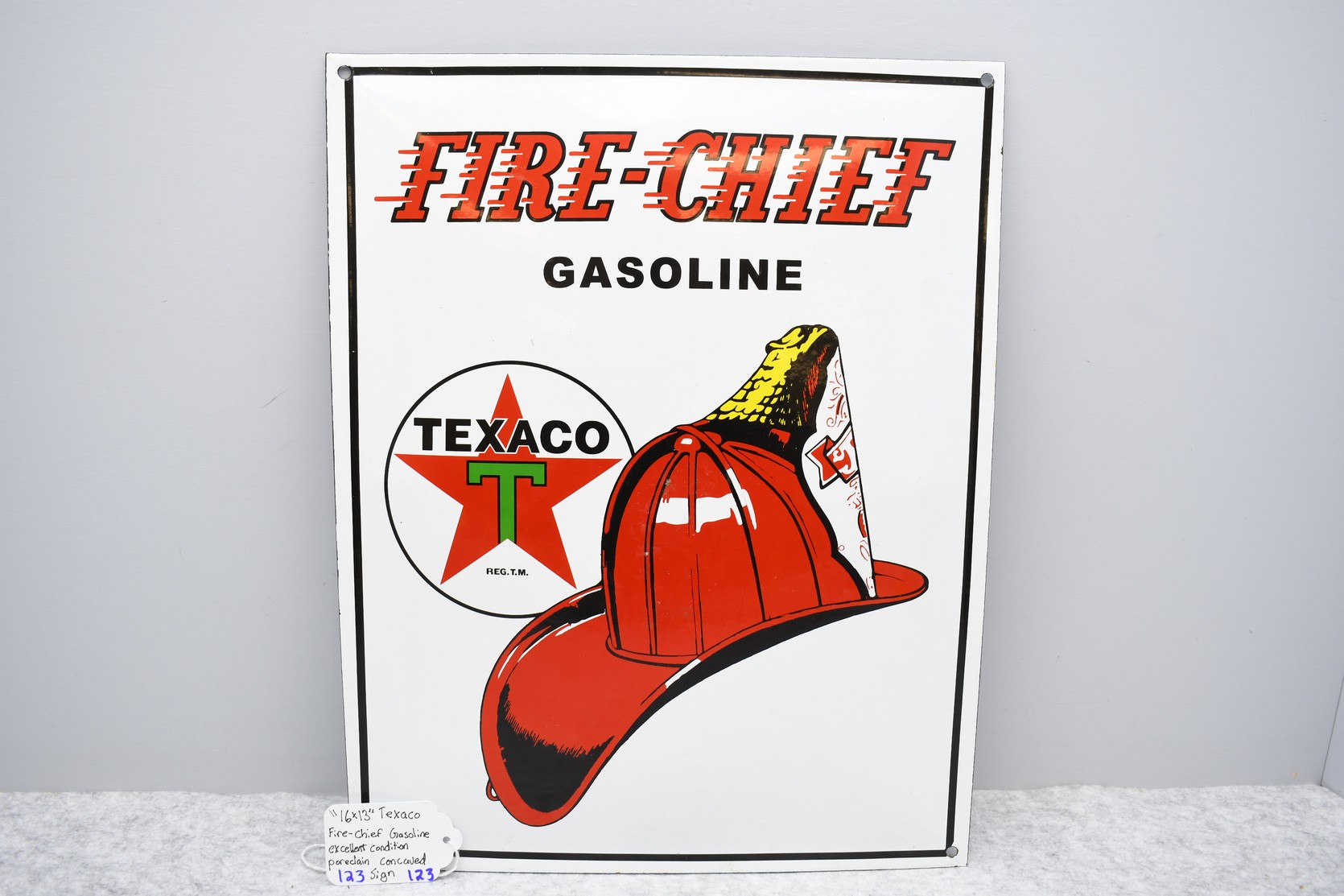 123. Texaco “Fire Chief” Gasoline Porcelain Sign – Sign is Domed and Porcelain on Both Sides – Measures 16” x 13”