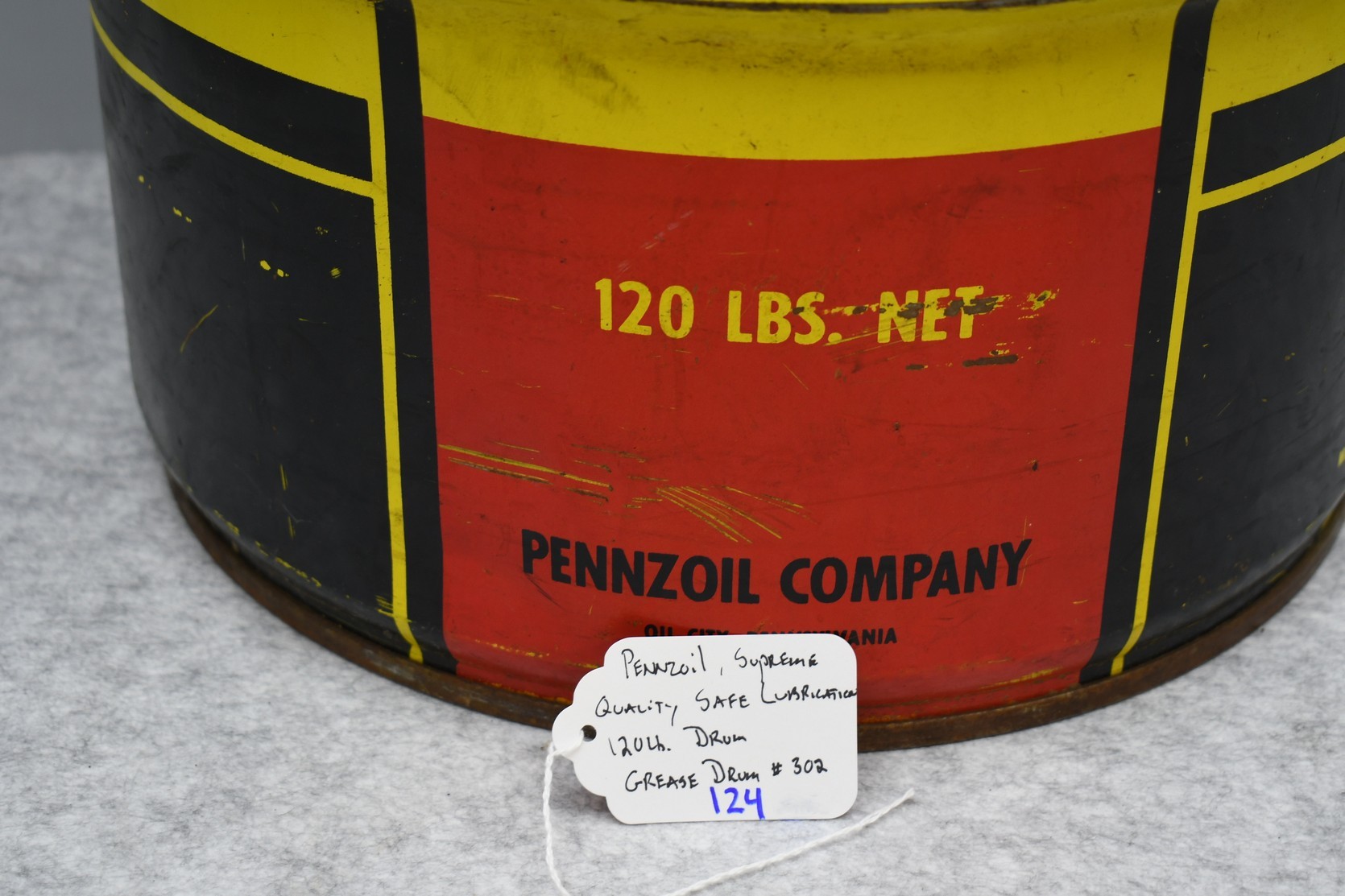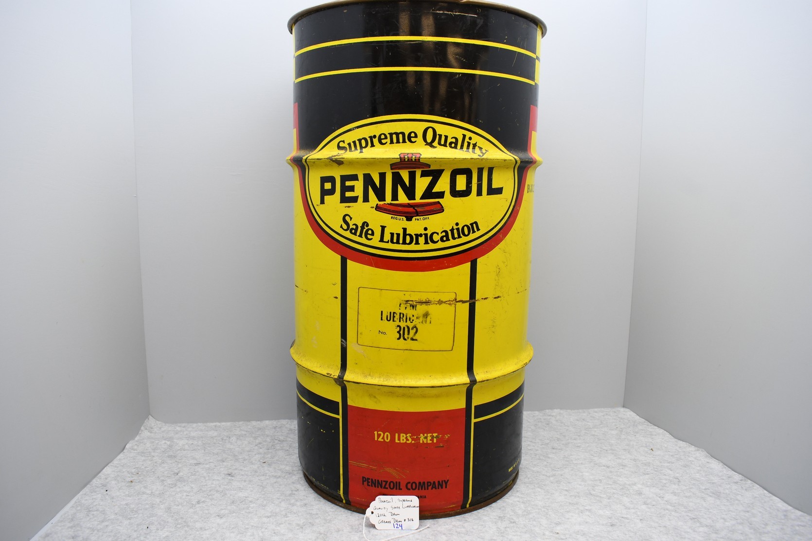 124. Pennzoil Supreme Quality Safe Lubrication 120LB No. 302 Grease Drum – Very Good Condition All Around – Will Not Ship, Pickup Only or You Must Arrange Your Own Shipping!