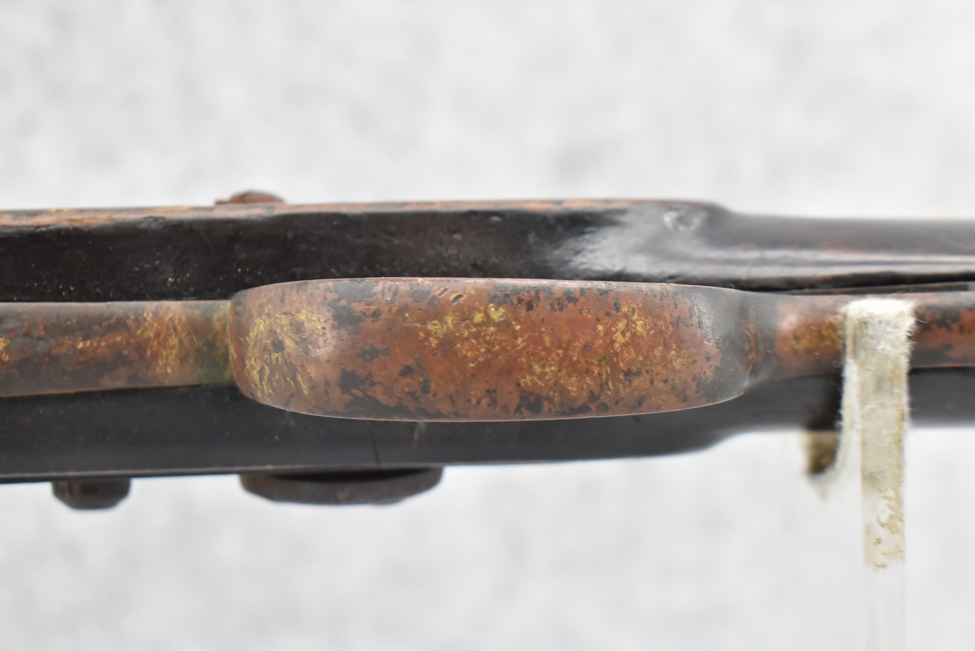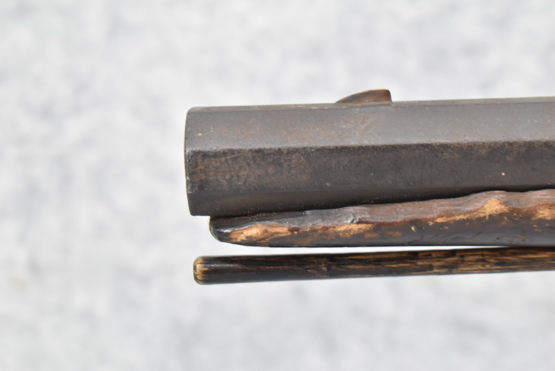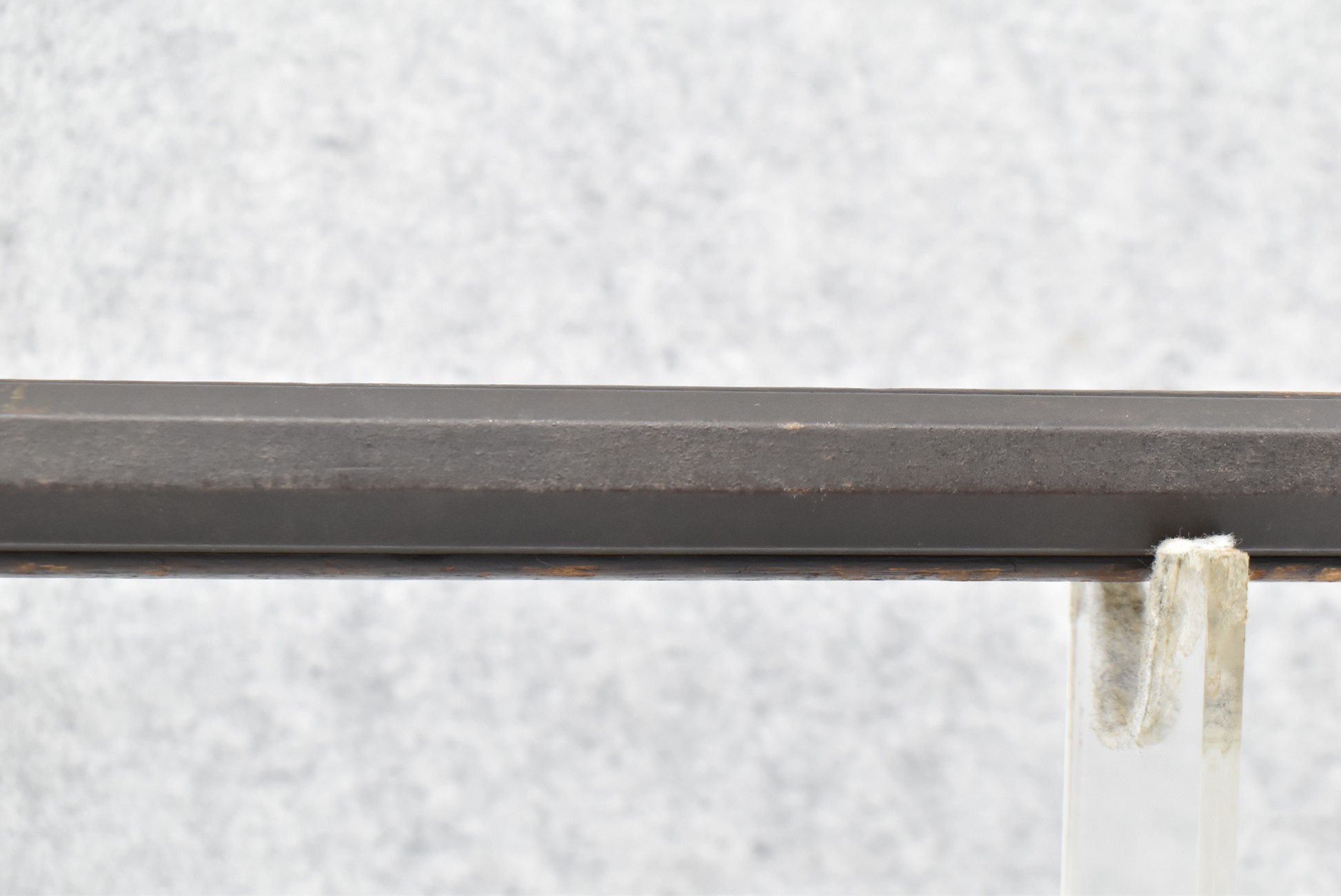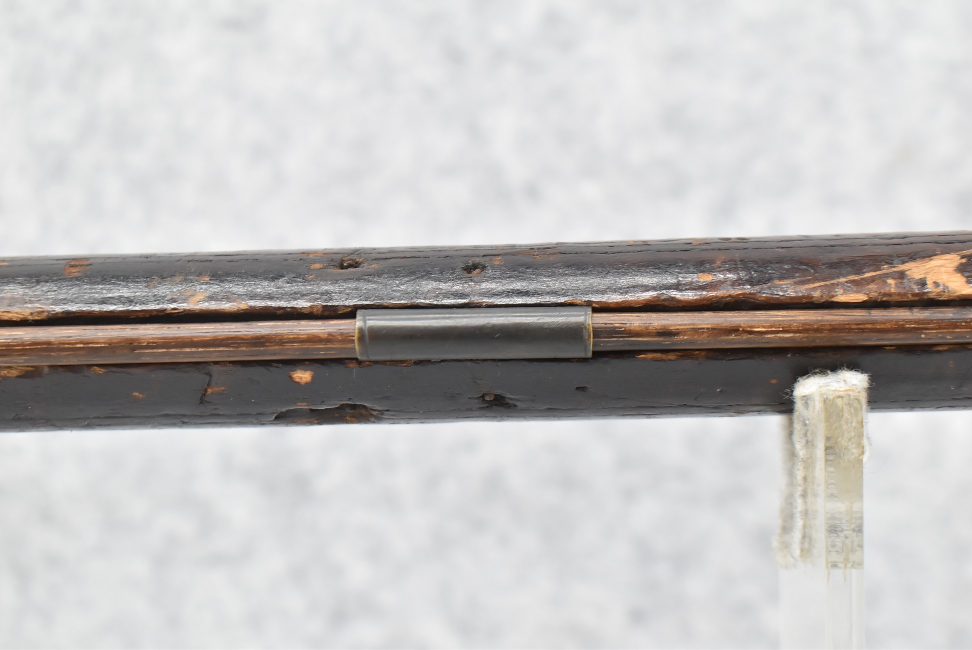 128. Converted to Percussion Full Stock Kentucky Rifle – w/36 Cal. 36” Octagon Barrel – w/Full Tiger Maple Wood Stock w/Brass Butt Plate & Brass Trigger Guard – w/Moore Henszey & Co. Percussion Lock – w/Double Set Triggers – w/Ram Rod – Possible Huntingdon County – Overall Length of 52”