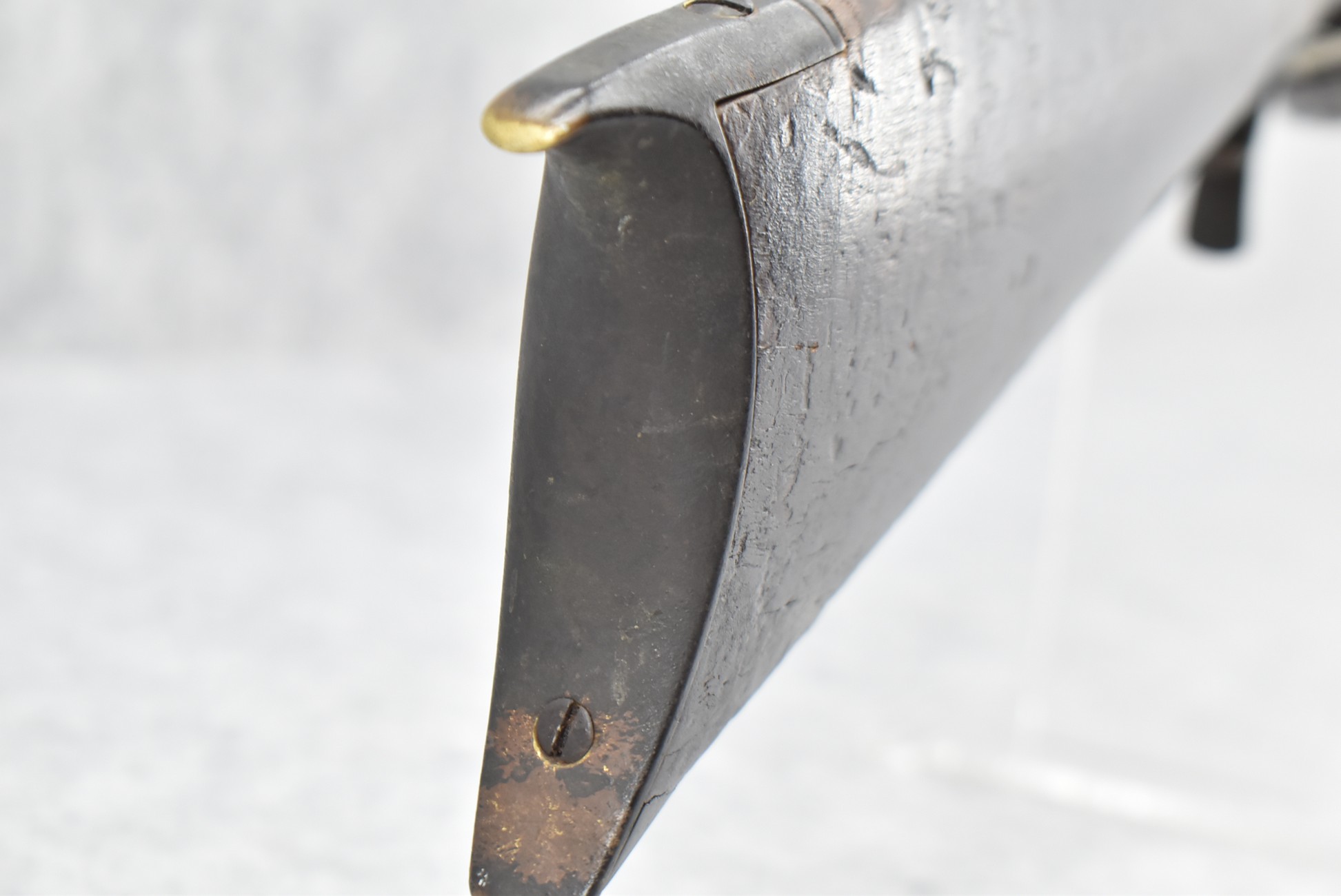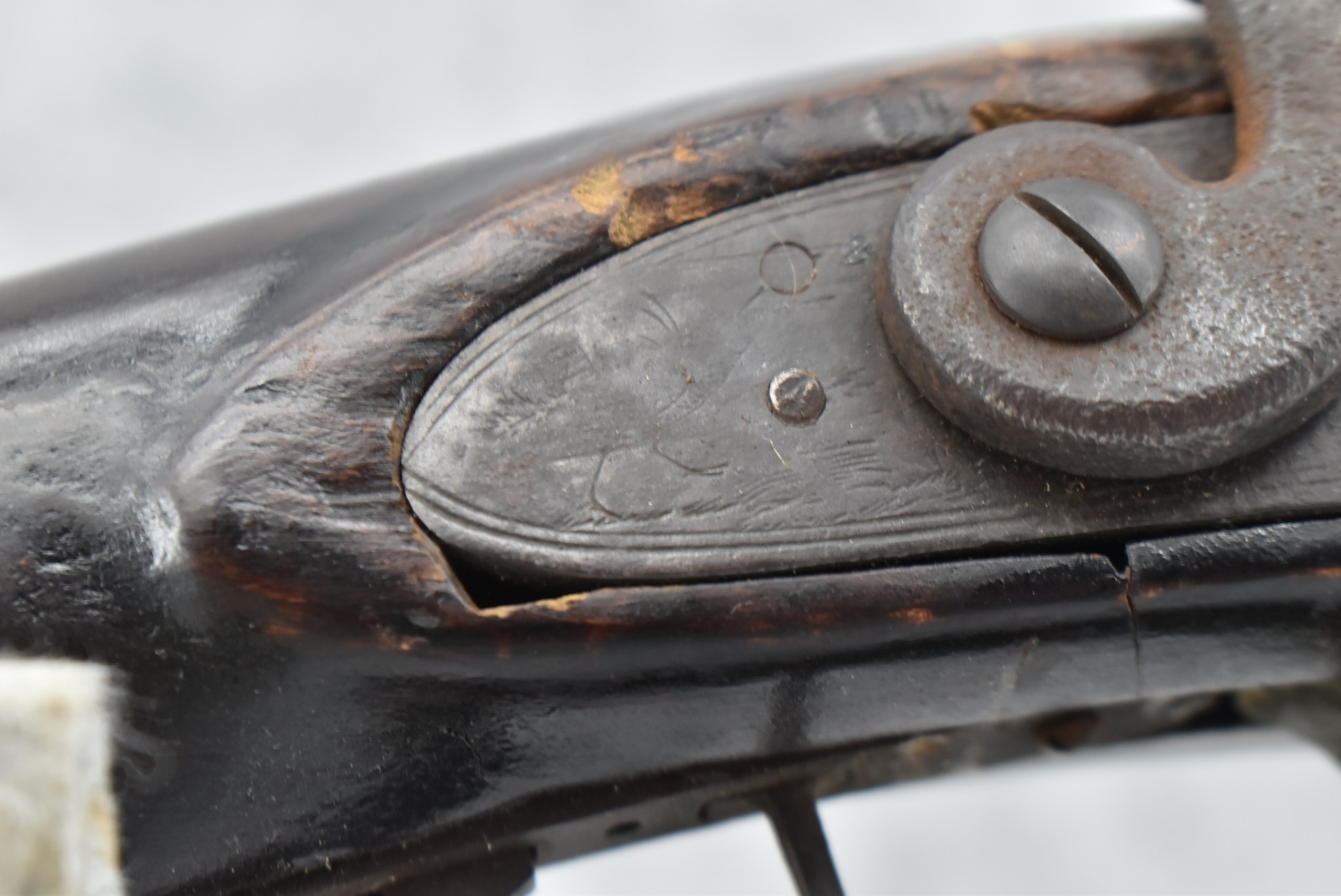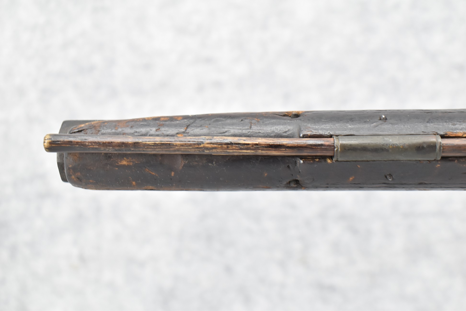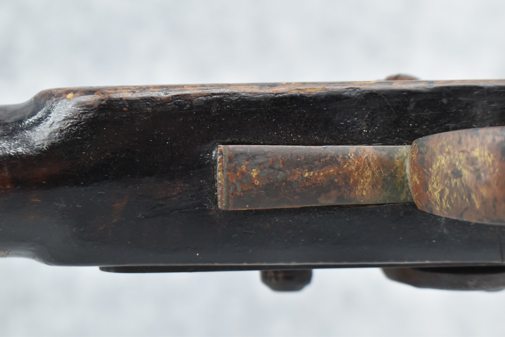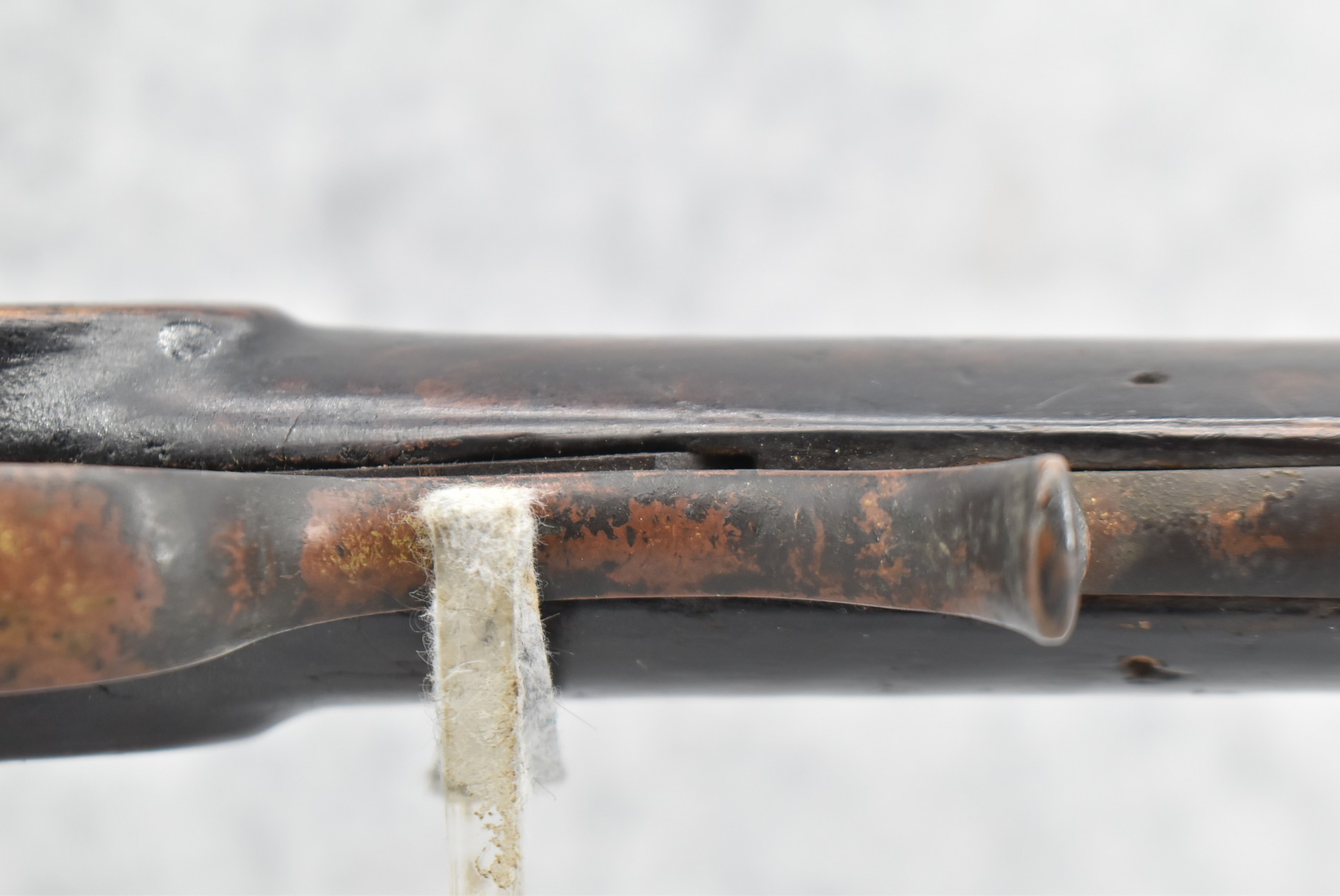 128. Converted to Percussion Full Stock Kentucky Rifle – w/36 Cal. 36” Octagon Barrel – w/Full Tiger Maple Wood Stock w/Brass Butt Plate & Brass Trigger Guard – w/Moore Henszey & Co. Percussion Lock – w/Double Set Triggers – w/Ram Rod – Possible Huntingdon County – Overall Length of 52”
