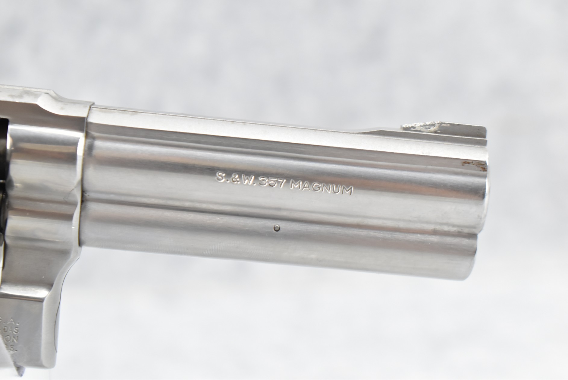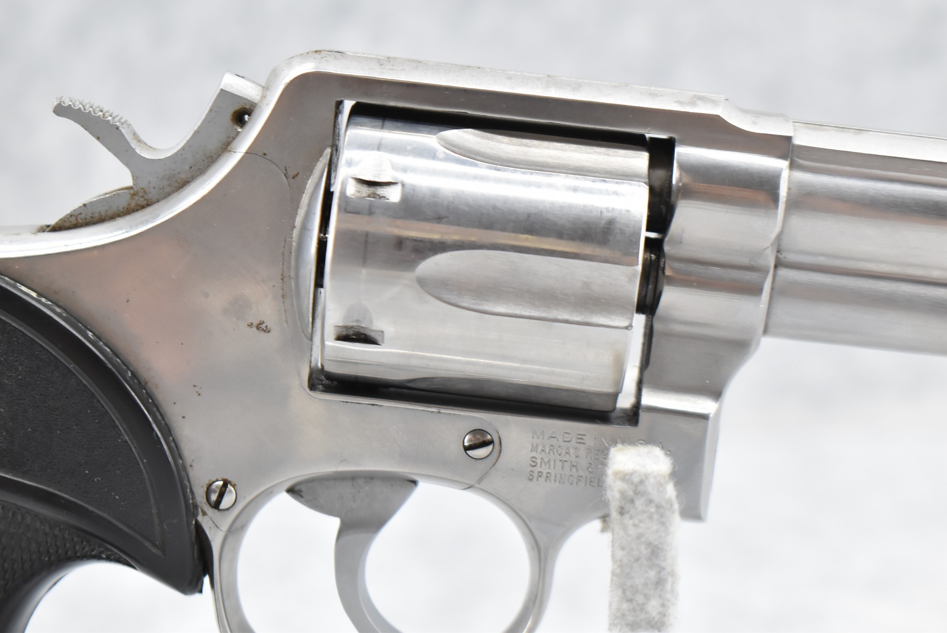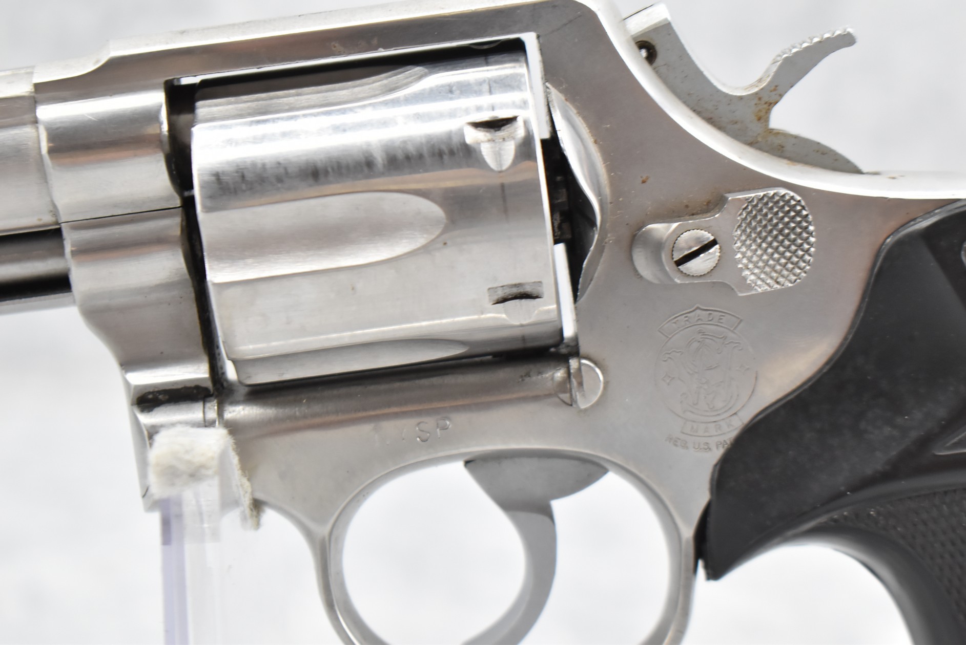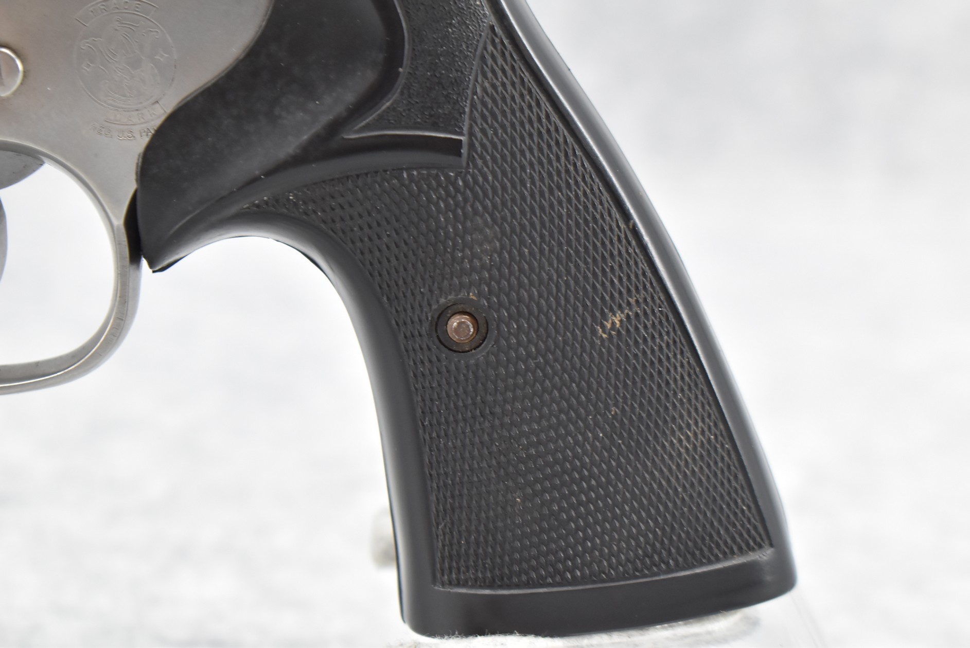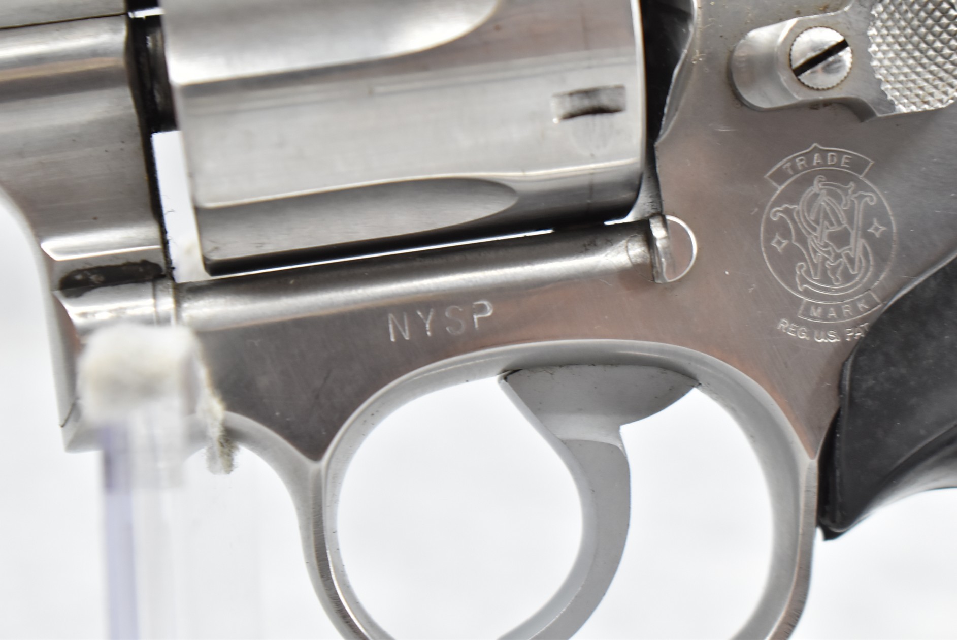 128R. Smith & Wesson – Mod. 681 “New York State Police” – 357 Mag. Cal. Double Action Revolver – w/4” Barrel w/Ramp Blade Front & Notch Rear Sights – Stainless Finish – w/Pachmayr Presentation Checkered Black Rubber Grips – “NYSP” Inscribed on Frame Left Side – w/Original S&W Black Leather Holster – 53,180 Mfg. Between 1980-1992 – Only 500 Guns Sipped to NYSP in 1981