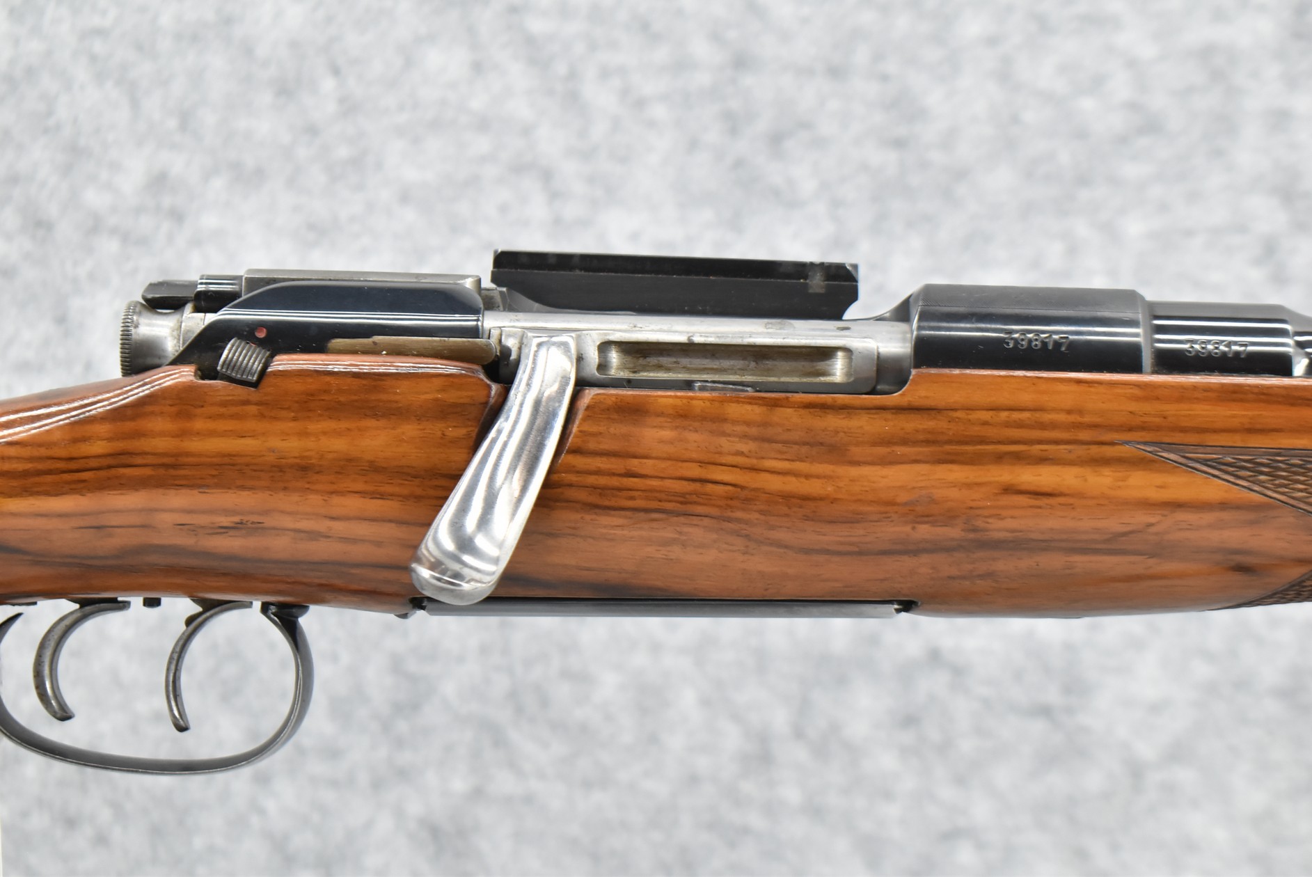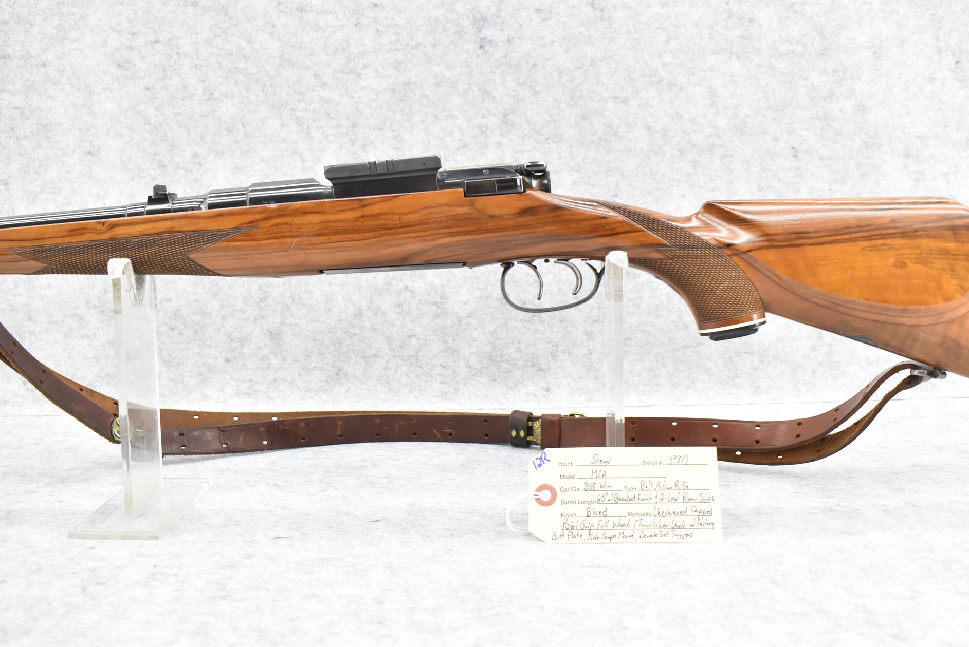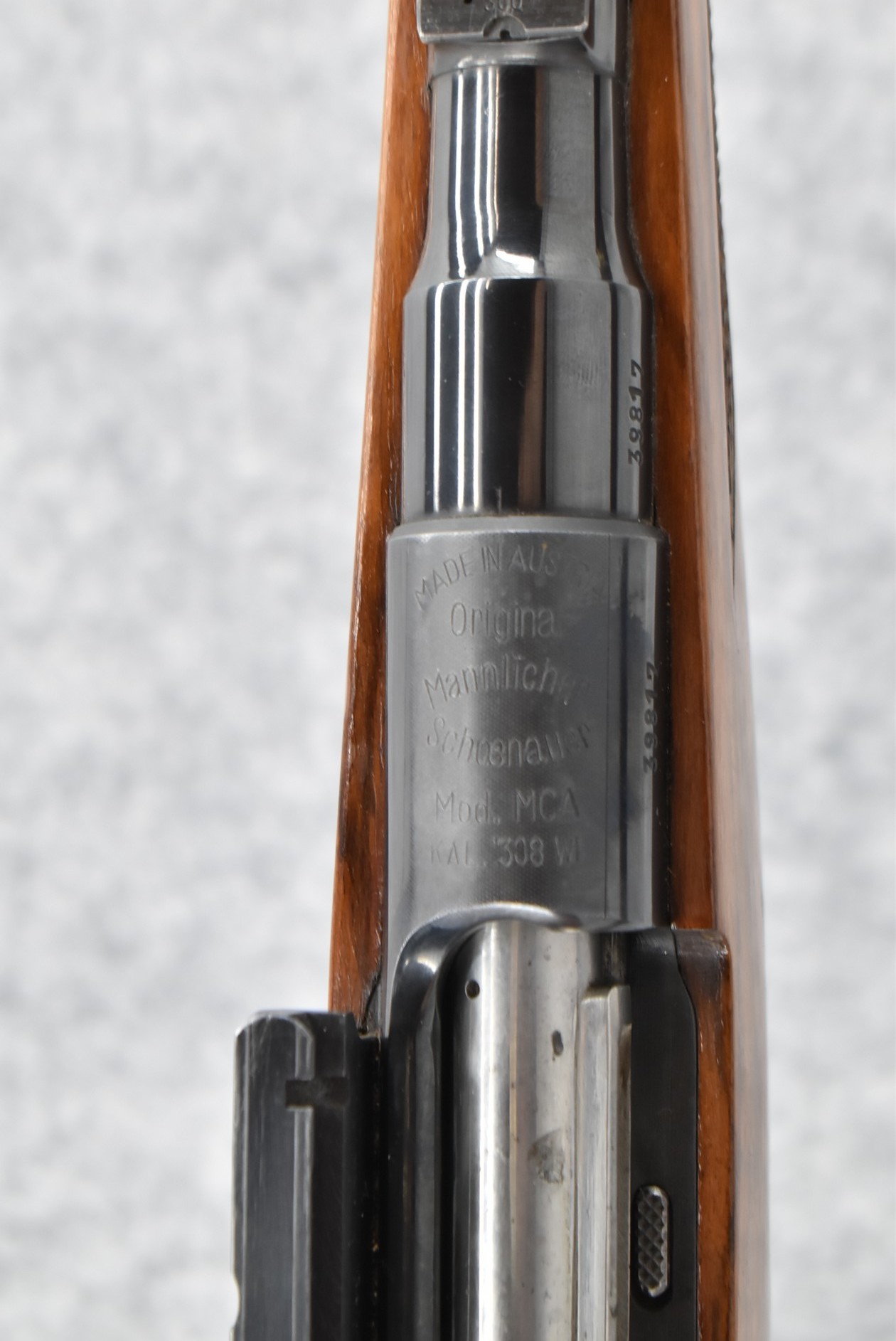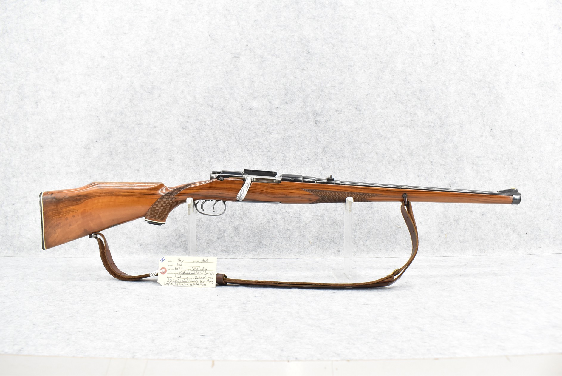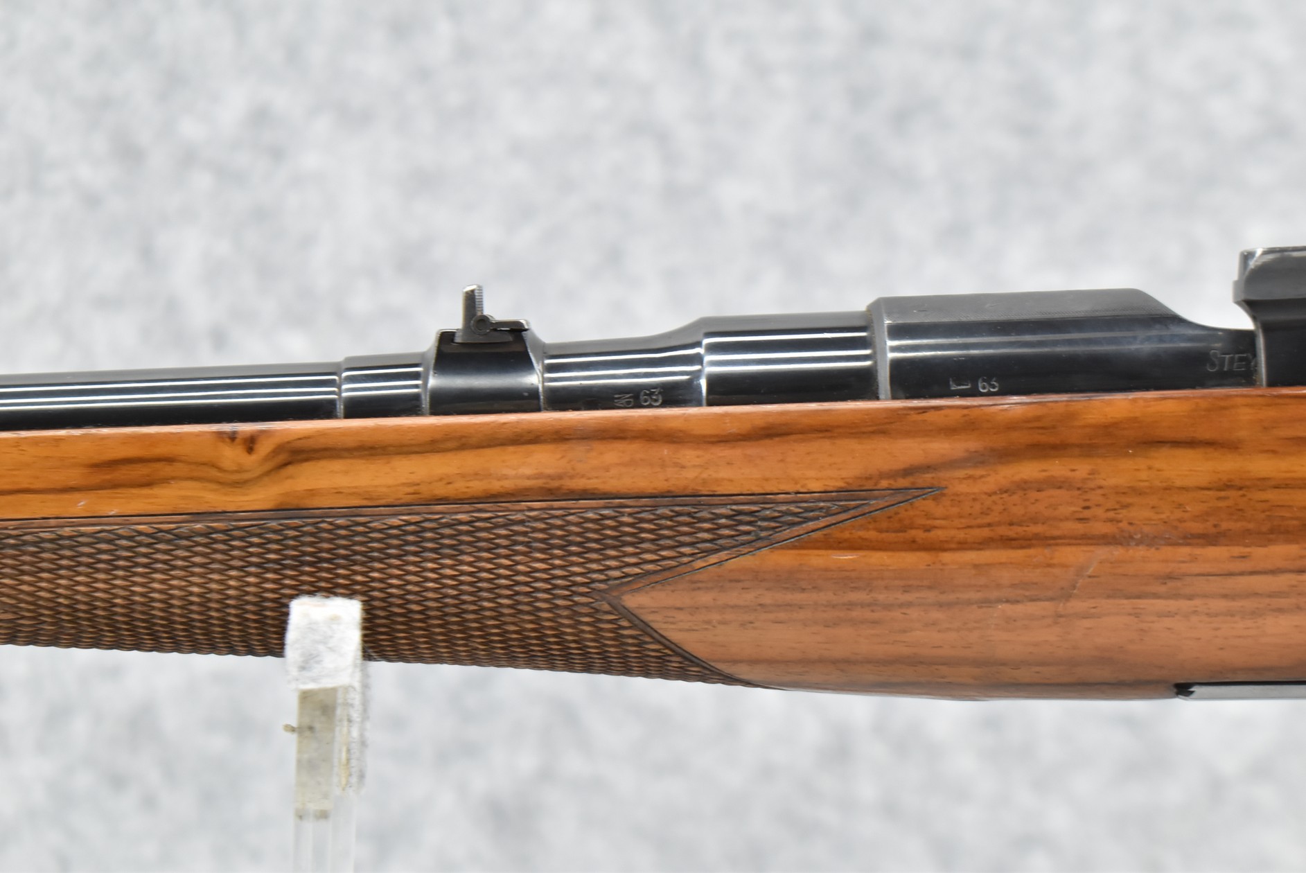 12R. Steyr – Mod. MCA – 308 Win. Cal. Bolt Action Rifle – w/20” Barrel w/Beaded Front & 2-Leaf Rear Sights – Blued Finish – w/Checkered Caped Pistol Grip Full Wood Mannlicher Stock w/Factory Butt Plate – w/Double Set Triggers – w/Side Scope Mount Base