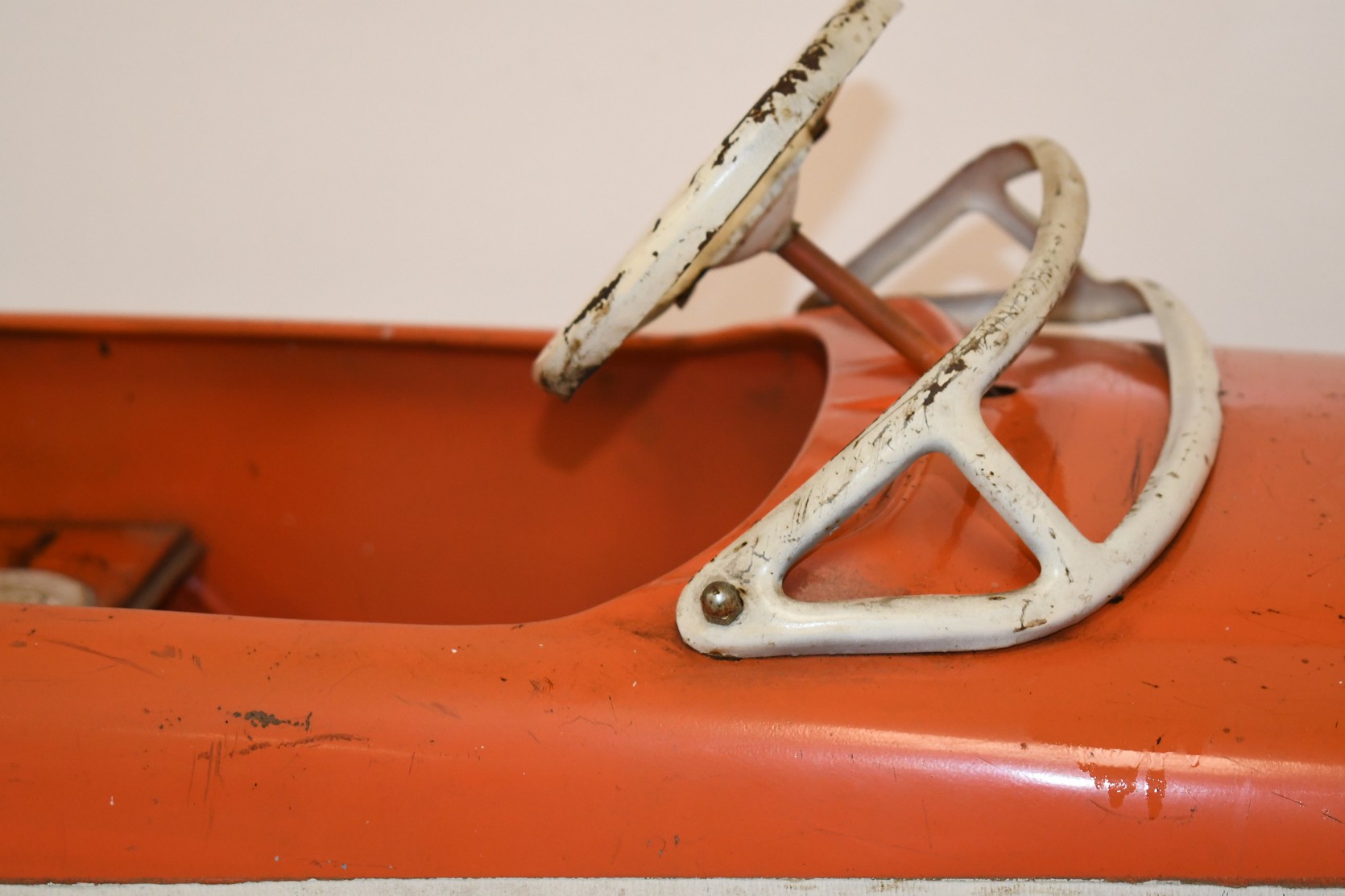 131. Un-Branded Pedal Car – Orange and White in Color – Will Not Ship, Pickup Only or You Must Arrange Your Own Shipping!
