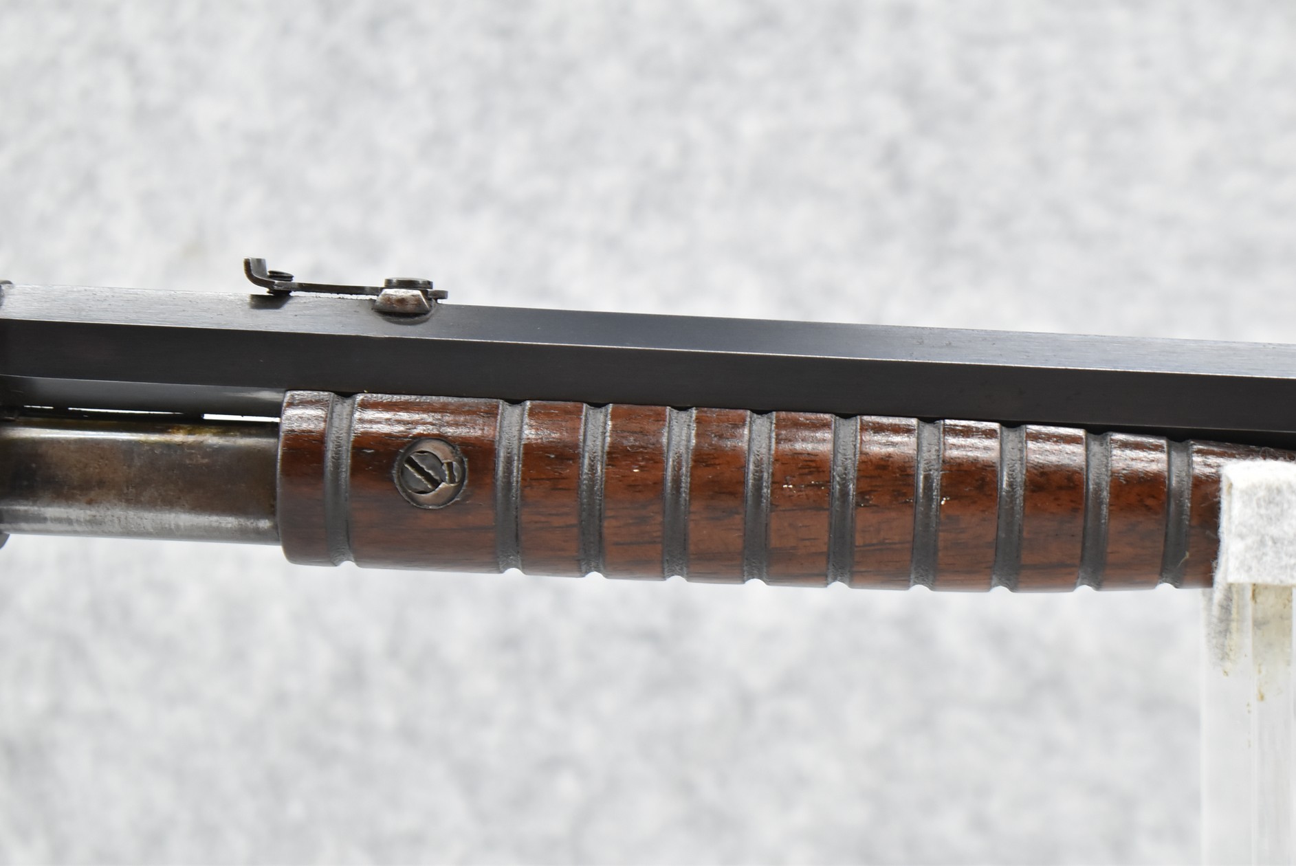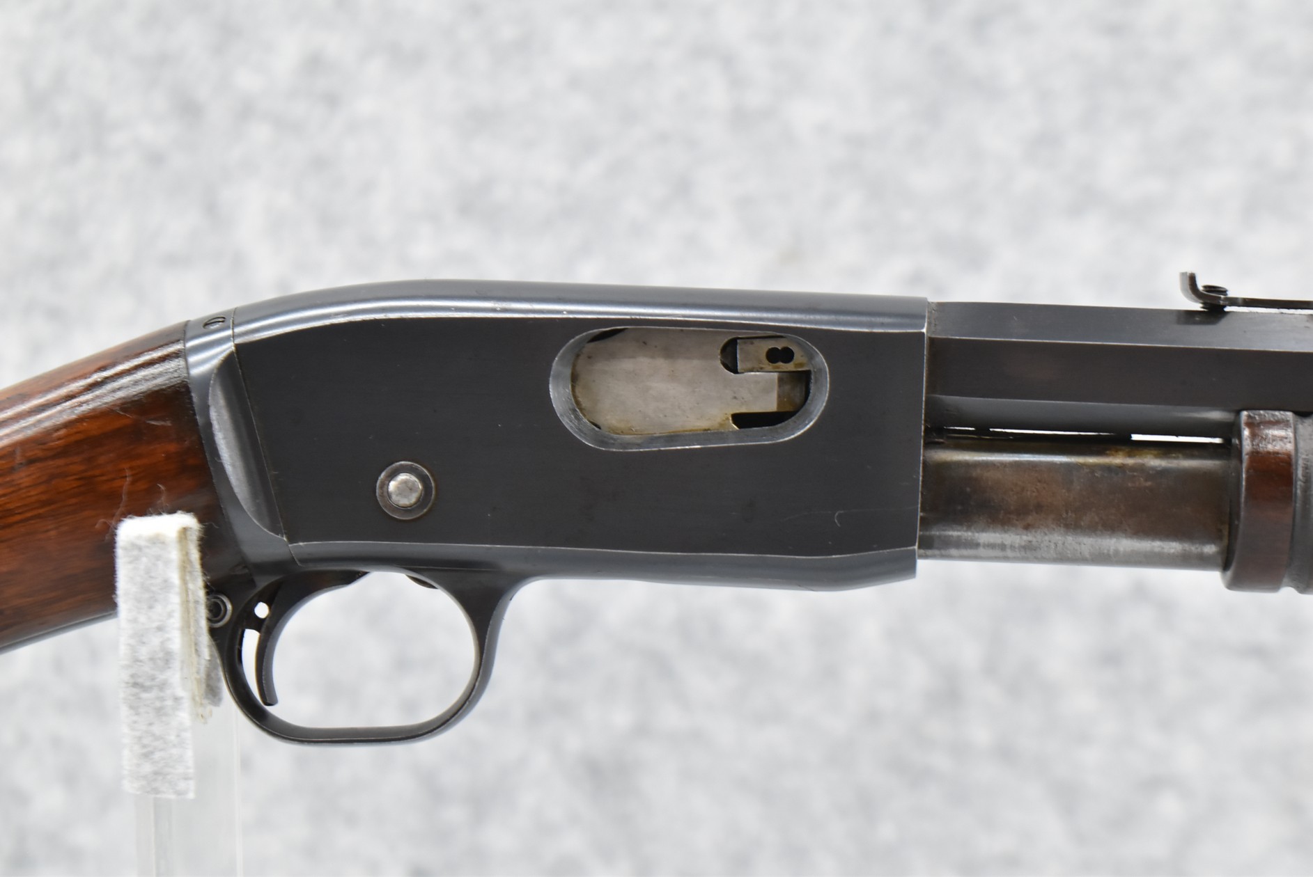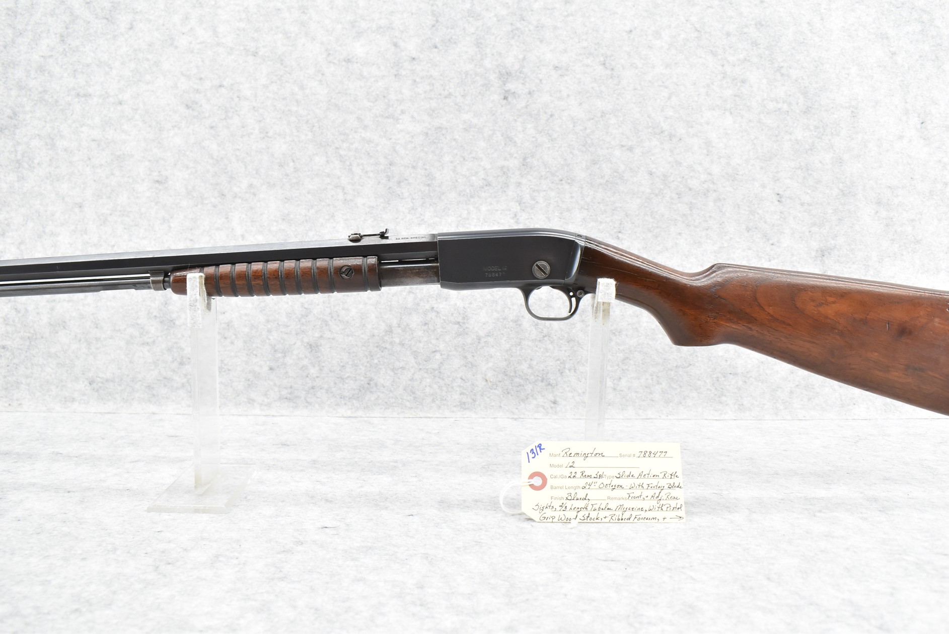 131R. Remington – Mod. 12 – 22 Rem. Spl. Cal. Pump Action Rifle – w/24” Octagon Barrel w/Factory Blade Front & Adj. Rear Sights w/2/3 Length Tubular Magazine – w/Pistol Grip Wood Stock & Ribbed Forearm w/Remington/UMC Crescent Metal Butt Plate