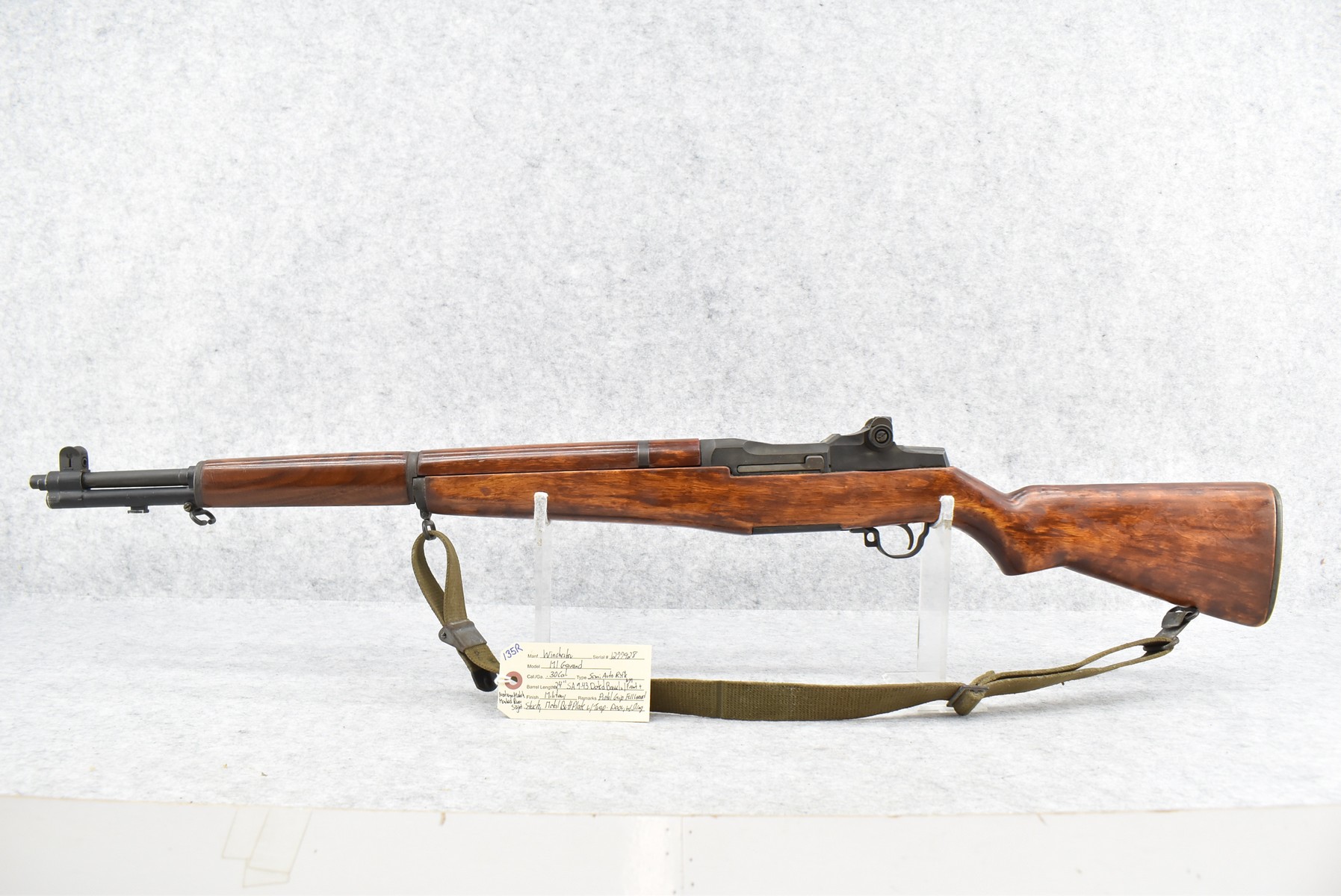 135R. Winchester – Mod. M1 Garand – 30 Cal. Semi-Auto Rifle – w/24” SA 9-43 Dated Barrel w/NM Front & National Match Marked Rear Sights – Military Finish – w/Pistol Grip Full Wood Stock w/Metal Butt Plate w/Trap Door – w/Sling