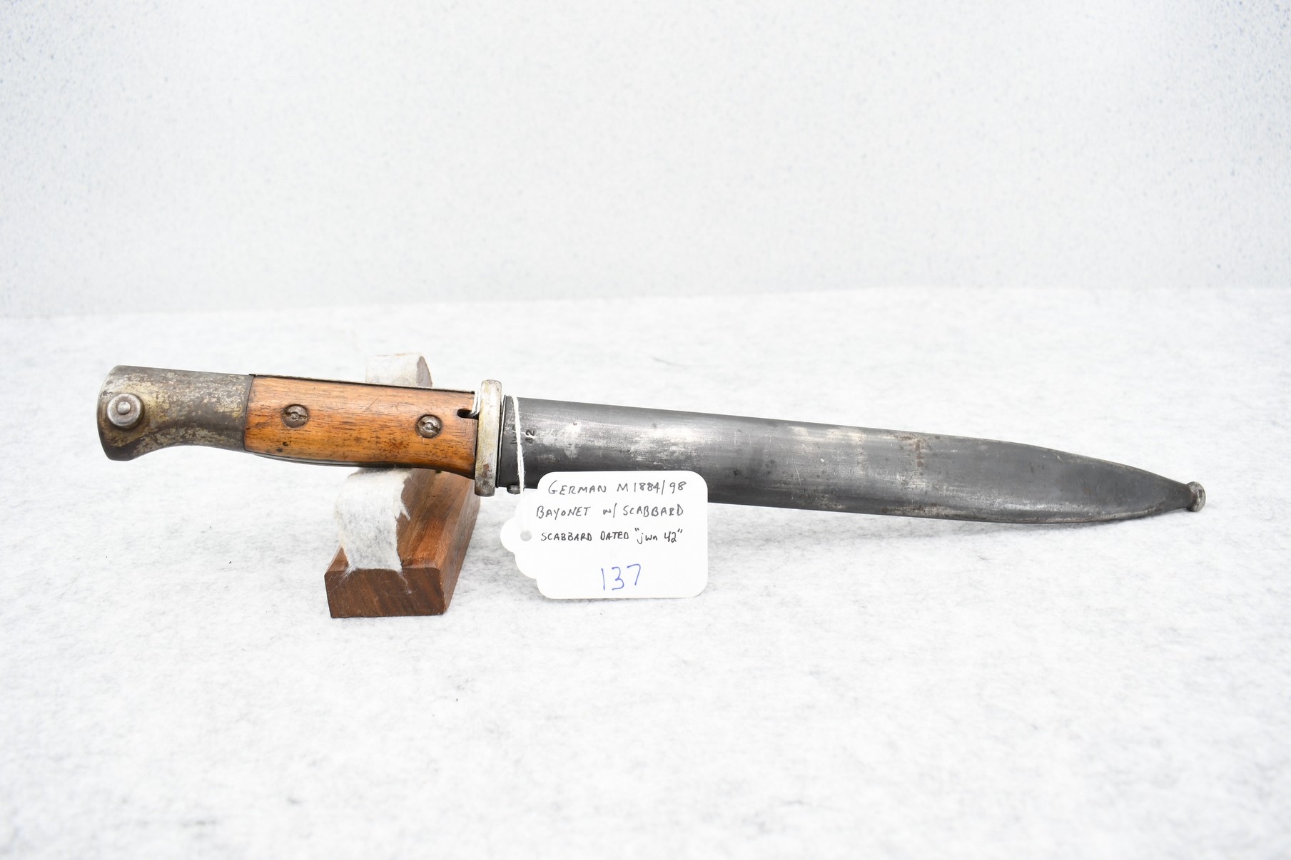 137. German M1884/98 Bayonet w/Scabbard – Scabbard Dated “jwn 42”