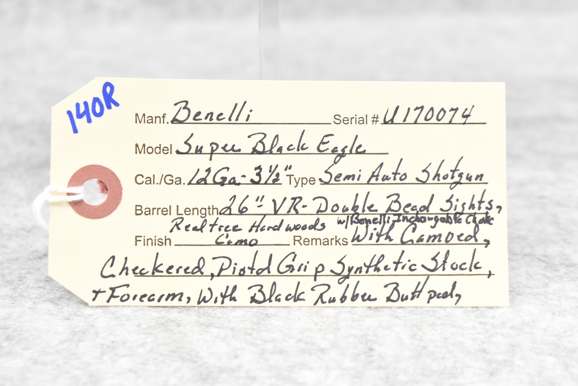 140R. Benelli – Mod. Super Black Eagle – 12ga. 3 ½” Semi-Auto Shotgun – w/26” Vent-Rib Barrel w/Double Bead Sights & Benelli Interchangeable Choke – Full Realtree Hardwoods Camo Finish – w/Camoed Checkered Pistol Grip Synthetic Stocks w/Factory Butt Pad