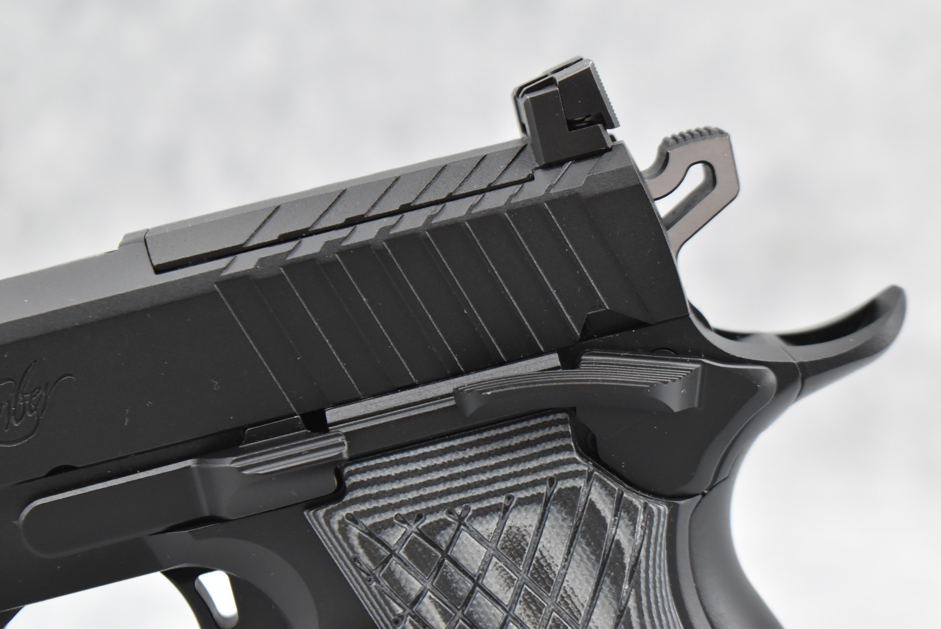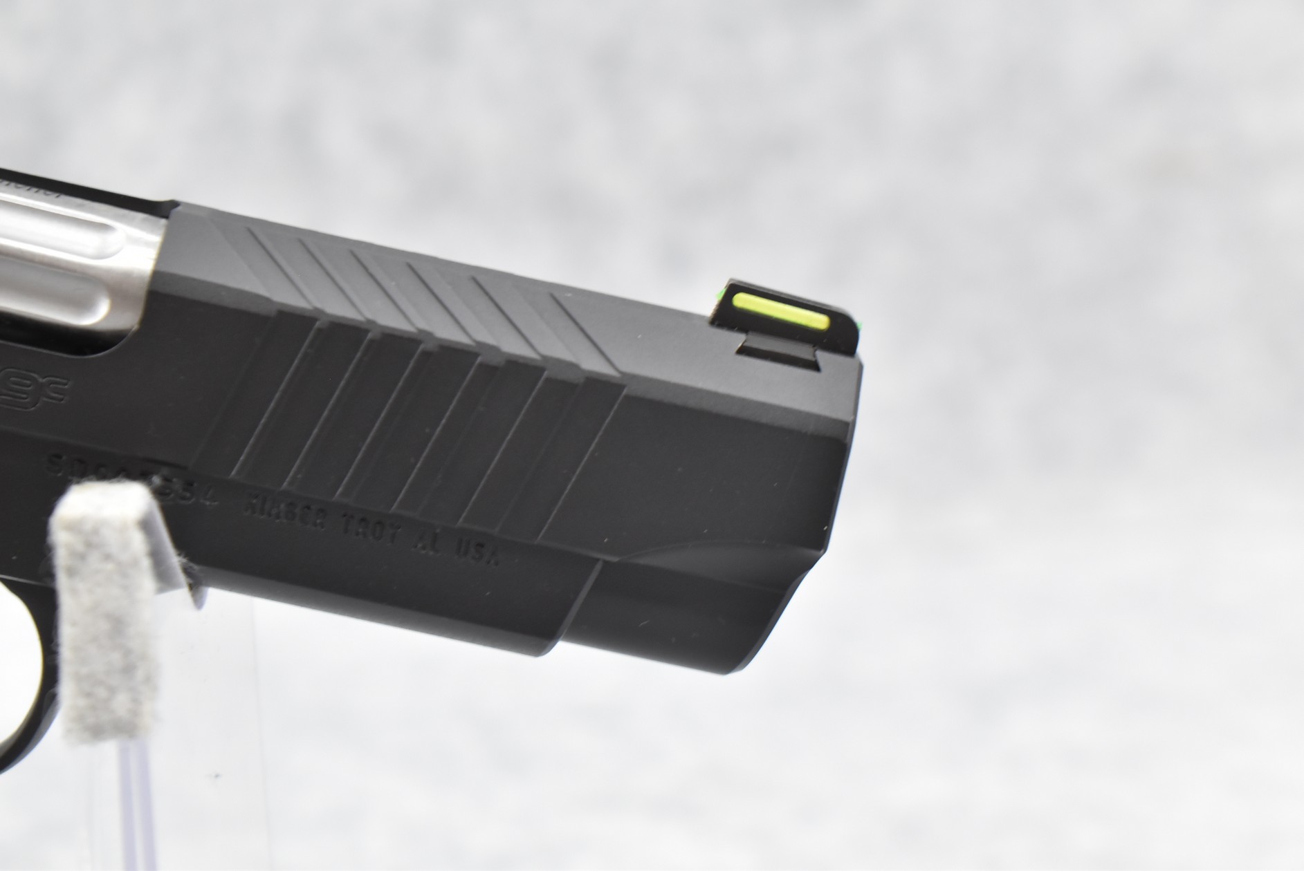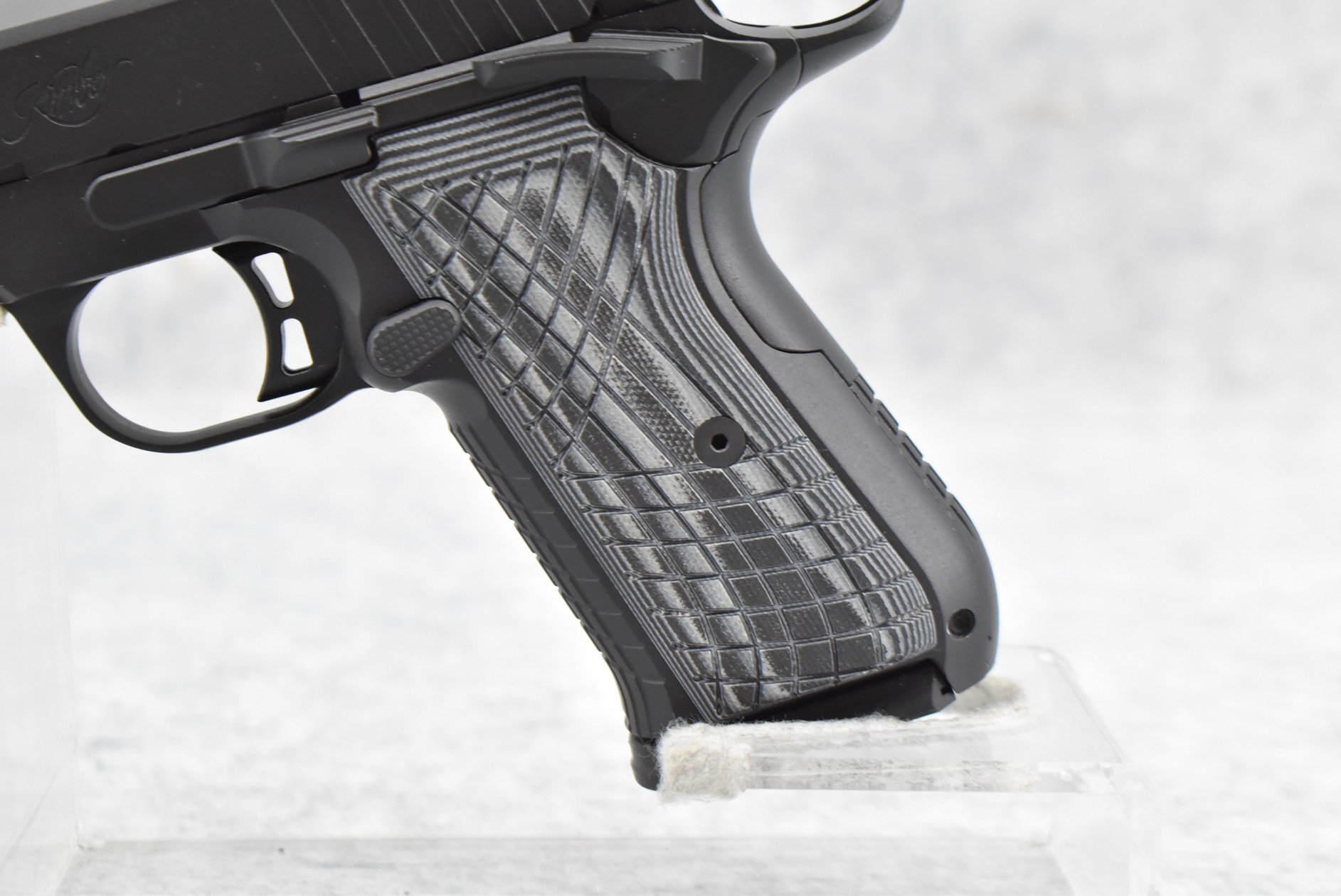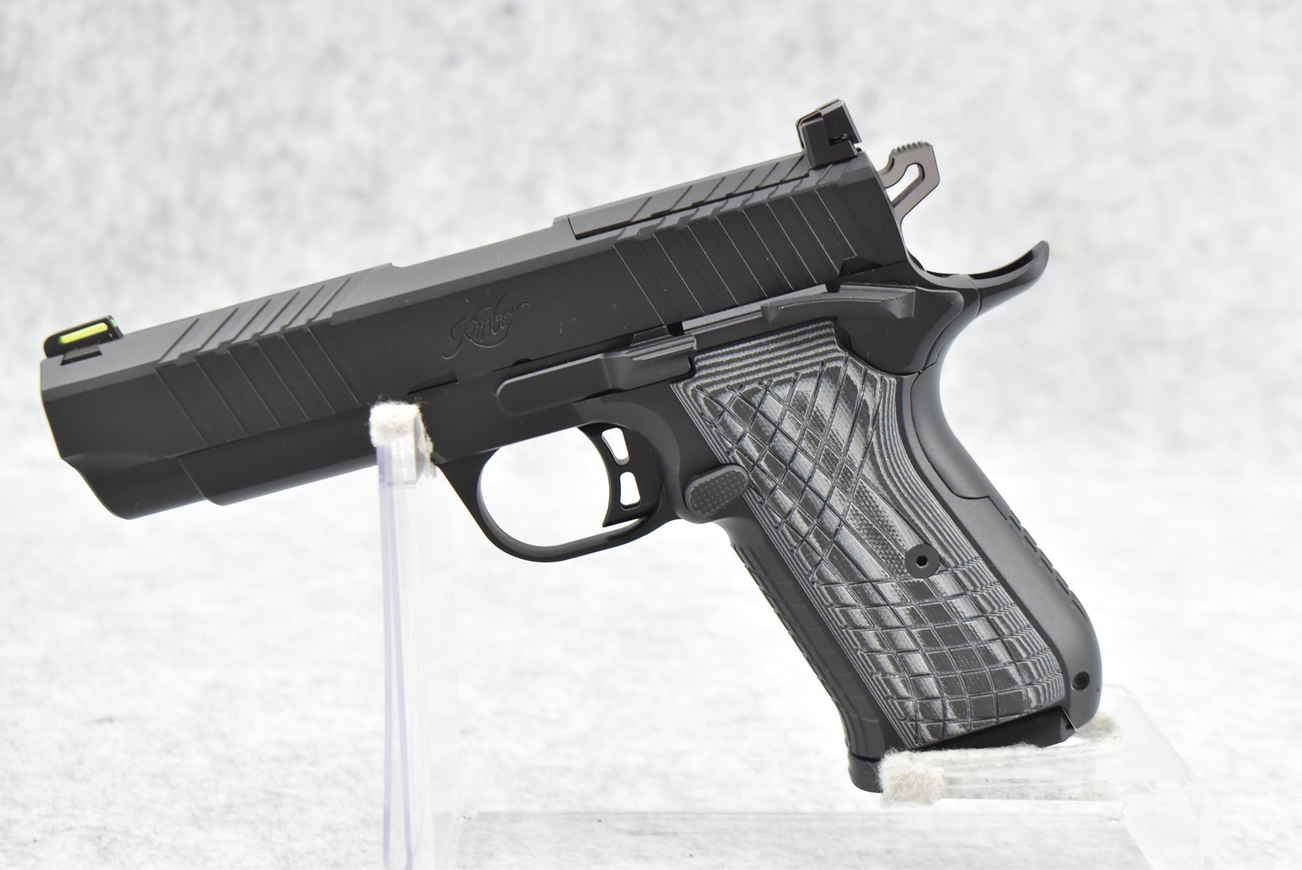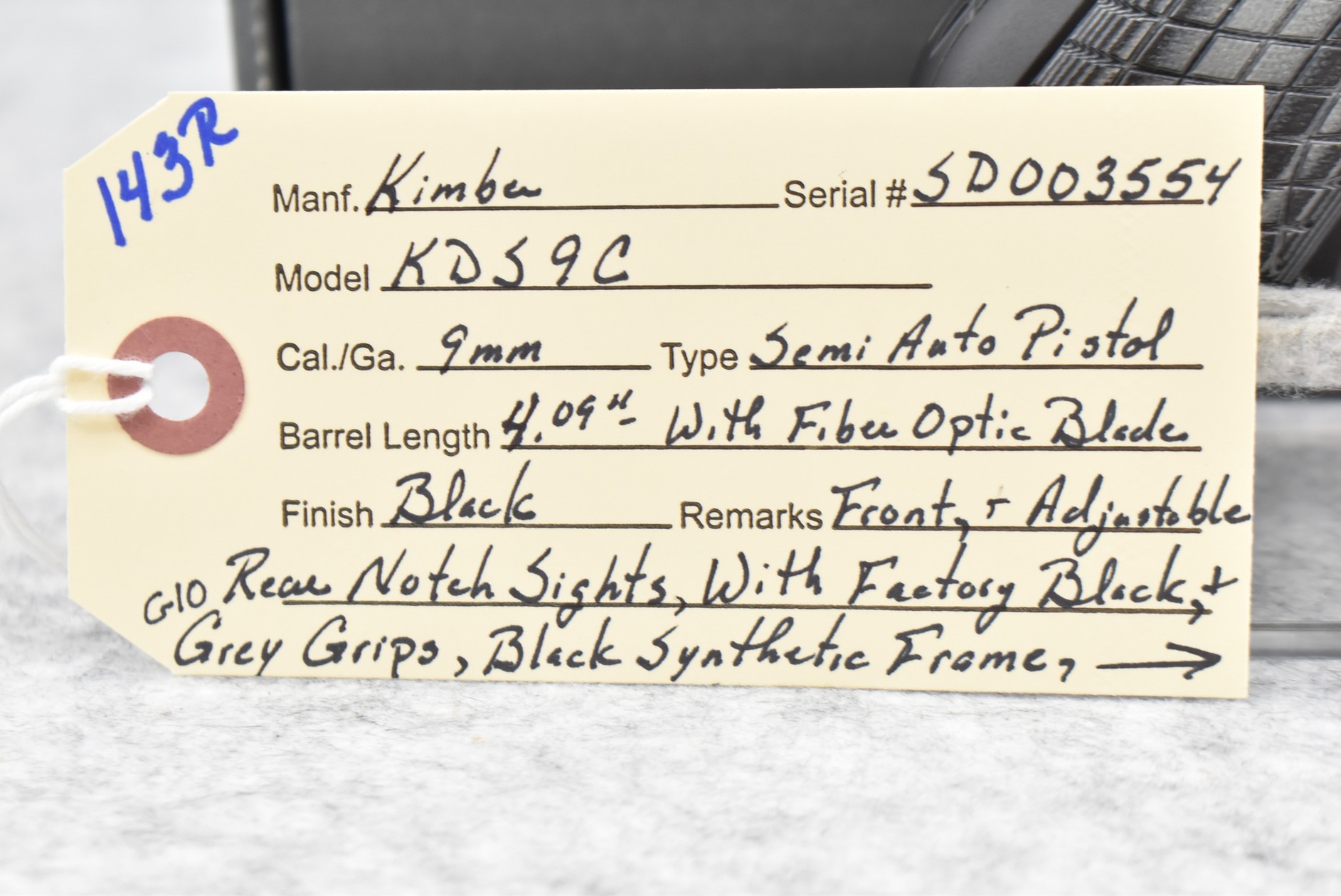 143R. Kimber – Mod. KDS9C – 9mm Cal. Semi-Auto Pistol – w/4.09” Barrel w/Fiber Optic Blade Front & Adj. Rear Notch Sights – Matte Black Finish – w/Factory Black & Gray G10 Grips – As New w/Factory Box, Soft Case, Manuals & 2 Detachable Magazines
