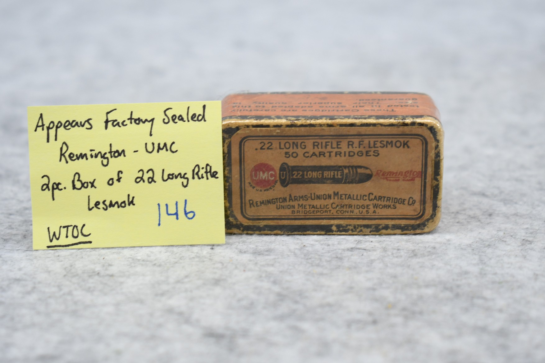 146. Remington-UMC – 2pc. Box of 22 Long Rifle Lesmok – Appears Factory Sealed – WTOC