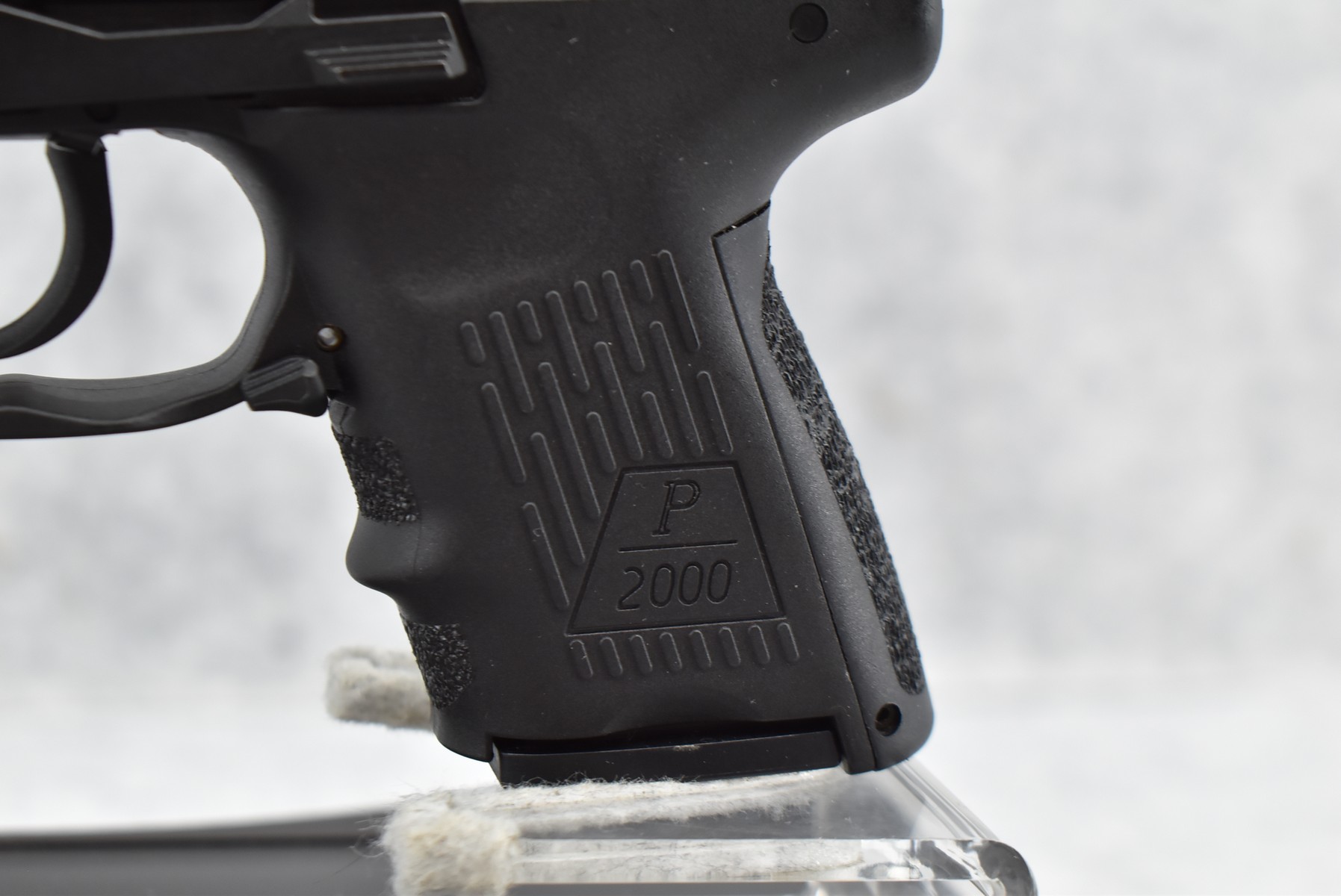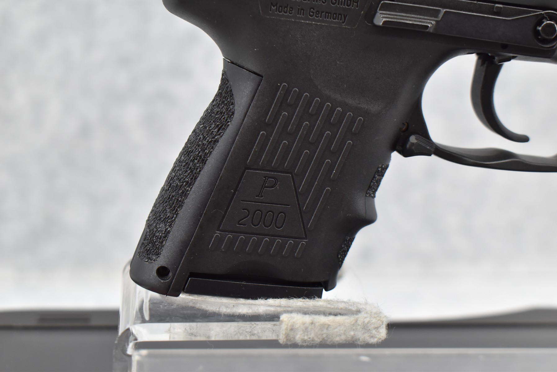 147R. H. & K. – Mod. P2000 SK – 9mmX19 Cal. Semi-Auto Pistol – w/3/16” Barrel w/3-Dot Trijicon Night Blade Front & Notch Rear Adj. Sights – Matte Black Finish – w/Factory Detachable Magazine – As New w/Hard Case, Manuals & Accessories