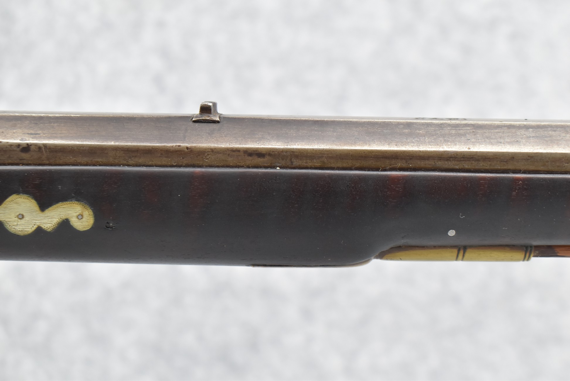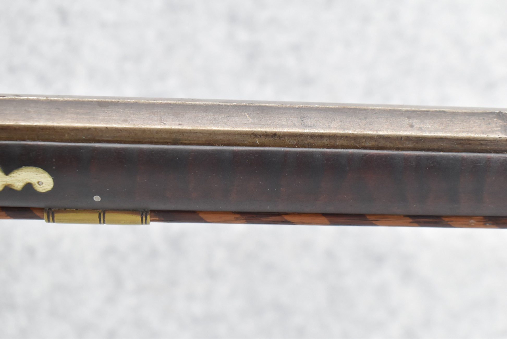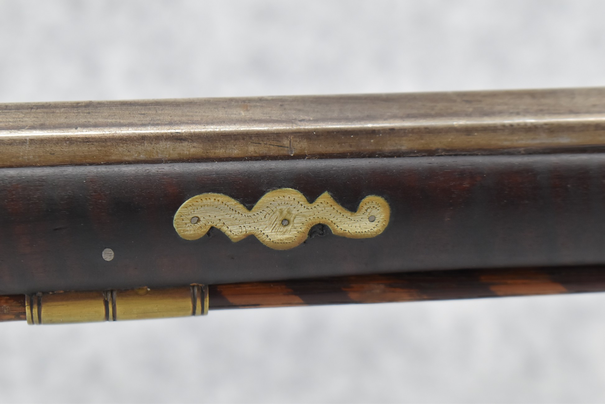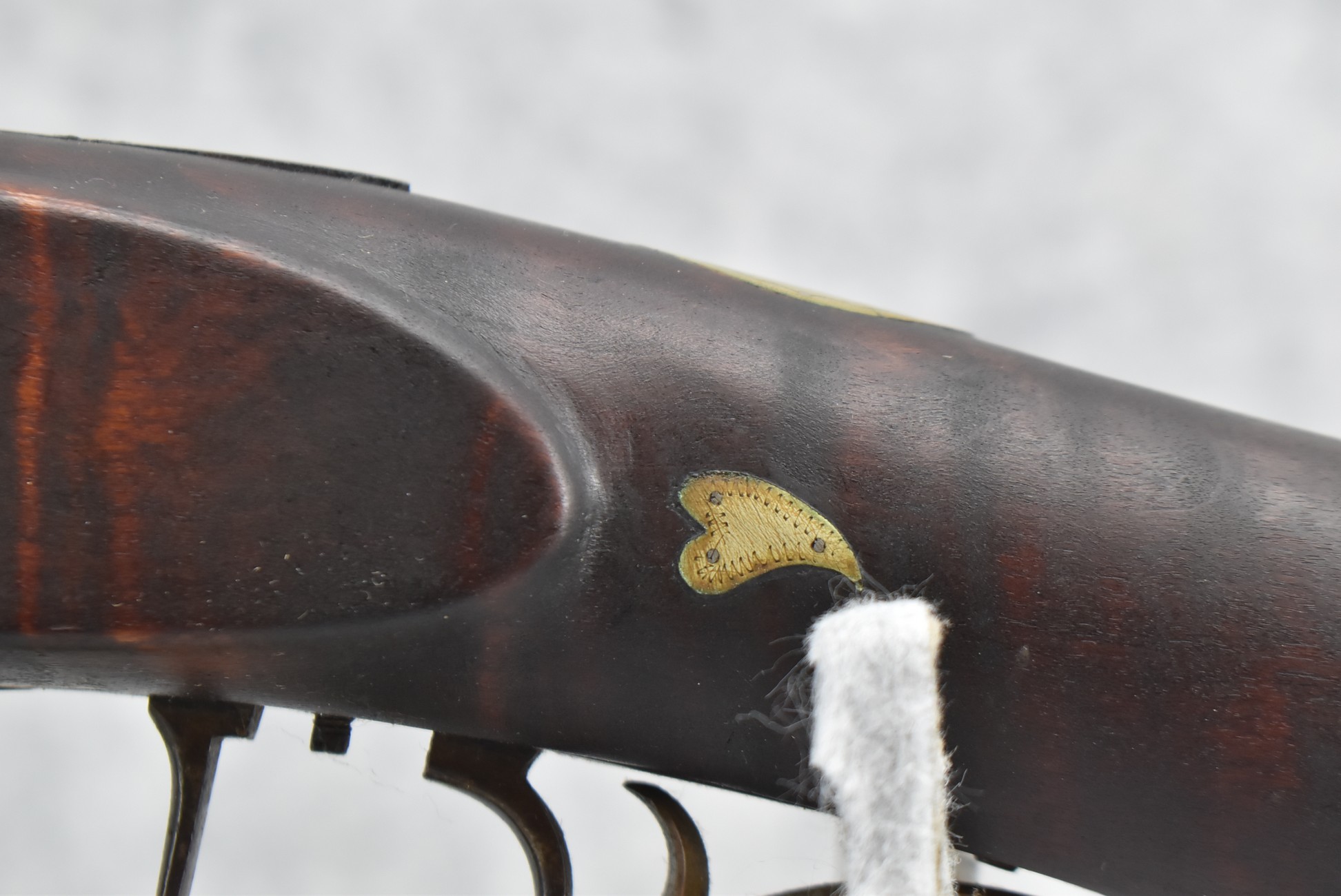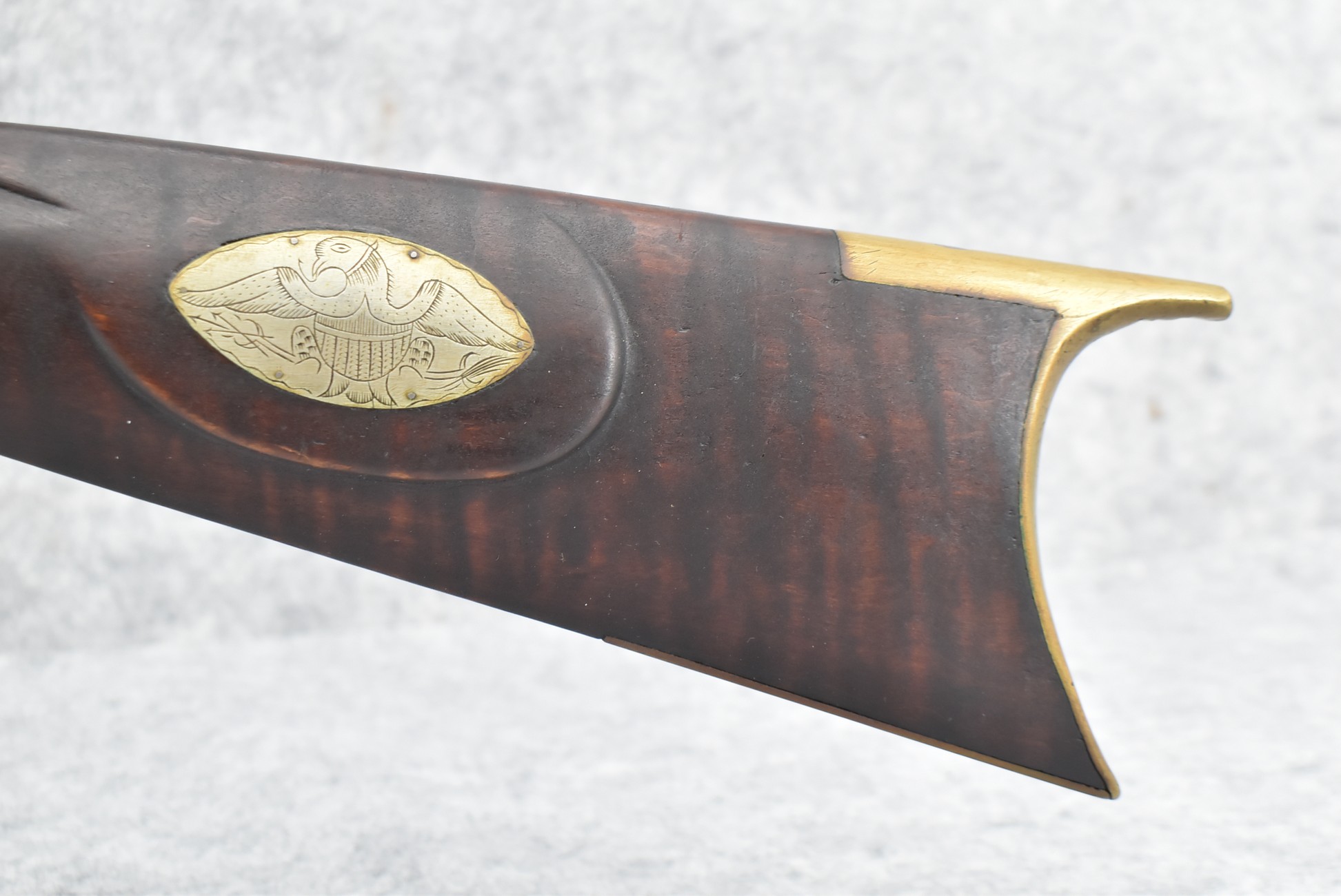 155. Signed William Craig, Pittsburgh Circa 1820-1877 Full Dark Finished Wood Stock Percussion Kentucky Rifle – w/40 Cal. 34” Octagon Barrel w/Front & Rear Sights – w/“Pittsburg” Marked Percussion Lock – w/Brass Cap Box & Furniture – w/8 German Silver Inlays – w/Double Set Triggers – In Front of Rear Barrel Sight, Someone Punched in 1879 & 2 Letters “H” & ? – Overall Length of 50 ¼”