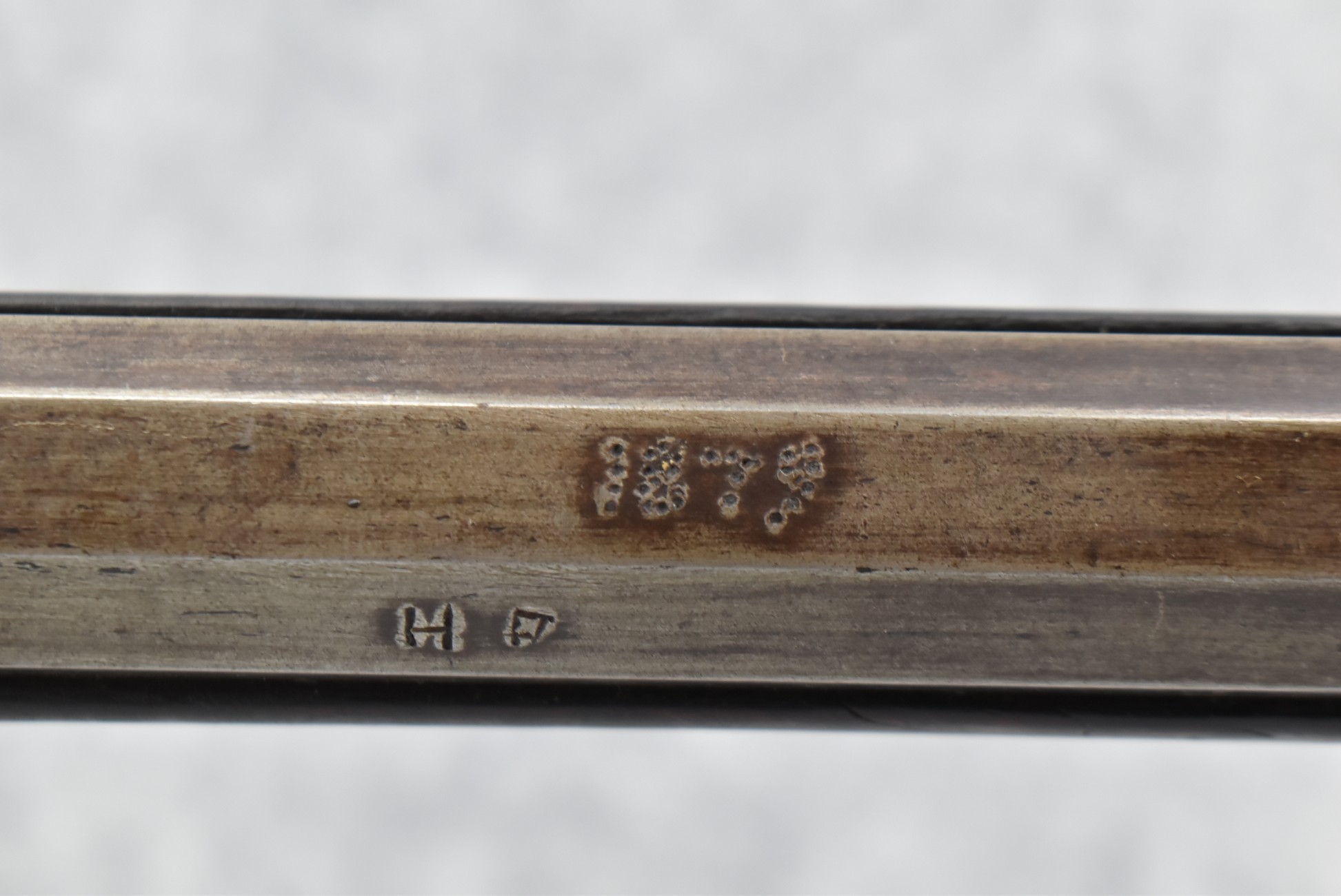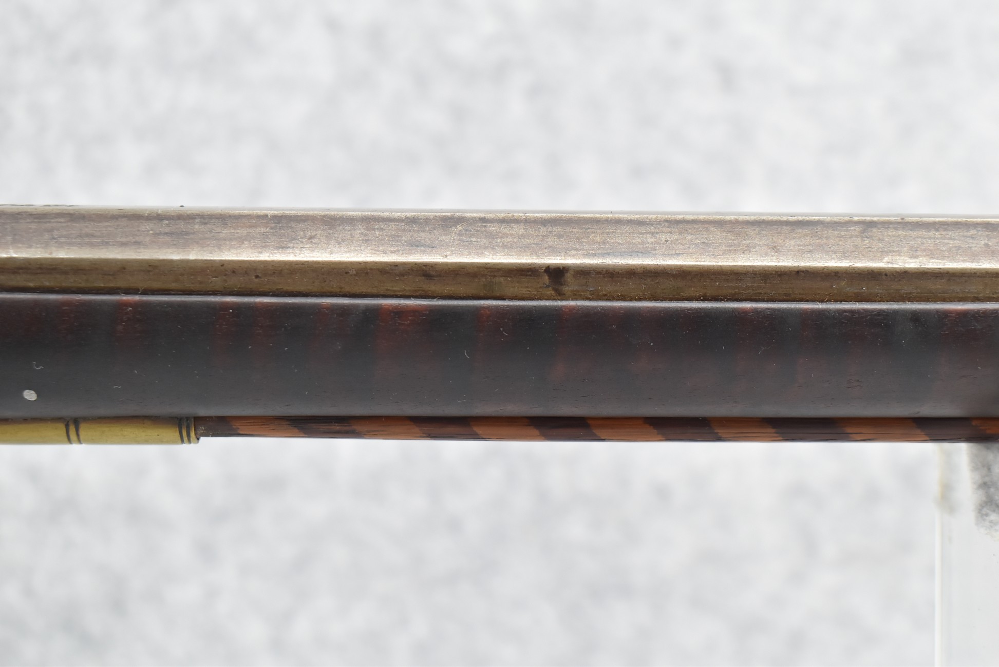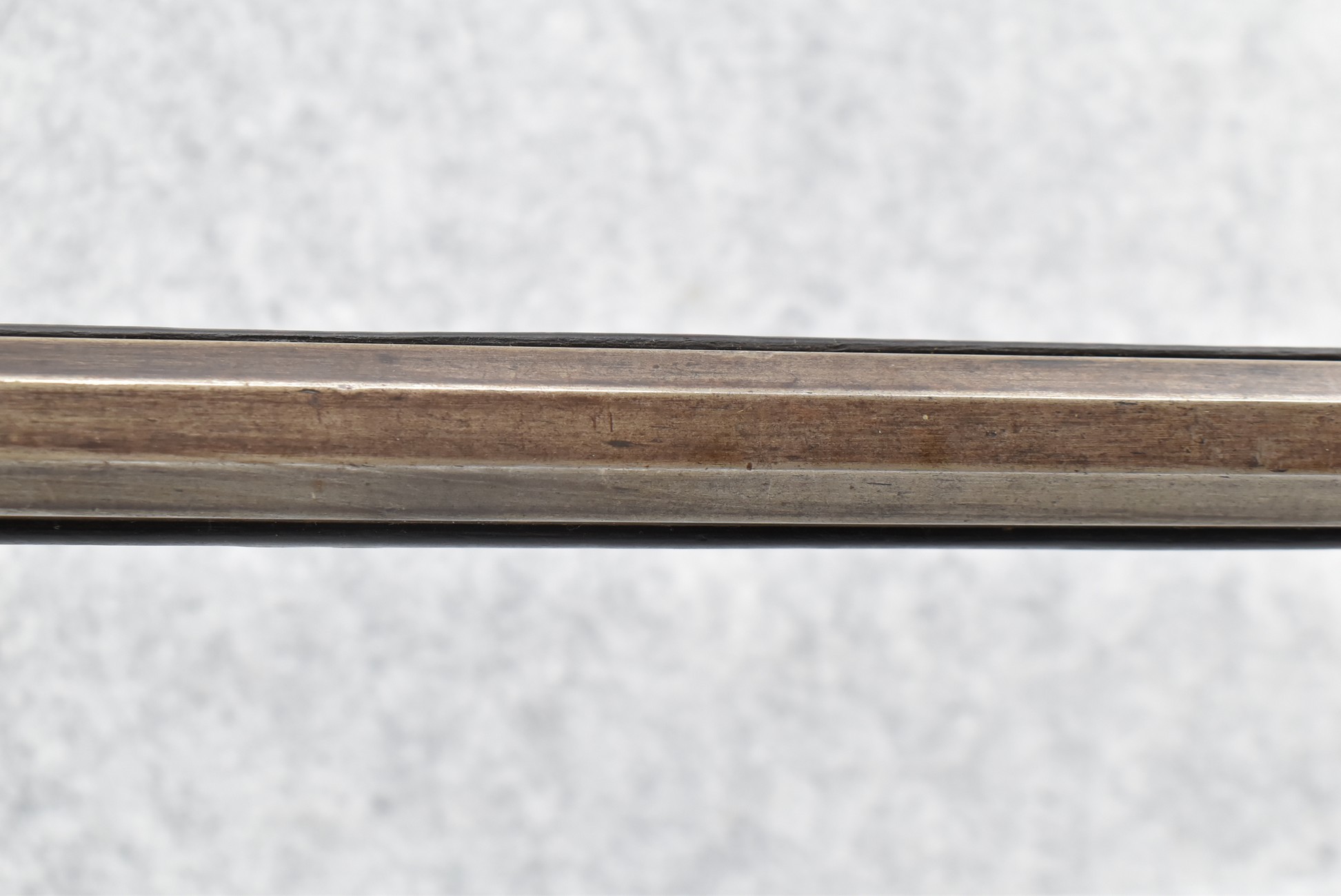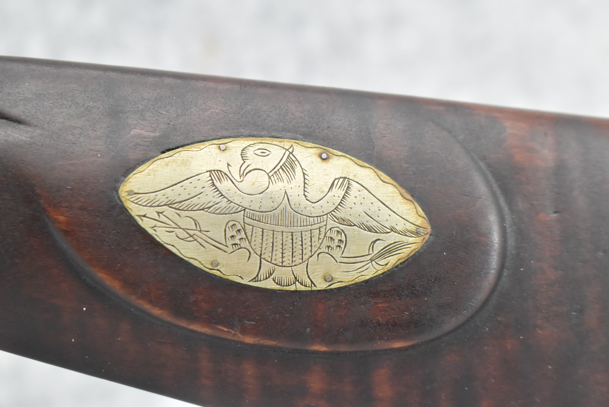 155. Signed William Craig, Pittsburgh Circa 1820-1877 Full Dark Finished Wood Stock Percussion Kentucky Rifle – w/40 Cal. 34” Octagon Barrel w/Front & Rear Sights – w/“Pittsburg” Marked Percussion Lock – w/Brass Cap Box & Furniture – w/8 German Silver Inlays – w/Double Set Triggers – In Front of Rear Barrel Sight, Someone Punched in 1879 & 2 Letters “H” & ? – Overall Length of 50 ¼”
