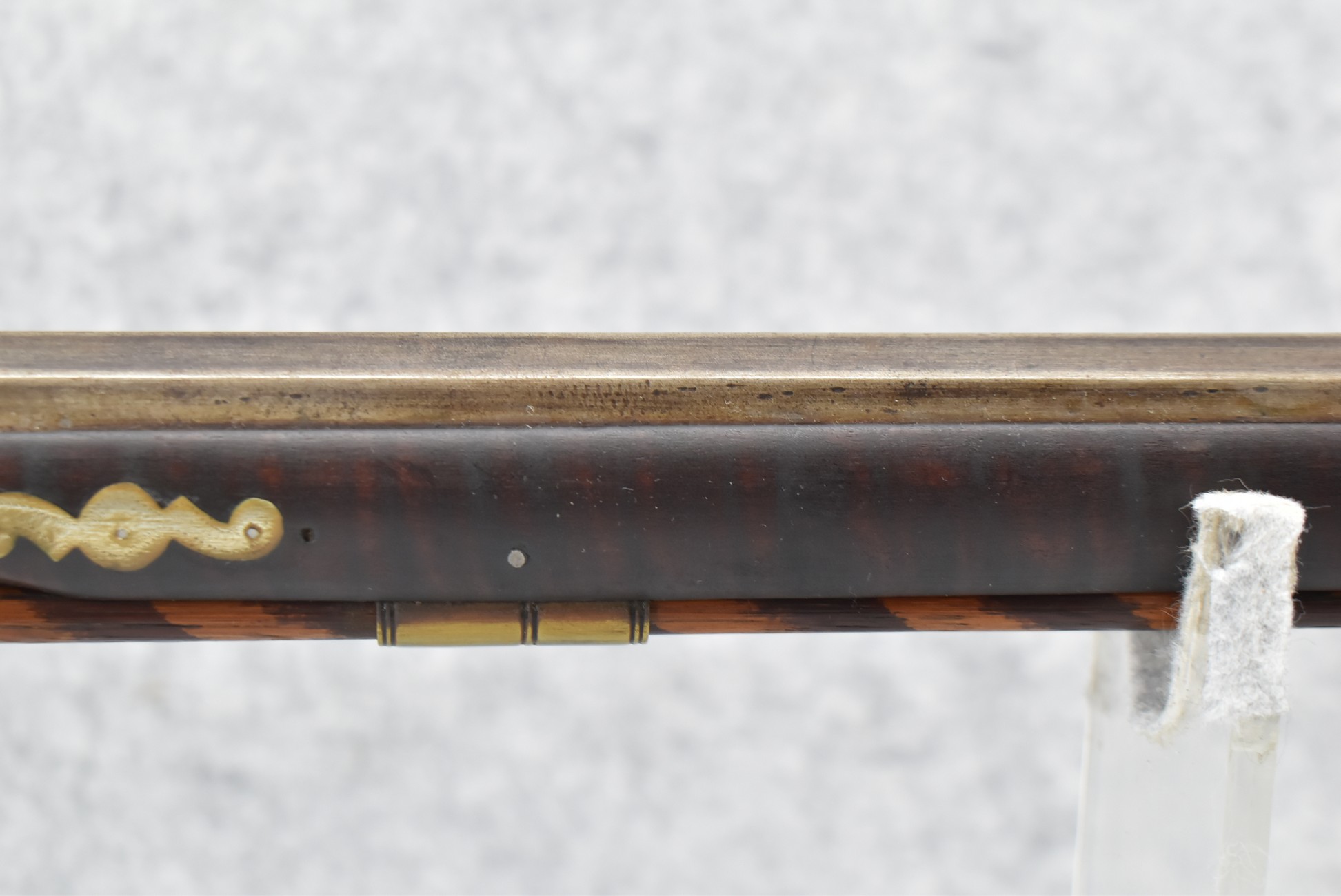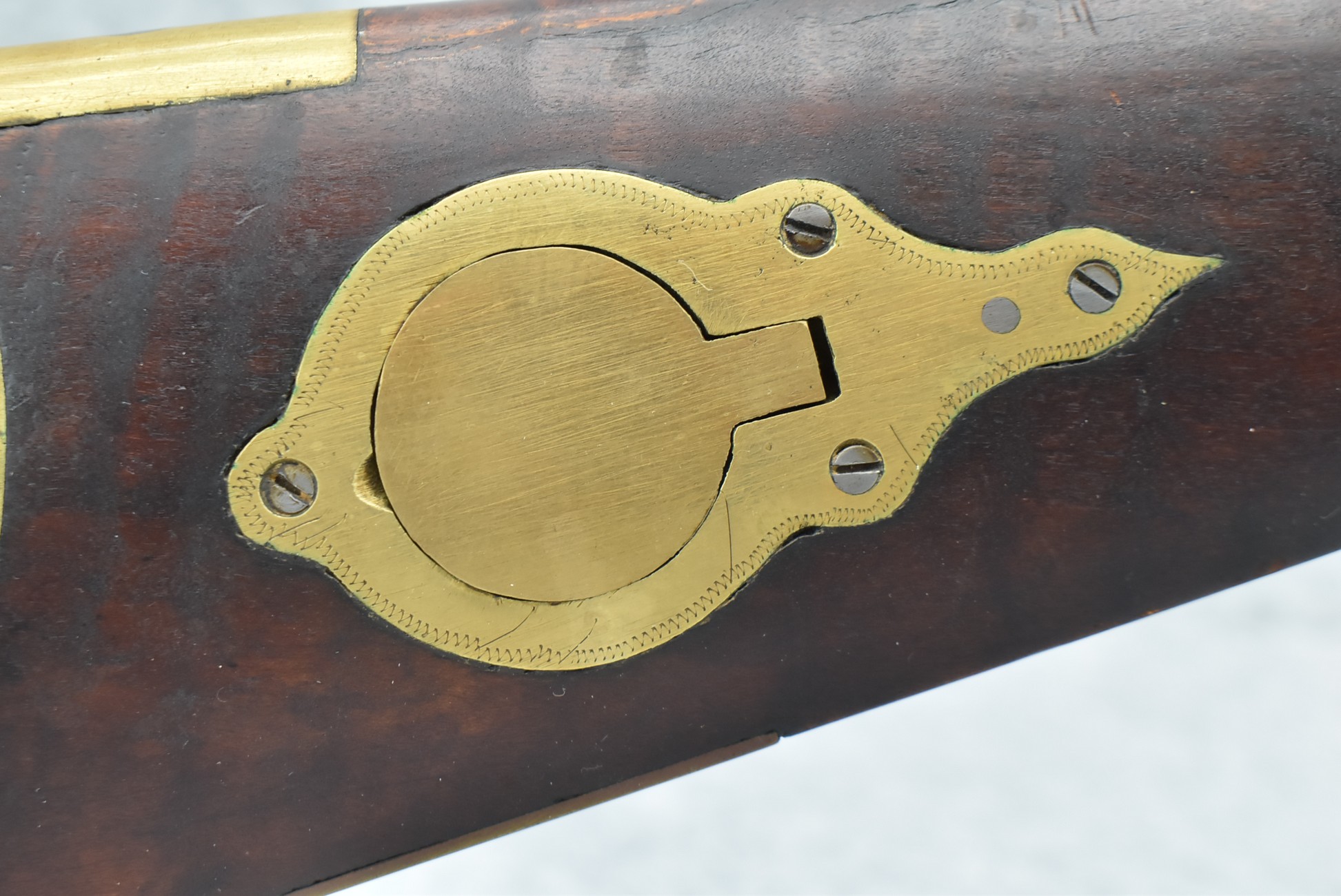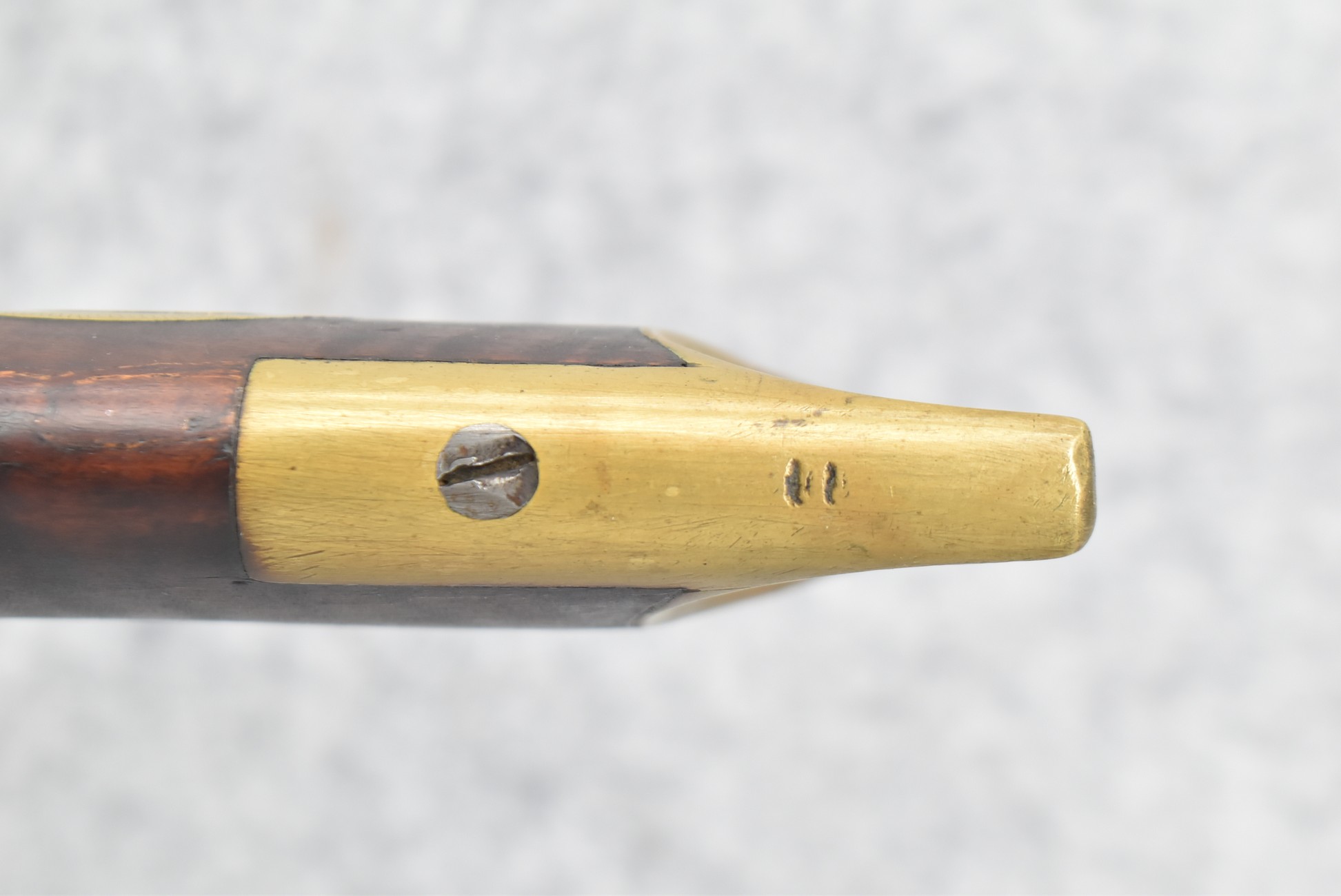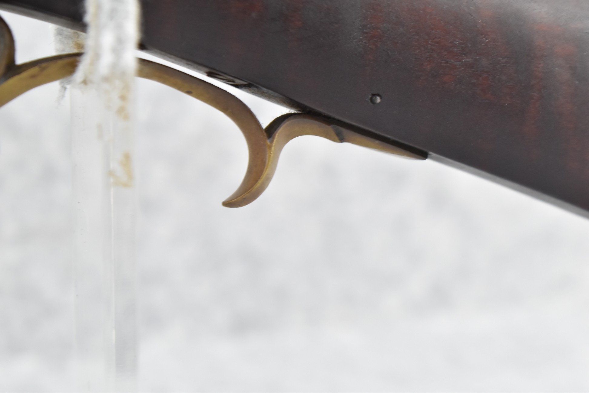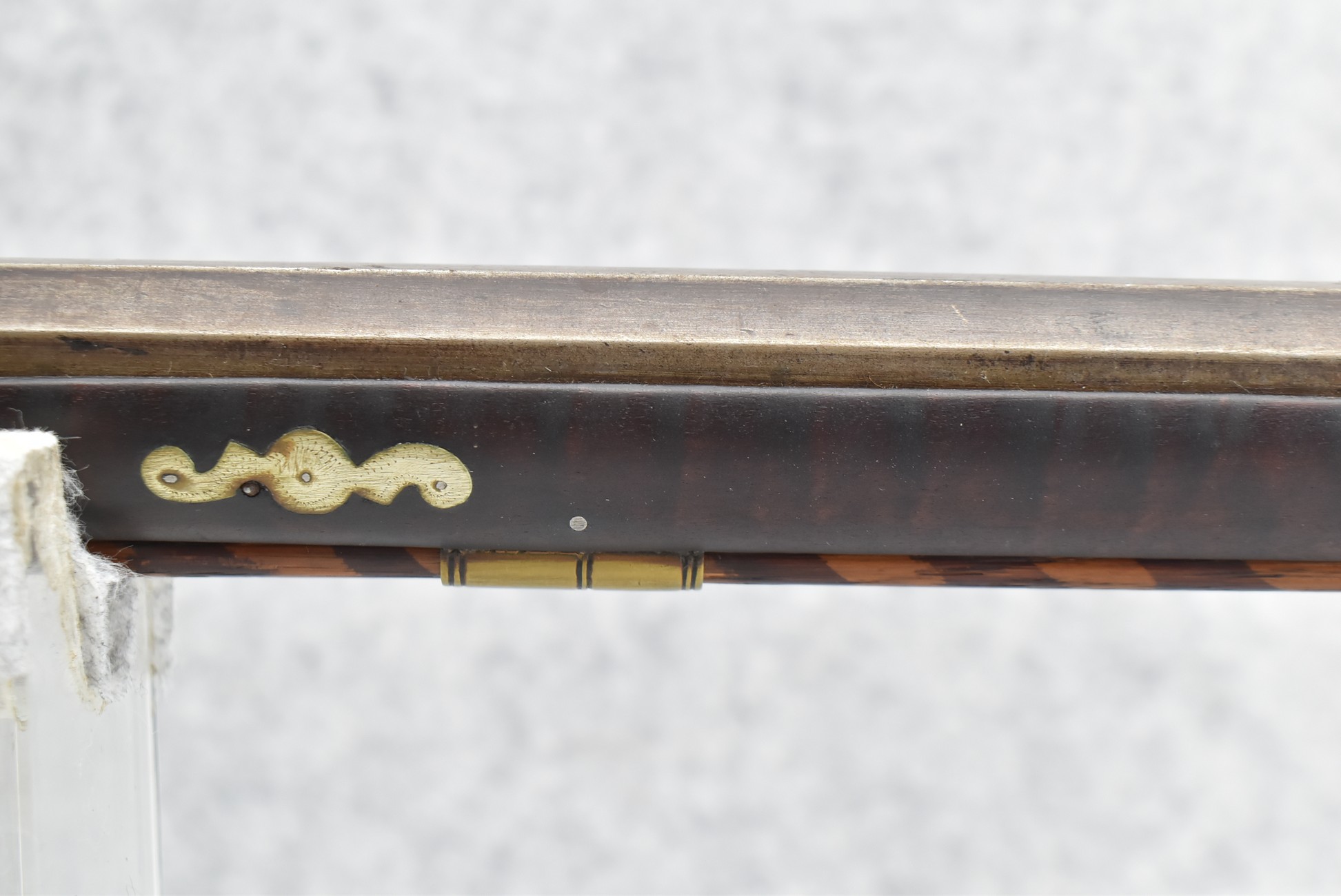 155. Signed William Craig, Pittsburgh Circa 1820-1877 Full Dark Finished Wood Stock Percussion Kentucky Rifle – w/40 Cal. 34” Octagon Barrel w/Front & Rear Sights – w/“Pittsburg” Marked Percussion Lock – w/Brass Cap Box & Furniture – w/8 German Silver Inlays – w/Double Set Triggers – In Front of Rear Barrel Sight, Someone Punched in 1879 & 2 Letters “H” & ? – Overall Length of 50 ¼”