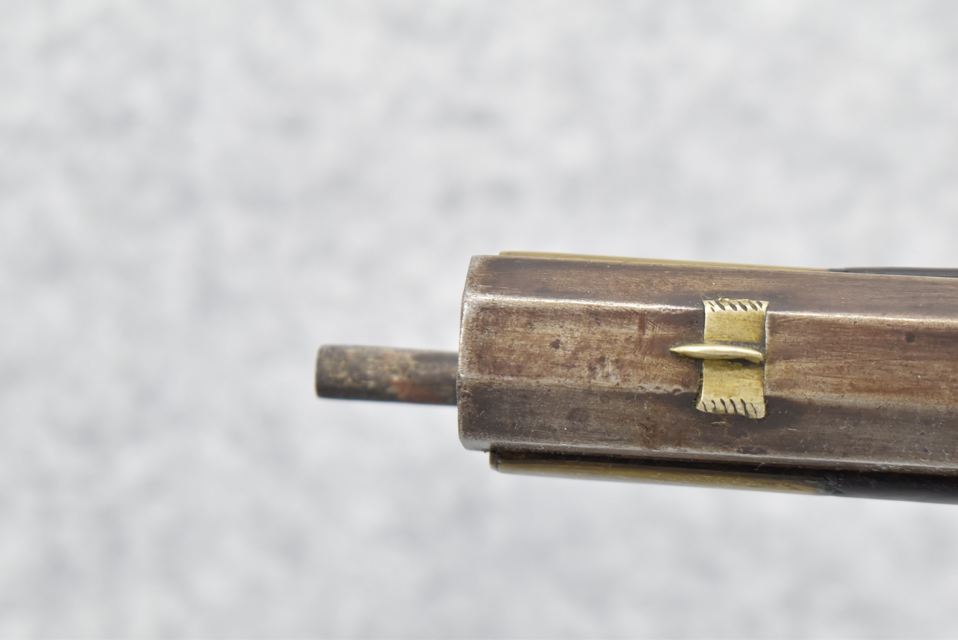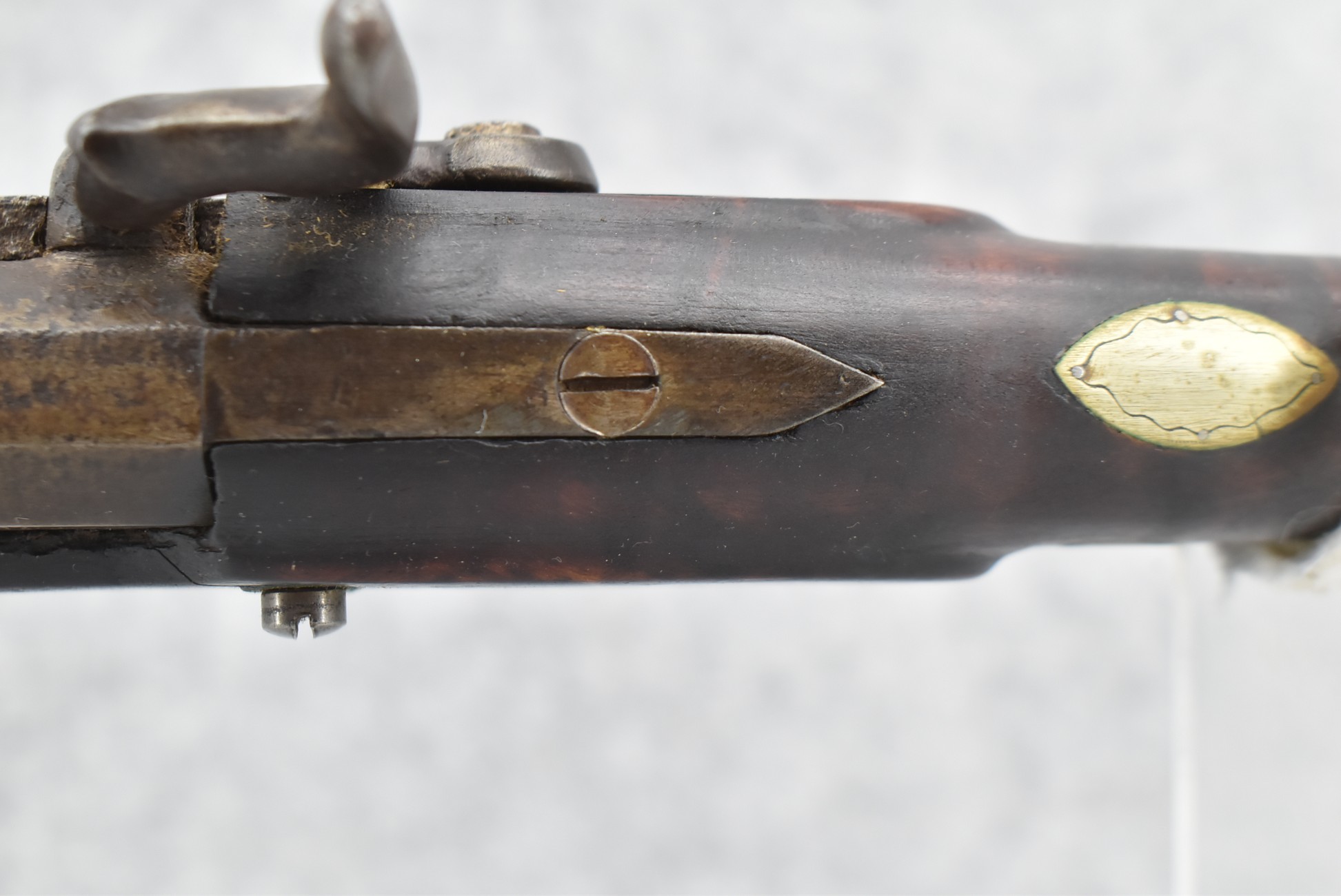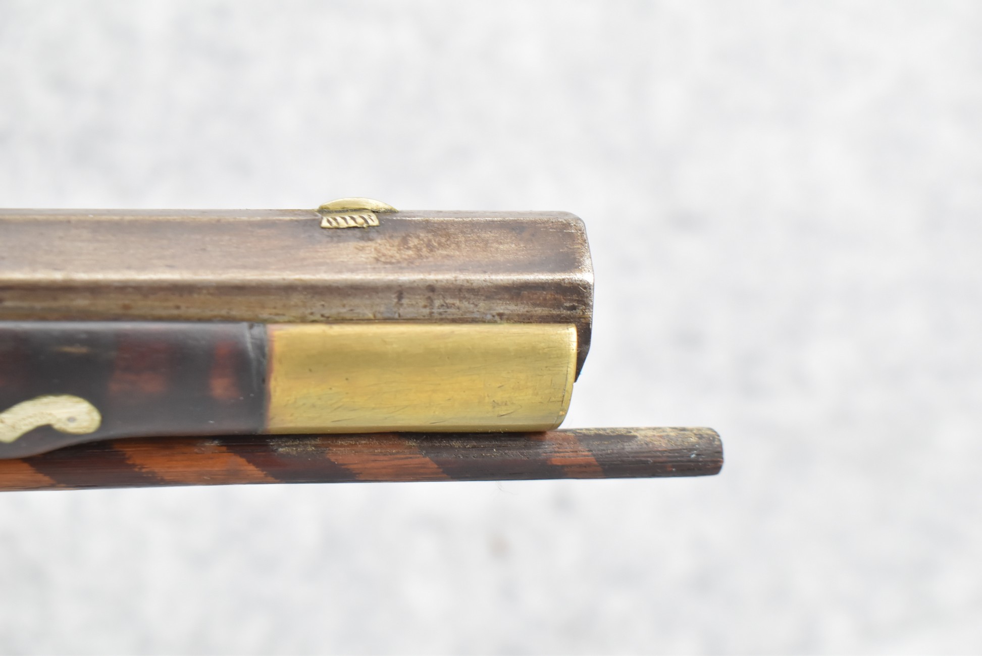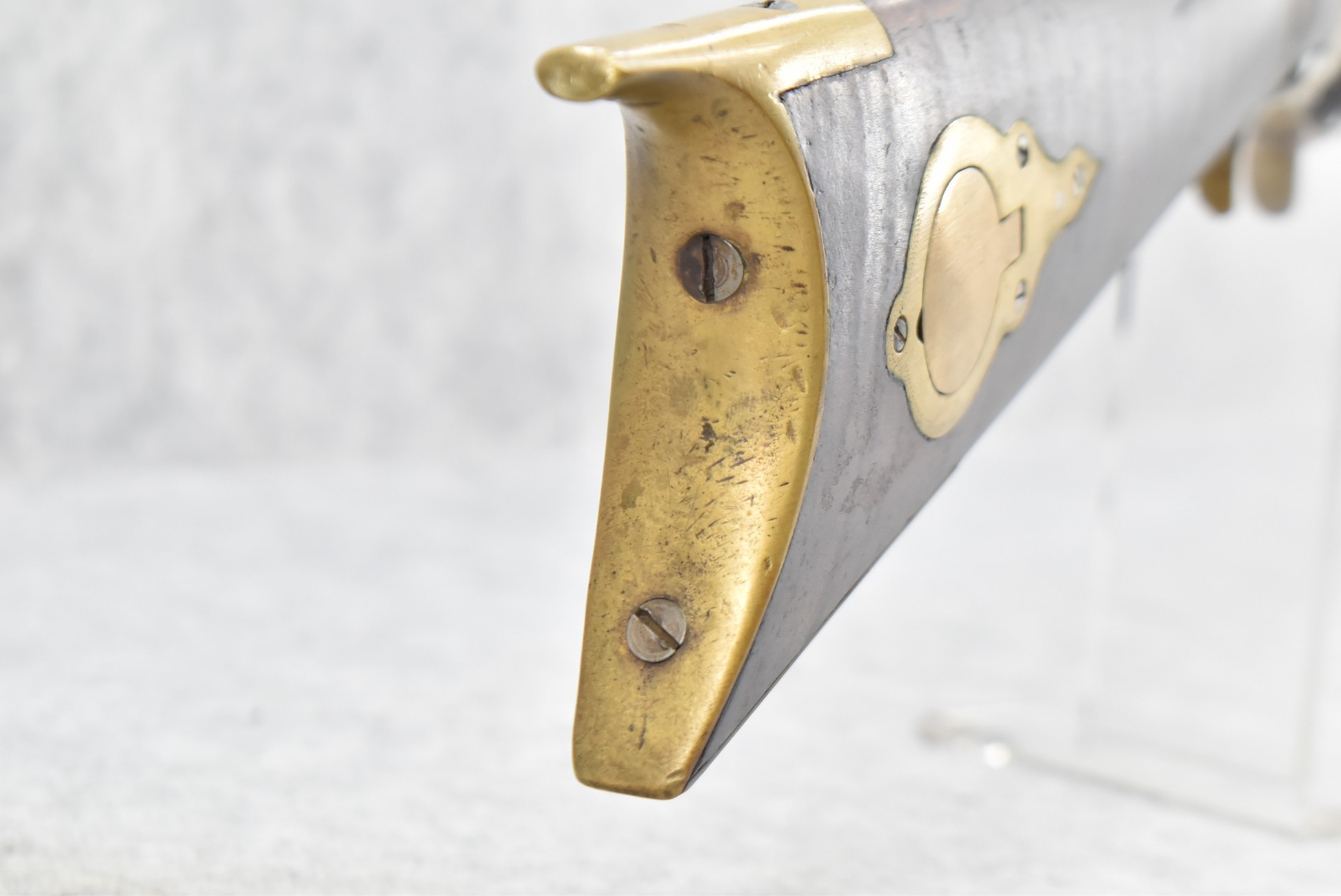 155. Signed William Craig, Pittsburgh Circa 1820-1877 Full Dark Finished Wood Stock Percussion Kentucky Rifle – w/40 Cal. 34” Octagon Barrel w/Front & Rear Sights – w/“Pittsburg” Marked Percussion Lock – w/Brass Cap Box & Furniture – w/8 German Silver Inlays – w/Double Set Triggers – In Front of Rear Barrel Sight, Someone Punched in 1879 & 2 Letters “H” & ? – Overall Length of 50 ¼”