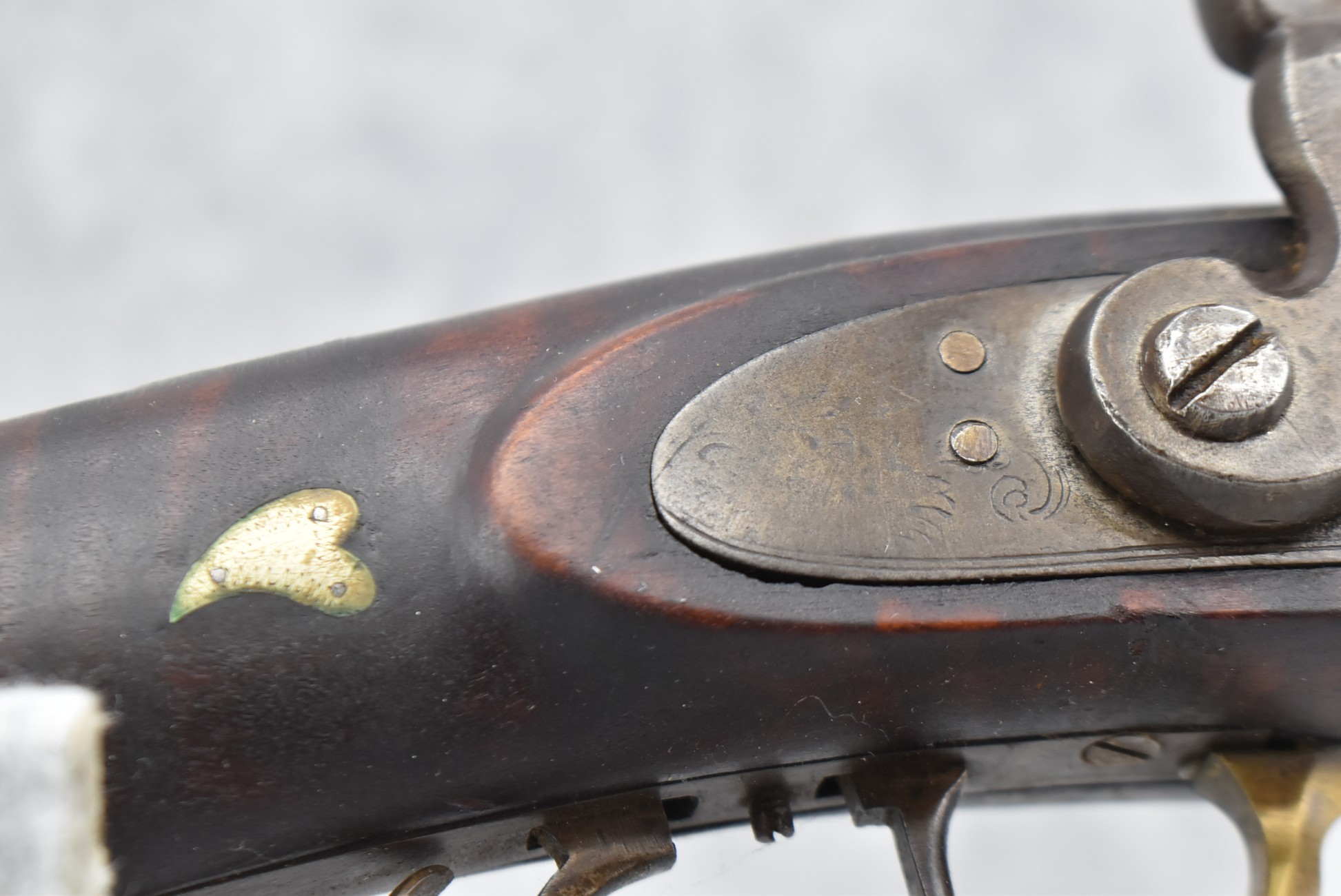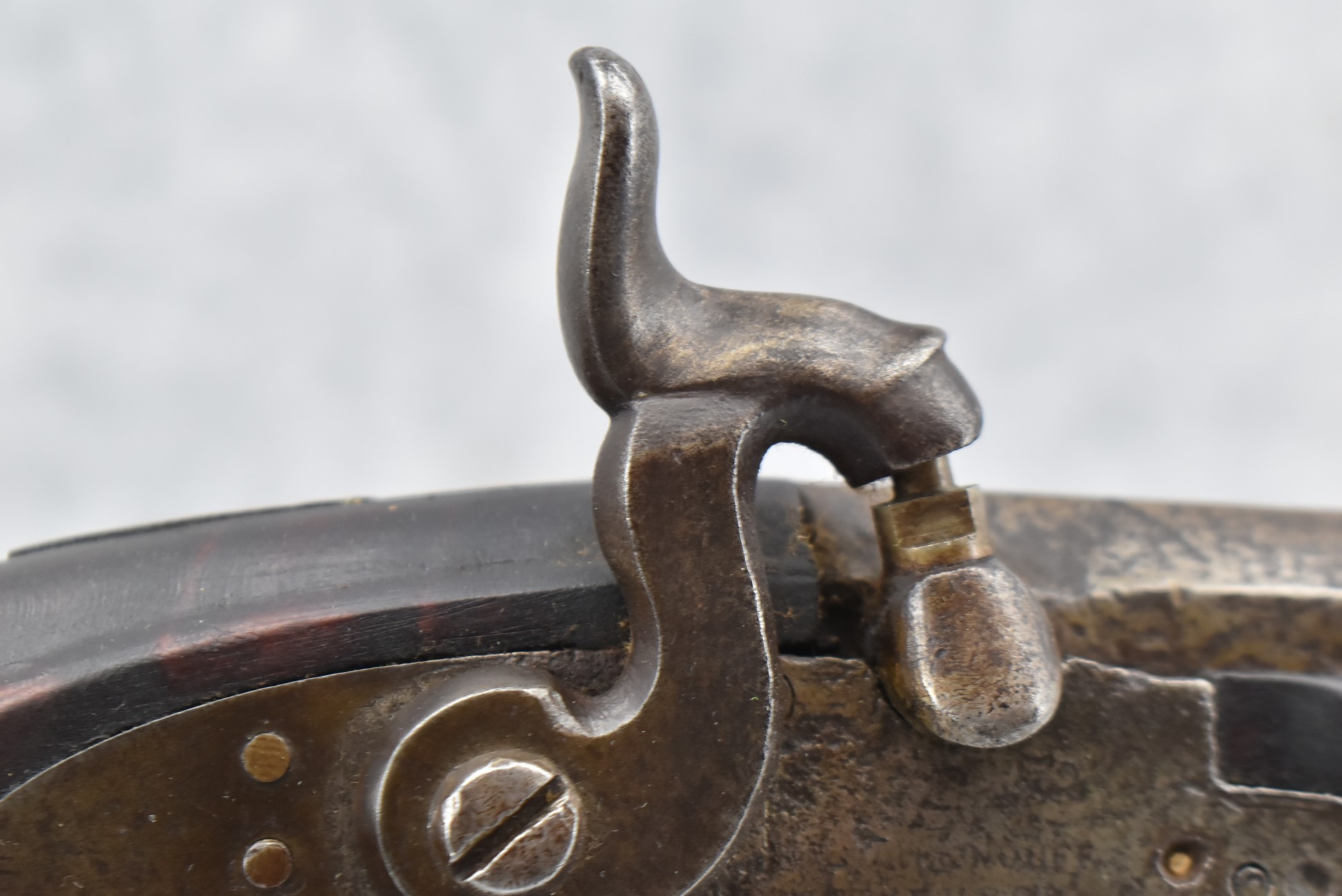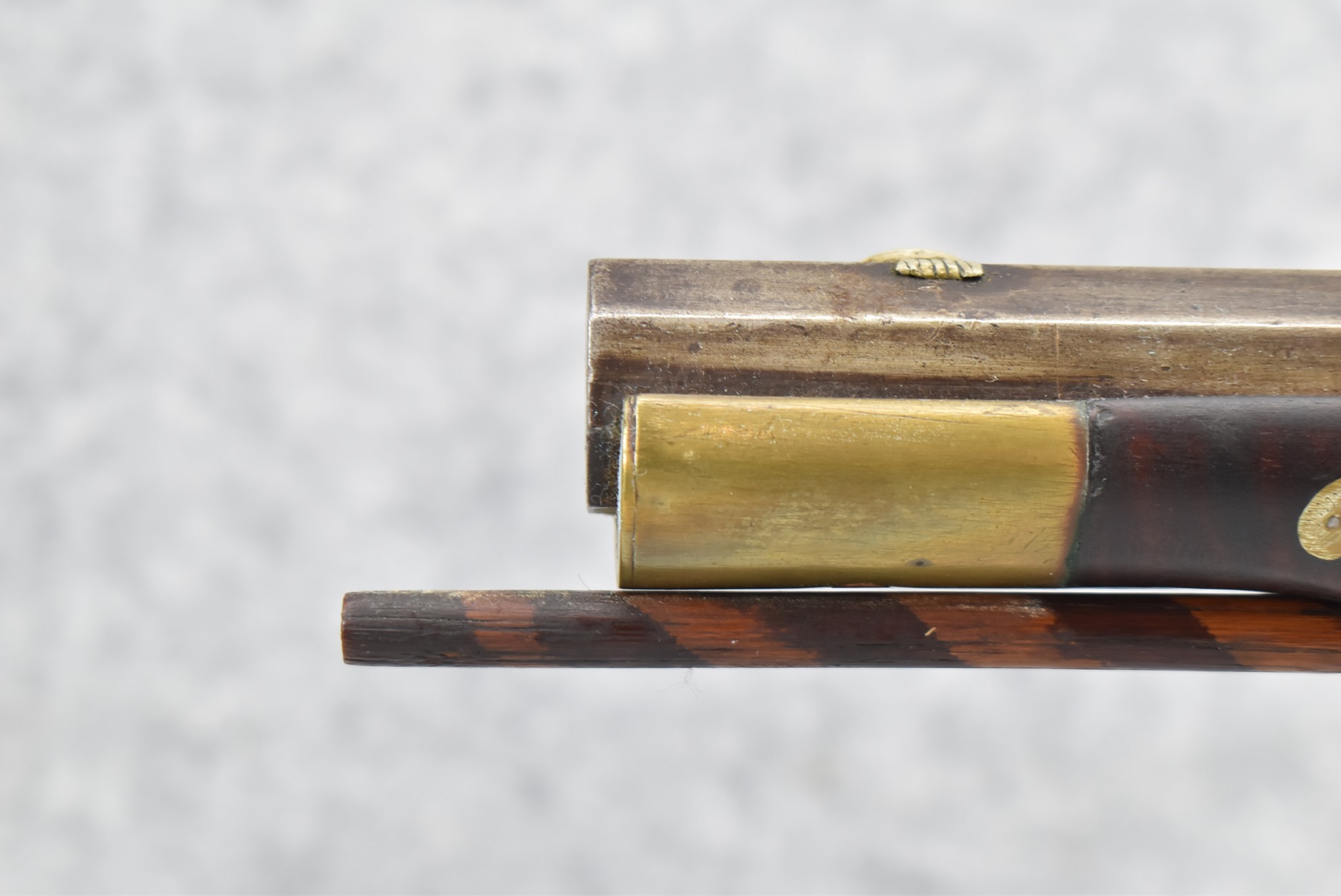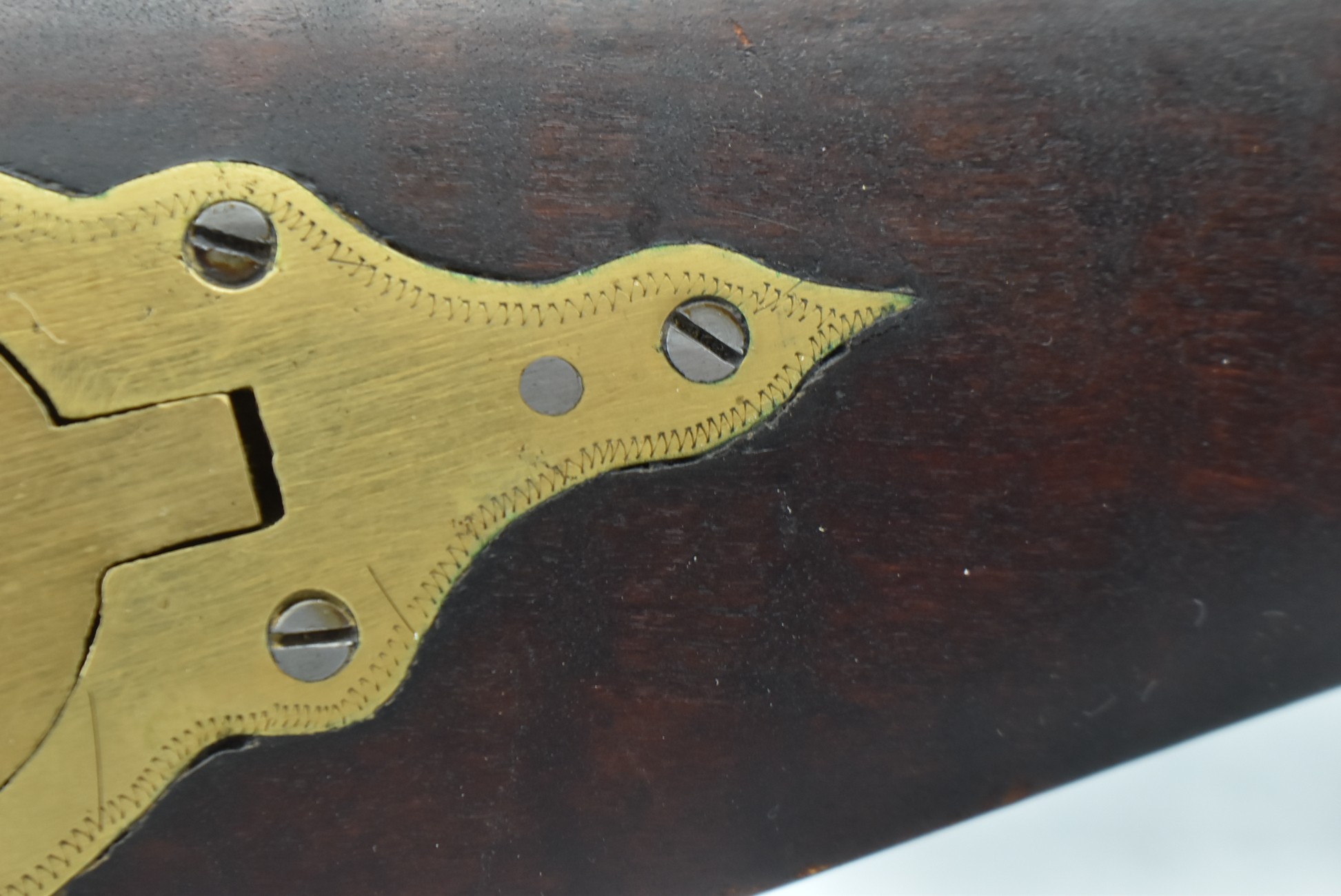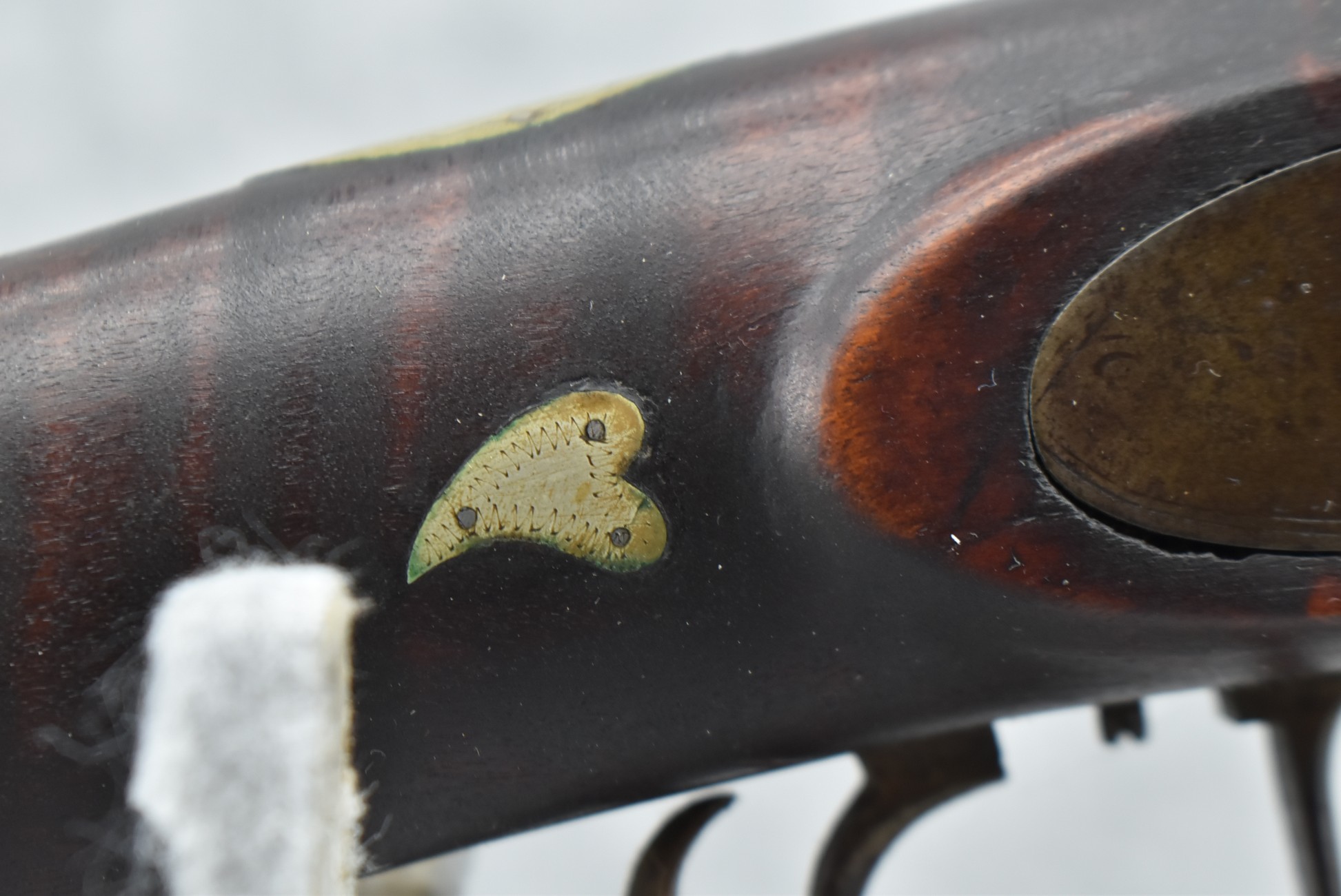 155. Signed William Craig, Pittsburgh Circa 1820-1877 Full Dark Finished Wood Stock Percussion Kentucky Rifle – w/40 Cal. 34” Octagon Barrel w/Front & Rear Sights – w/“Pittsburg” Marked Percussion Lock – w/Brass Cap Box & Furniture – w/8 German Silver Inlays – w/Double Set Triggers – In Front of Rear Barrel Sight, Someone Punched in 1879 & 2 Letters “H” & ? – Overall Length of 50 ¼”