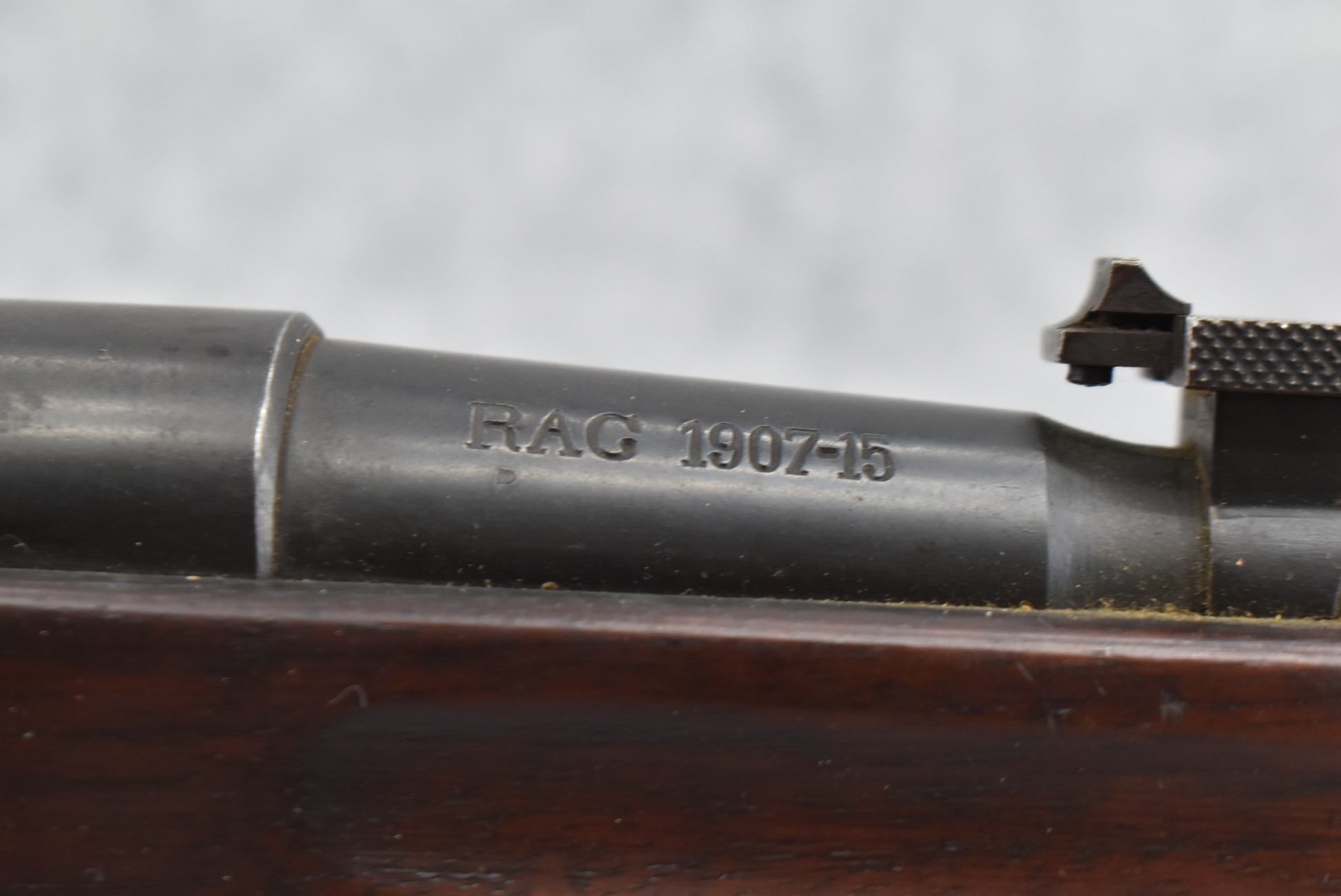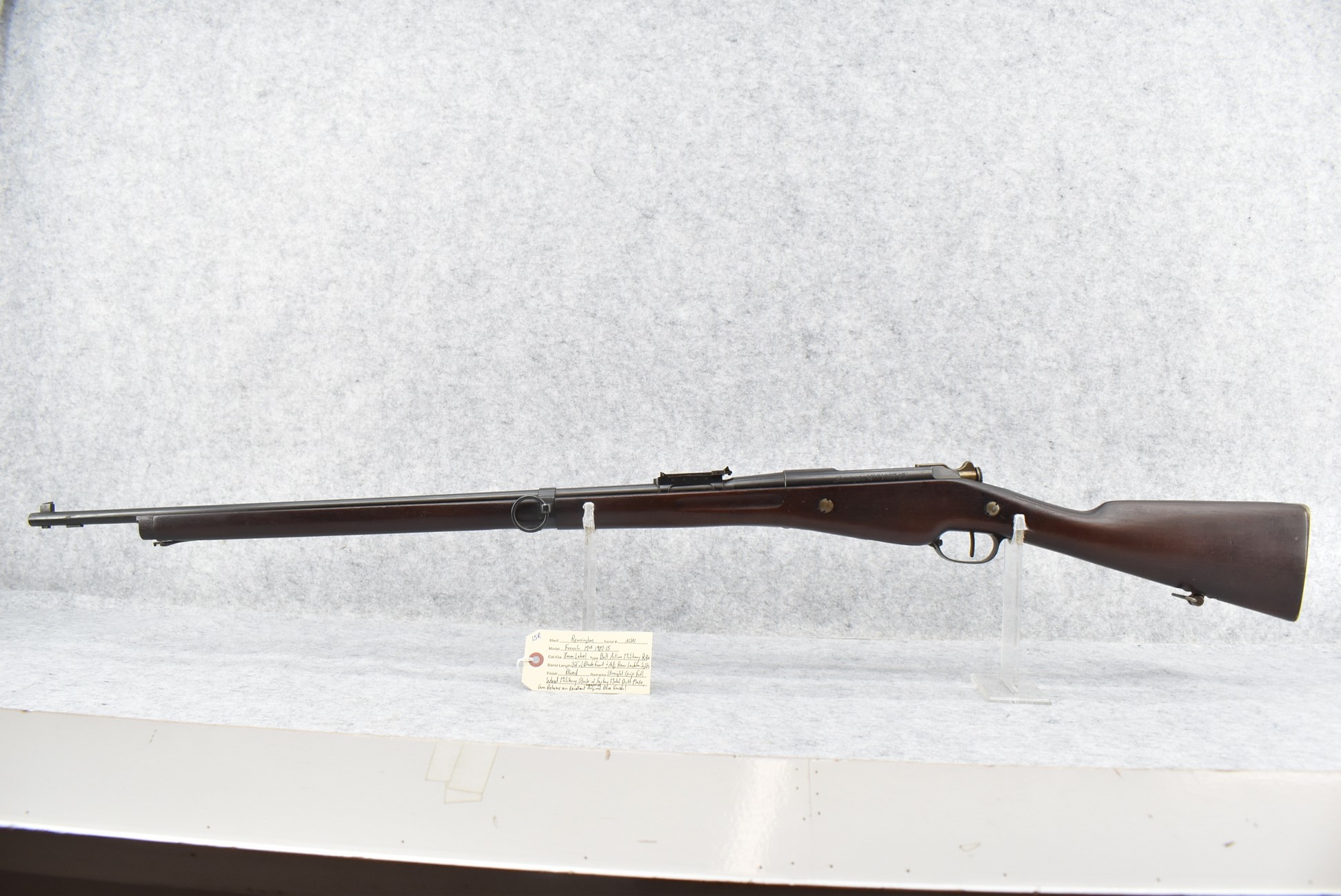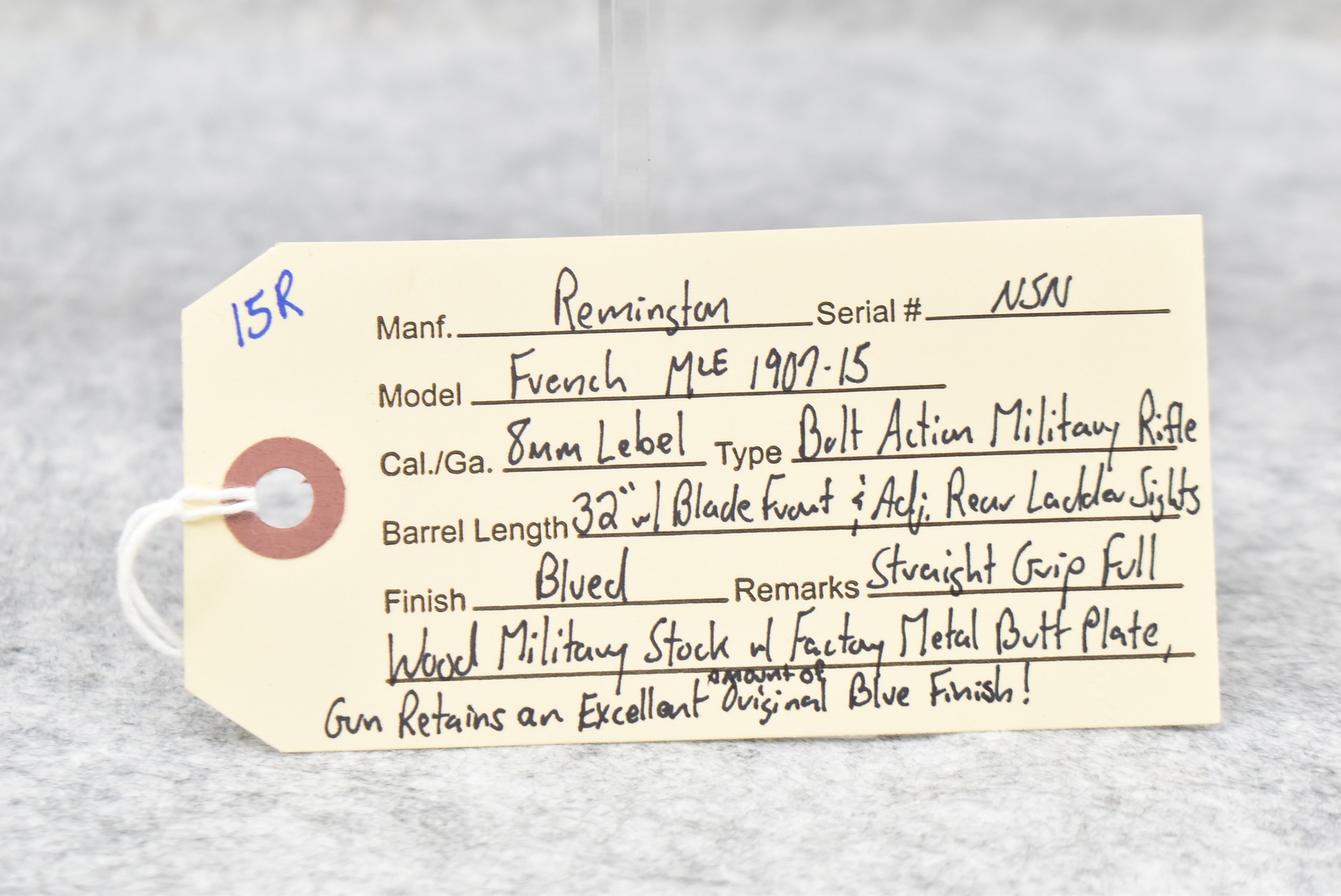 15R. Remington – Mod. French Mle 1907-15 – 8mm Lebel Cal. Bolt Action Military Rifle – w/32” Barrel w/Blade Front & Adj. Rear Ladder Sights – Blued Finish – w/Straight Grip Full Wood Military Stock w/Factory Metal Butt Plate – Gun Retains an Excellent Amount of Original Blue Finish!