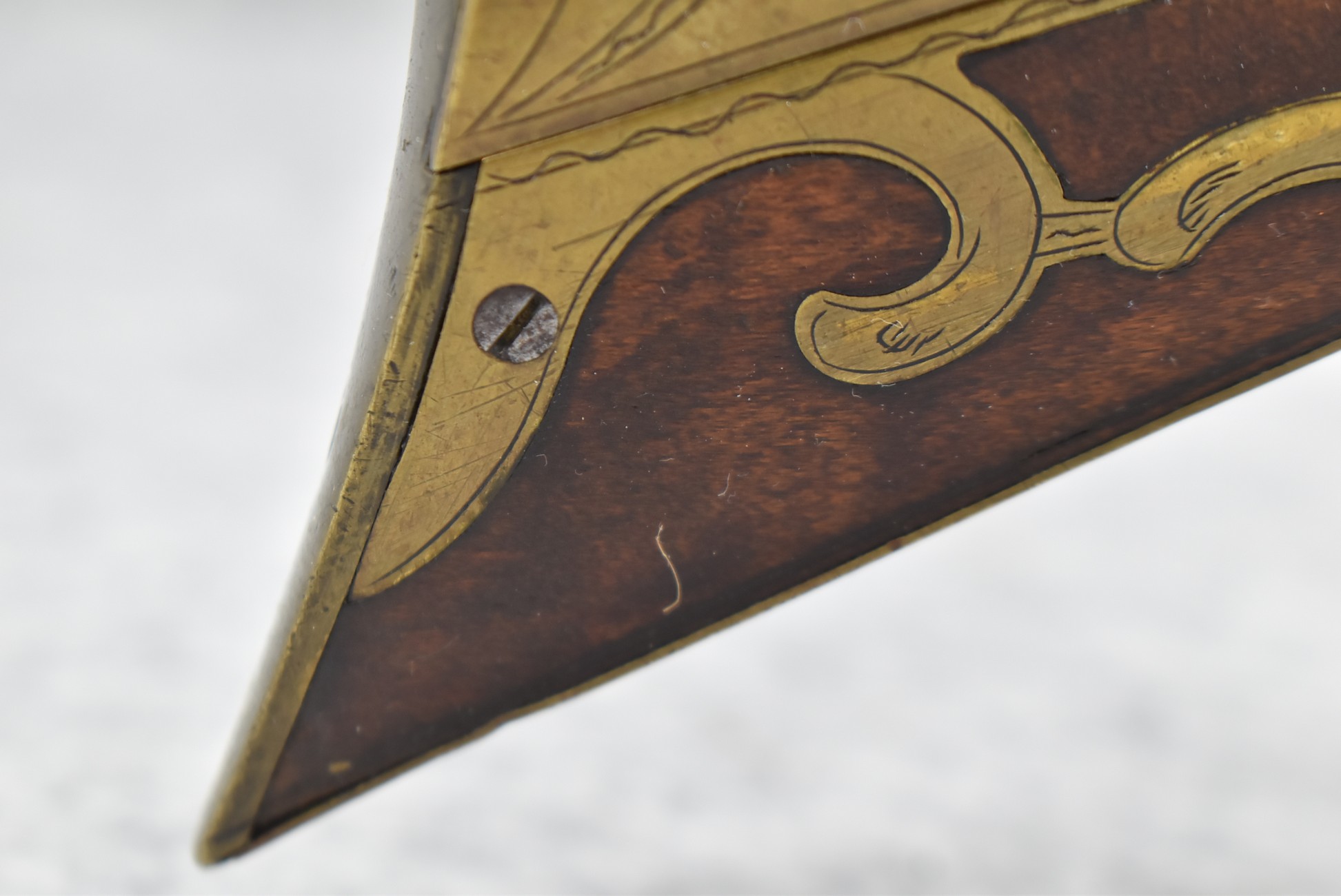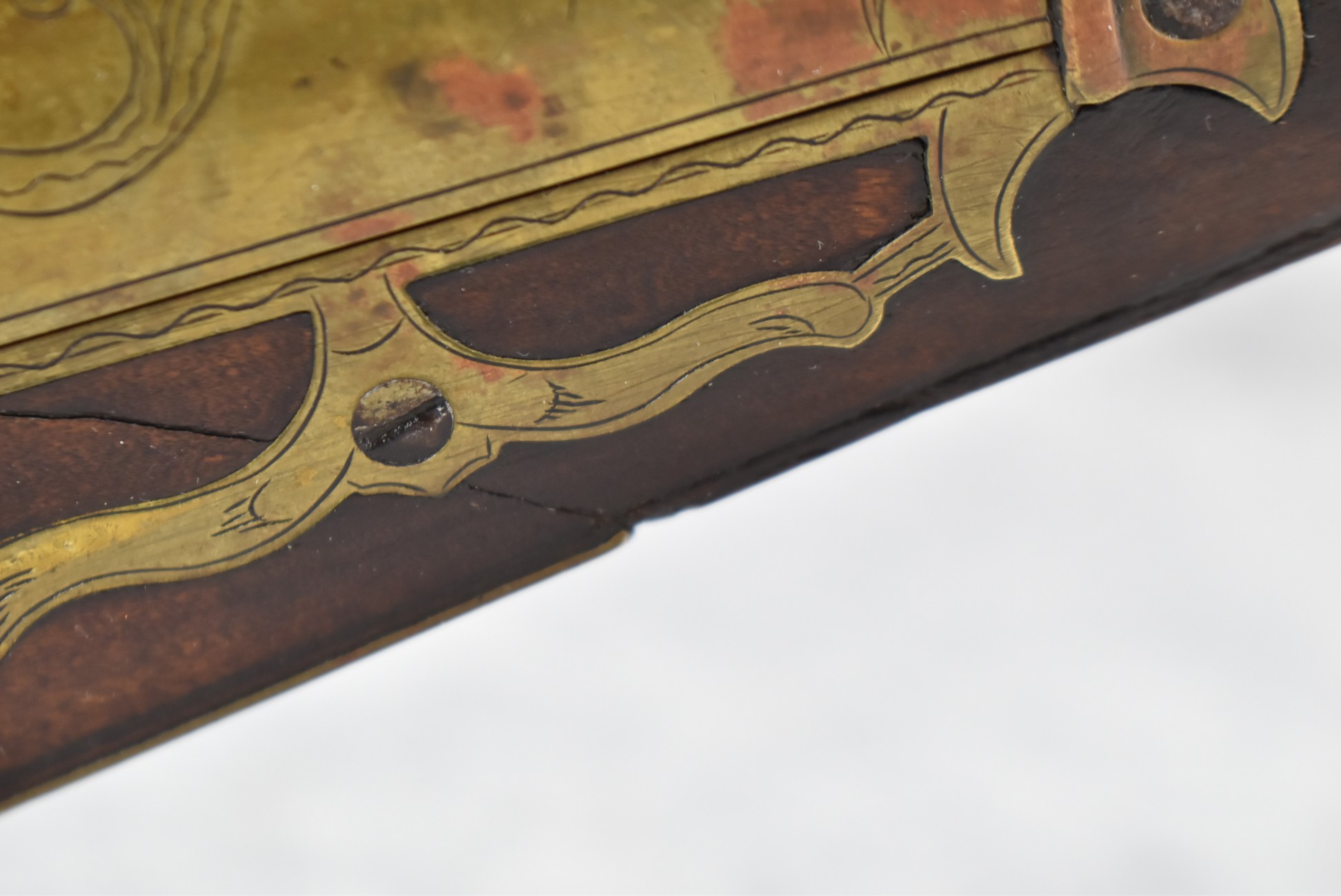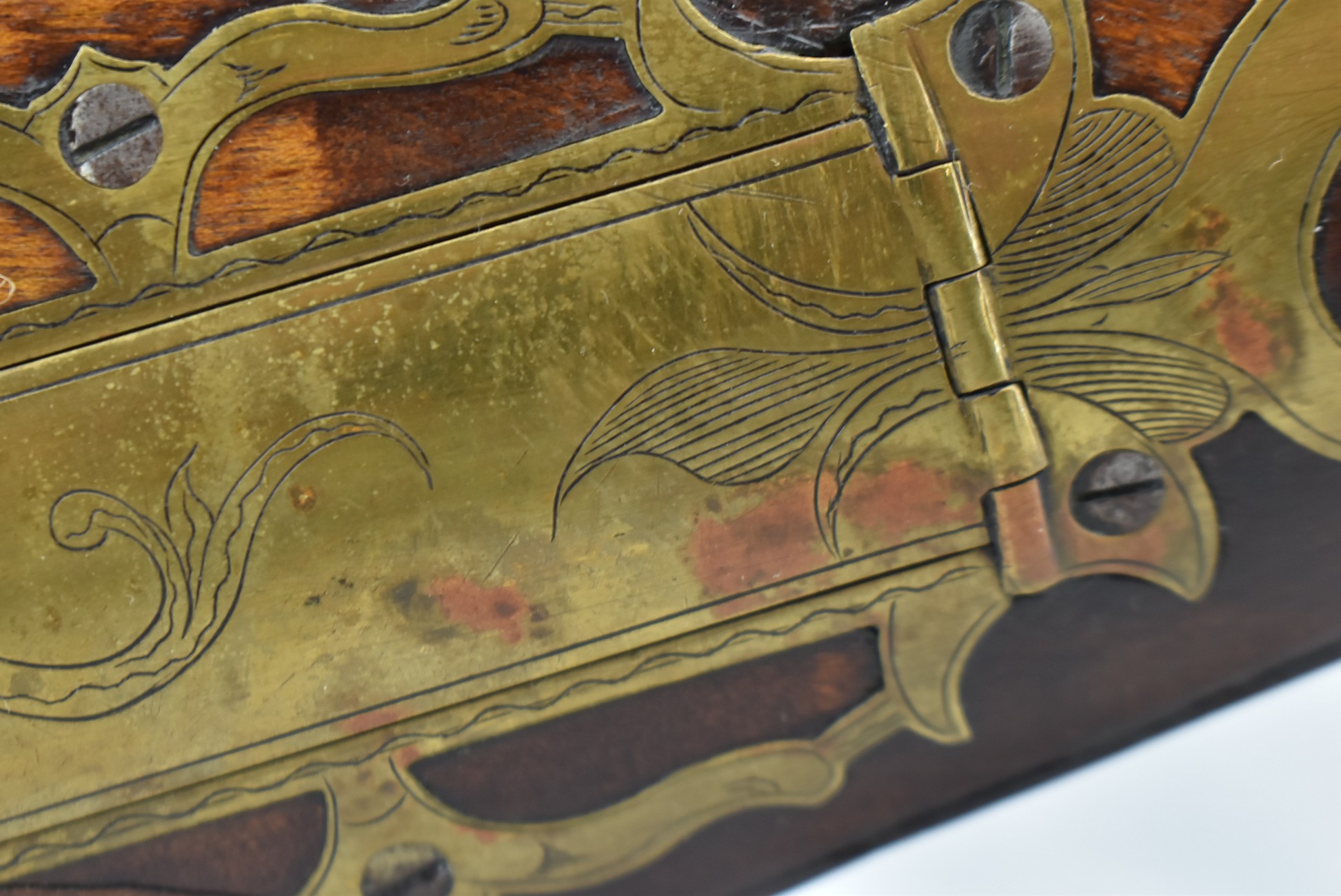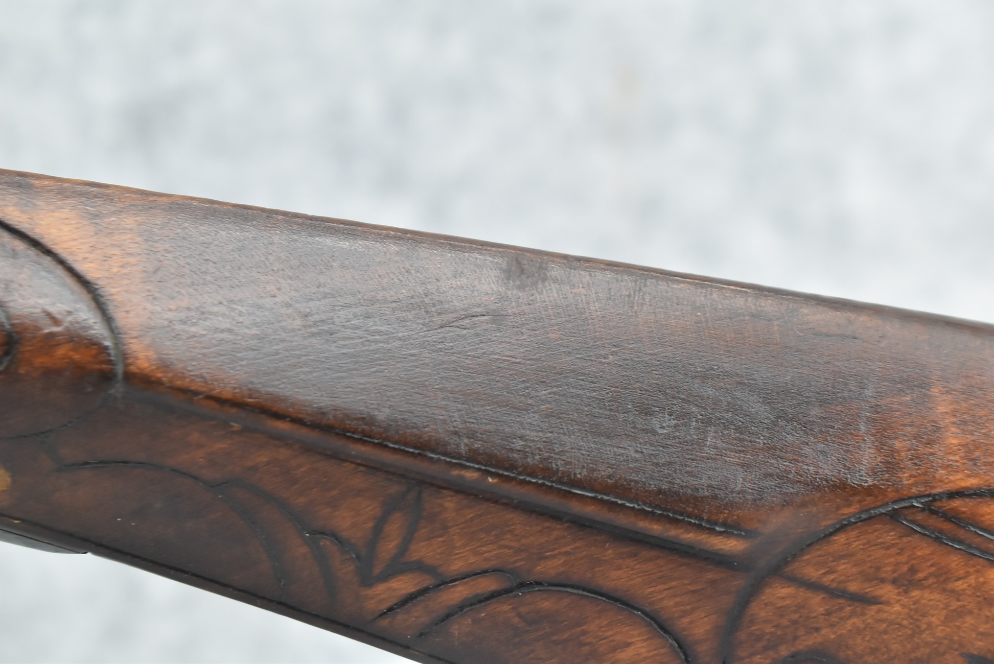 160.        Unsigned 32 Cal. Full Stock Long Rifle Attributed to Jonathan Dunmeyer of Somerset County, PA – Gun Has a 32 Cal. 39” Octagon Barrel w/Front & Rear Barrel Sights – w/Full Wood Stock w/Incised Carved Along Tang, Wrist Area & Lower Side of Butt Stock w/4pc. Engraved Patch Box (Which is the Identical Patch Box Listed in “Kentucky Rifle Patch Boxes Vol. 2” by Chandler & Whisker) – Gun is Fitted w/A Very Unusual Back Lock Brass Plate – Lock Plate & Hammer Engraved – Dunmeyer (1828-1885) Was Located in Somerset Twp, Somerset County Just West of Bedford County – Overall Length of 54”