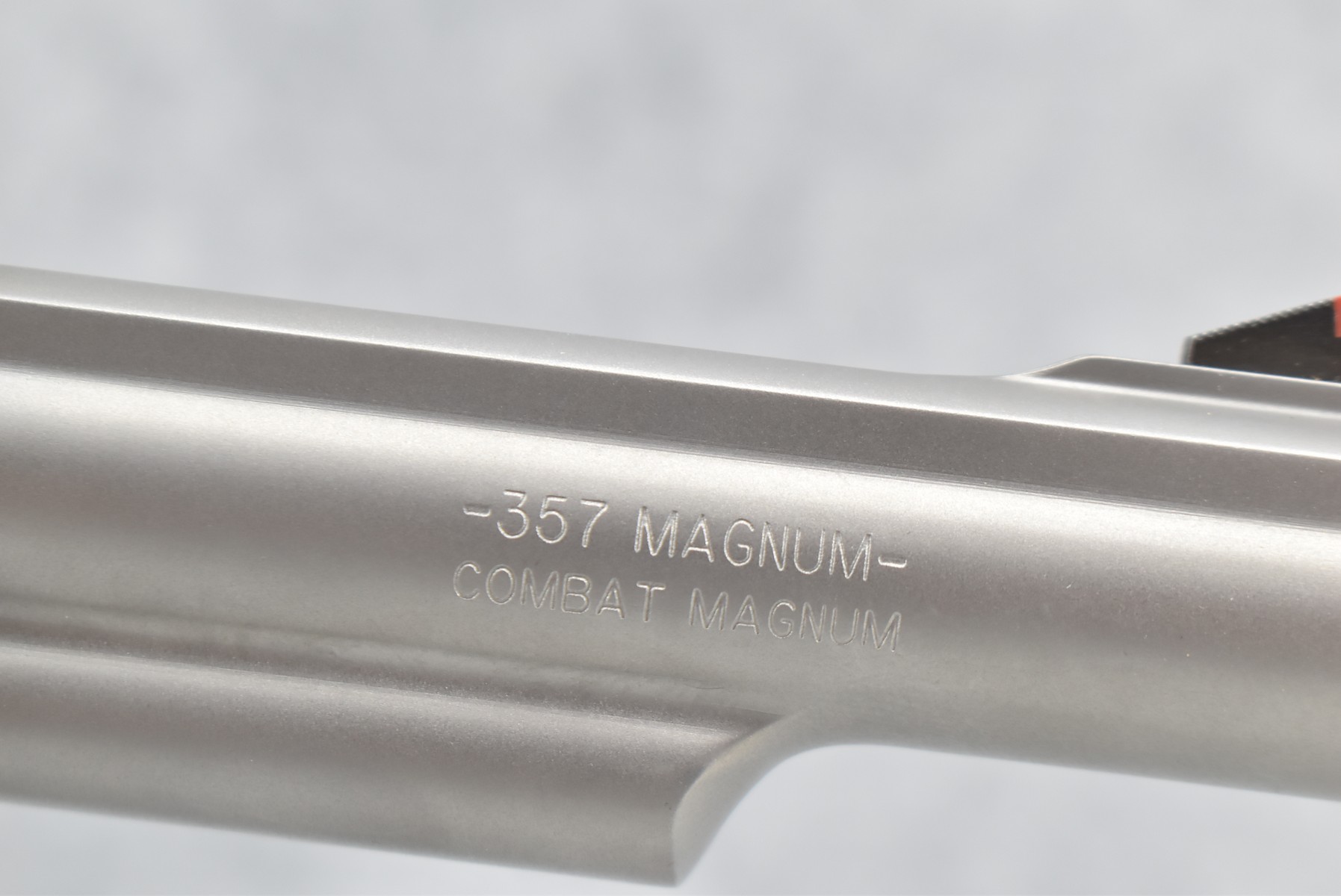164R. Smith & Wesson – Mod. 66-8 – 357 Mag. Cal. Double Action Revolver – w/4.25” Barrel w/Red Ramp Front & Rear Adj. Sights – Matte Stainless Finish – w/Factory S&W Rubber Combat Grip – Unfired w/Factory Hard Case & Manual
