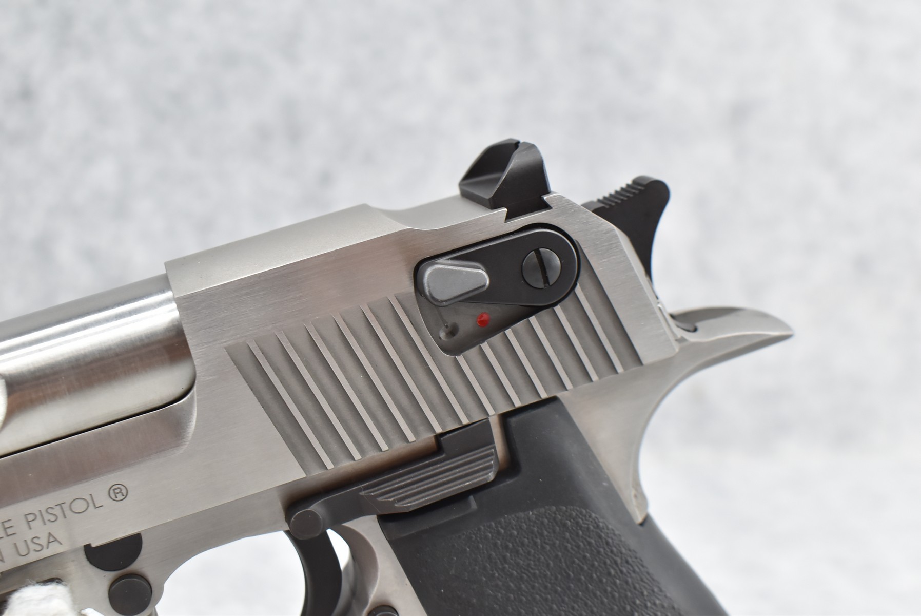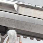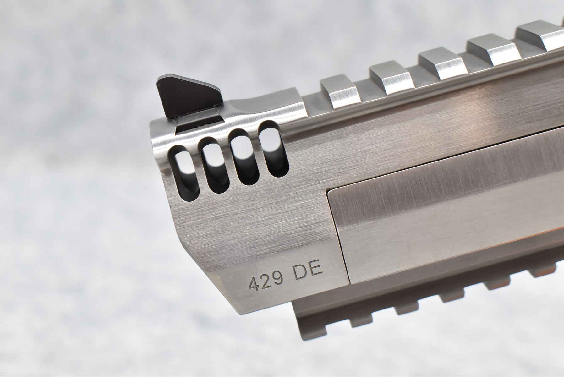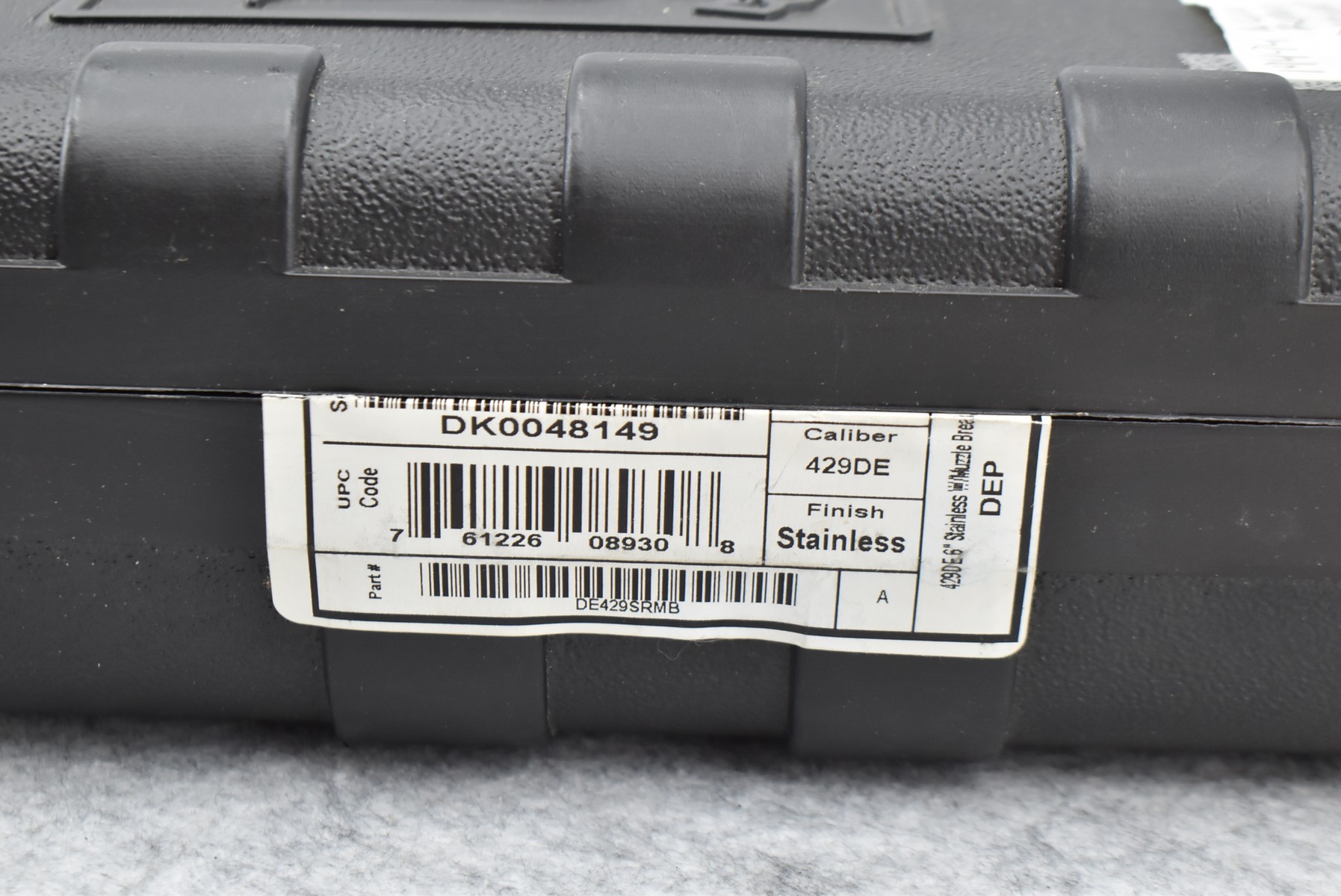 165R. Magnum Research – Mod. Desert Eagle – 429 DE Cal. Semi-Auto Pistol – w/6” Barrel w/Factory Sights & Muzzle Brake – w/Upper & Lower Picatinny Rail for Optics – Stainless Finish – w/Desert Eagle Black Rubber Grips – w/Factory Detachable Magazine – Appears Unfired w/Factory Hard Case & Accessories