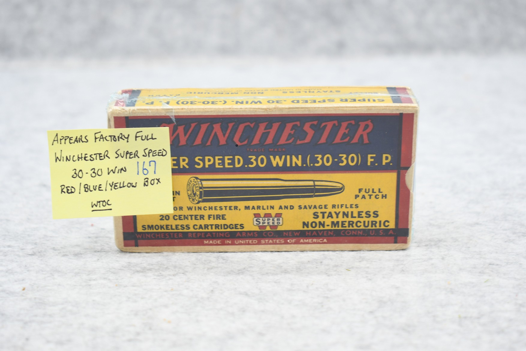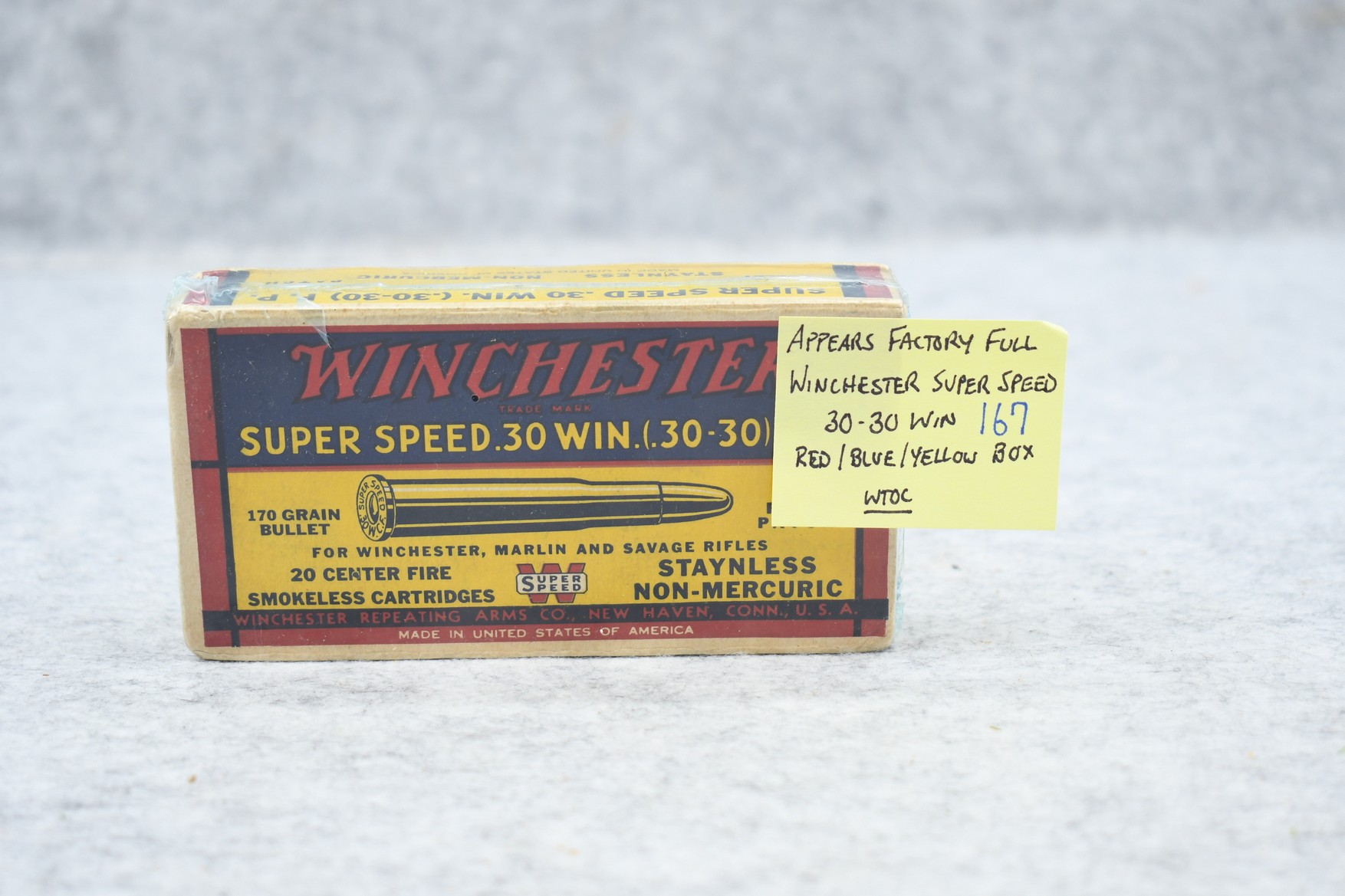 167. Winchester – Super Speed 30-30 Win. Red/Blue/Yellow Box – AFF – WTOC