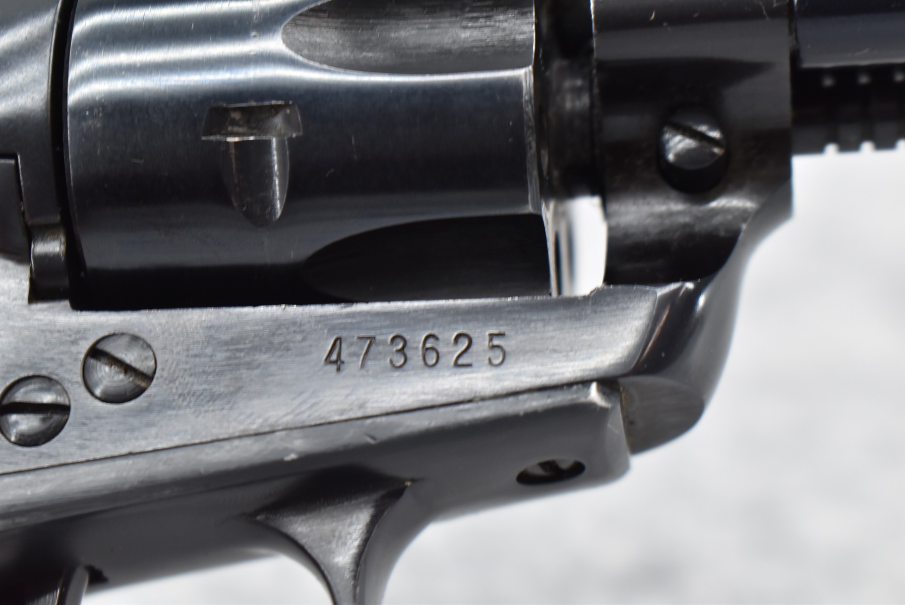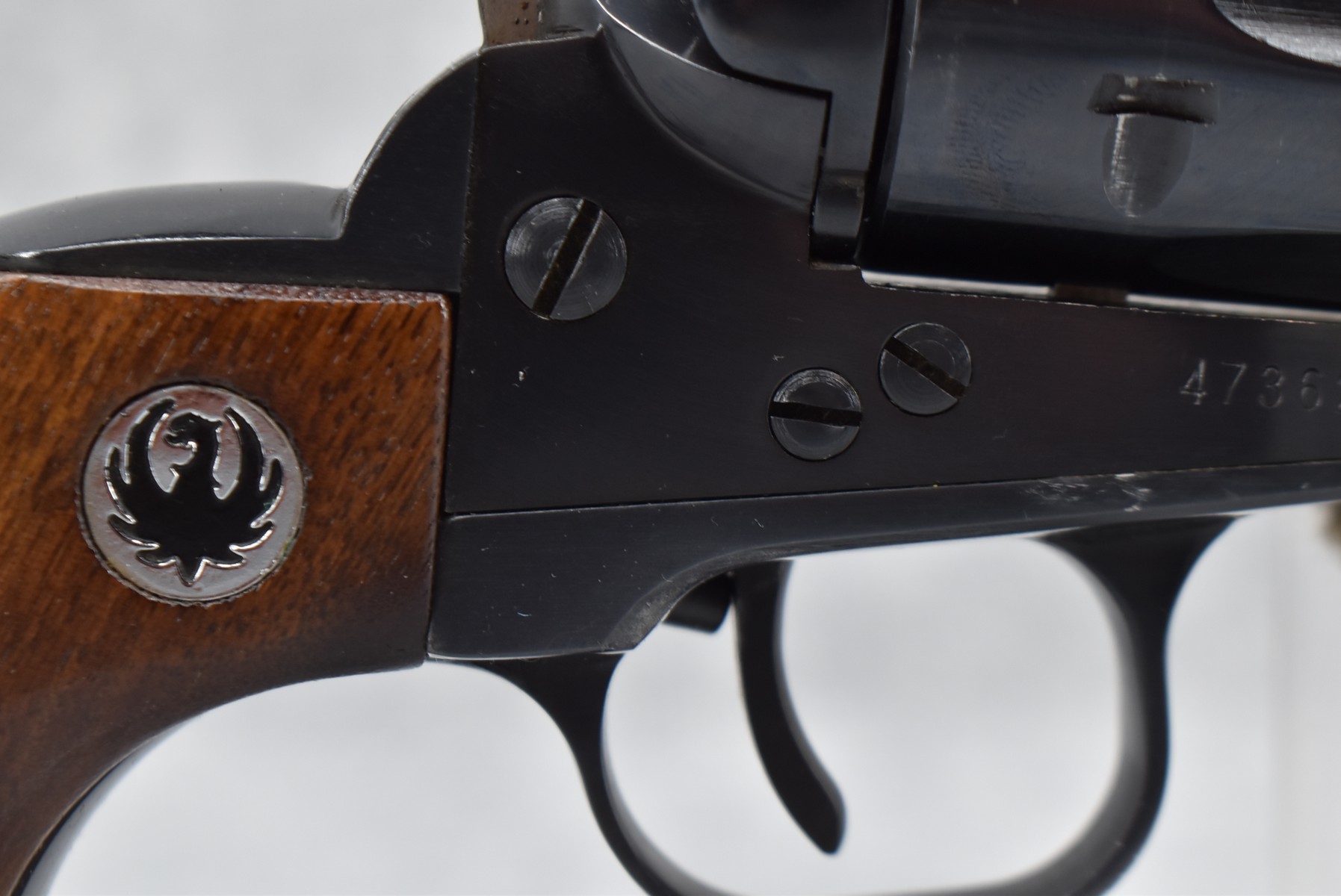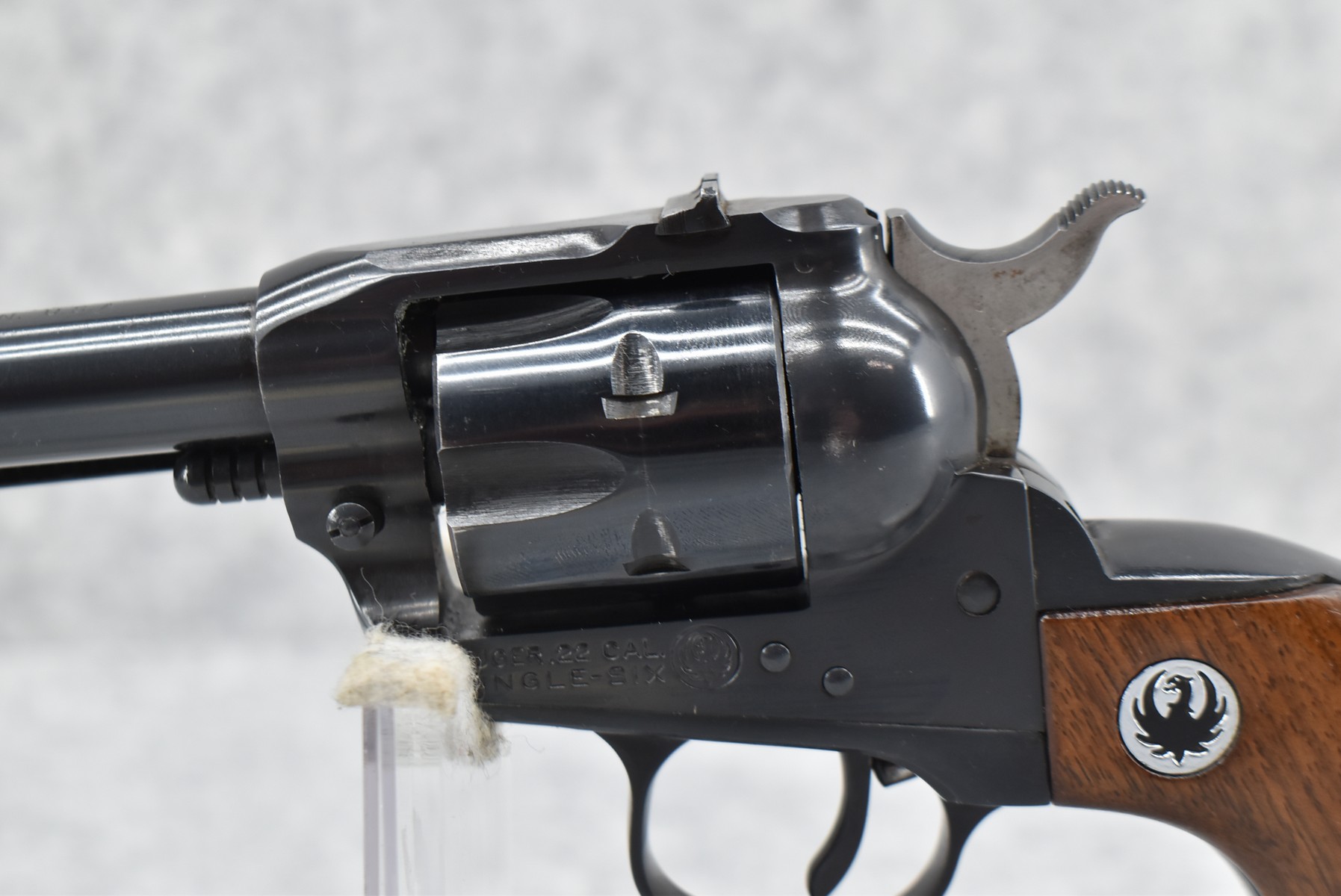 16R. Ruger – Mod. Single Six (3-Screw) – 22 Cal. Single Action Revolver – w/5 ½” Barrel w/Blade Front & Adj. Rear notch Sights – Blued Finish – w/Factory Black Eagle Smooth Wood Grips