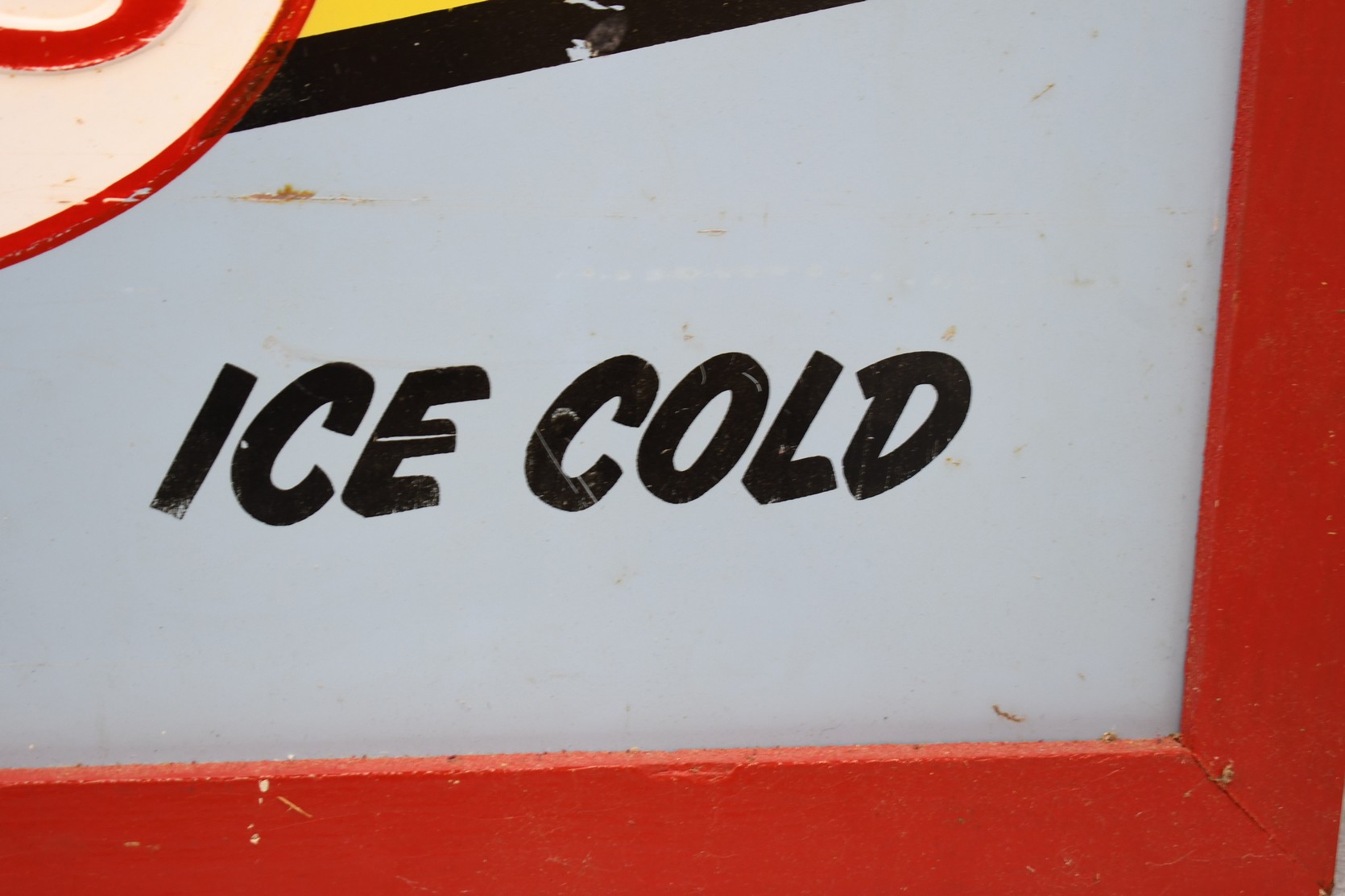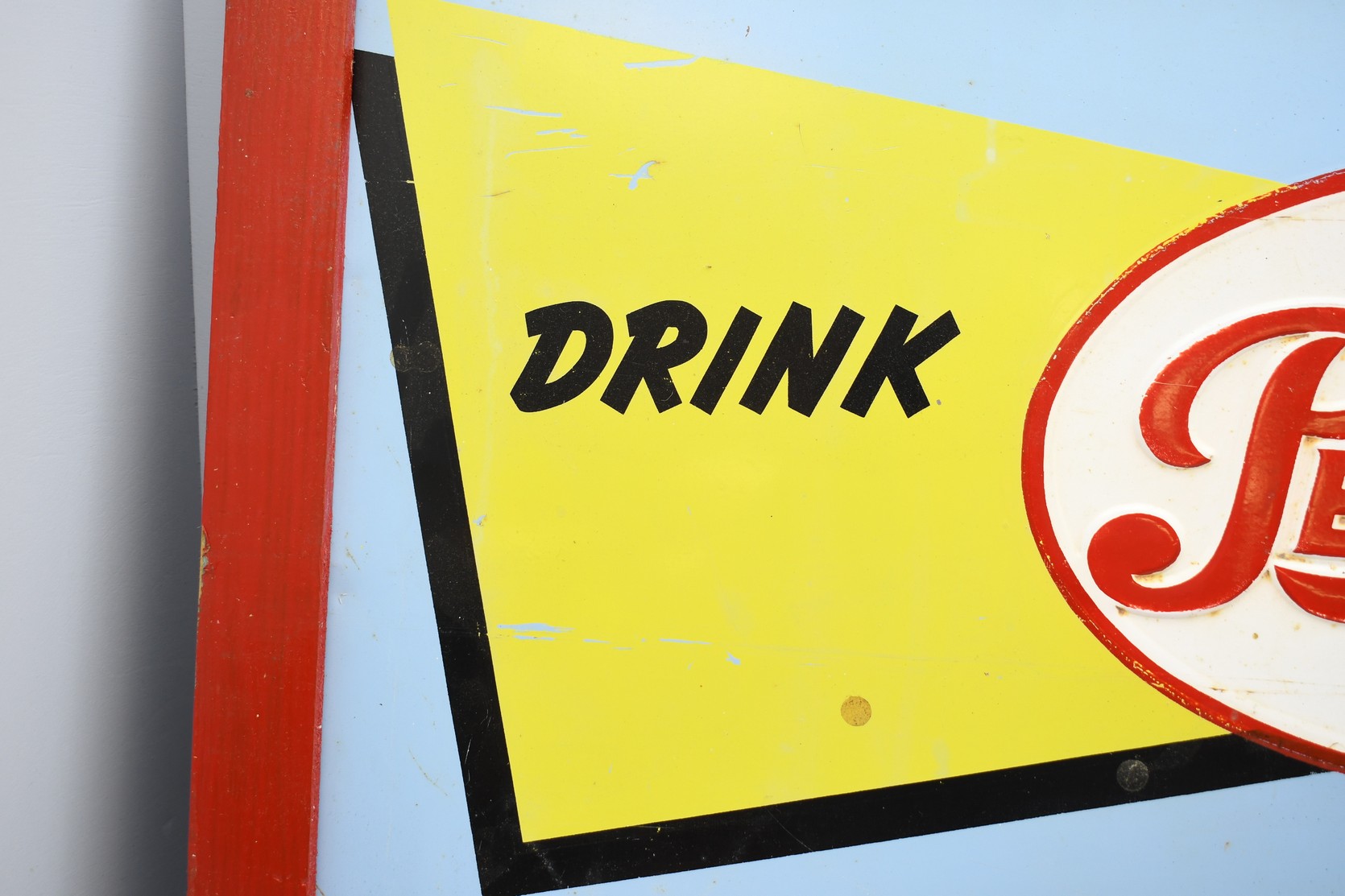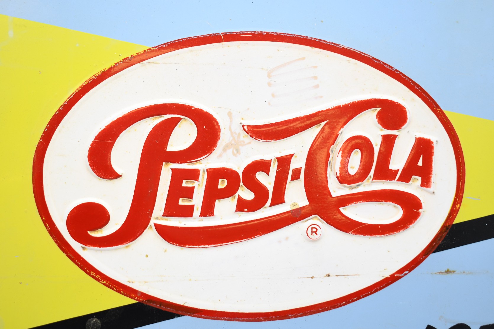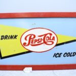 170. Drink Ice Cold Pepsi Cola Framed Advertising Sign – Sign is Original w/Raised Pepsi Cola Lettering – The Sign Measures 31” x 17” – The Overall Width w/Framing is 33½”