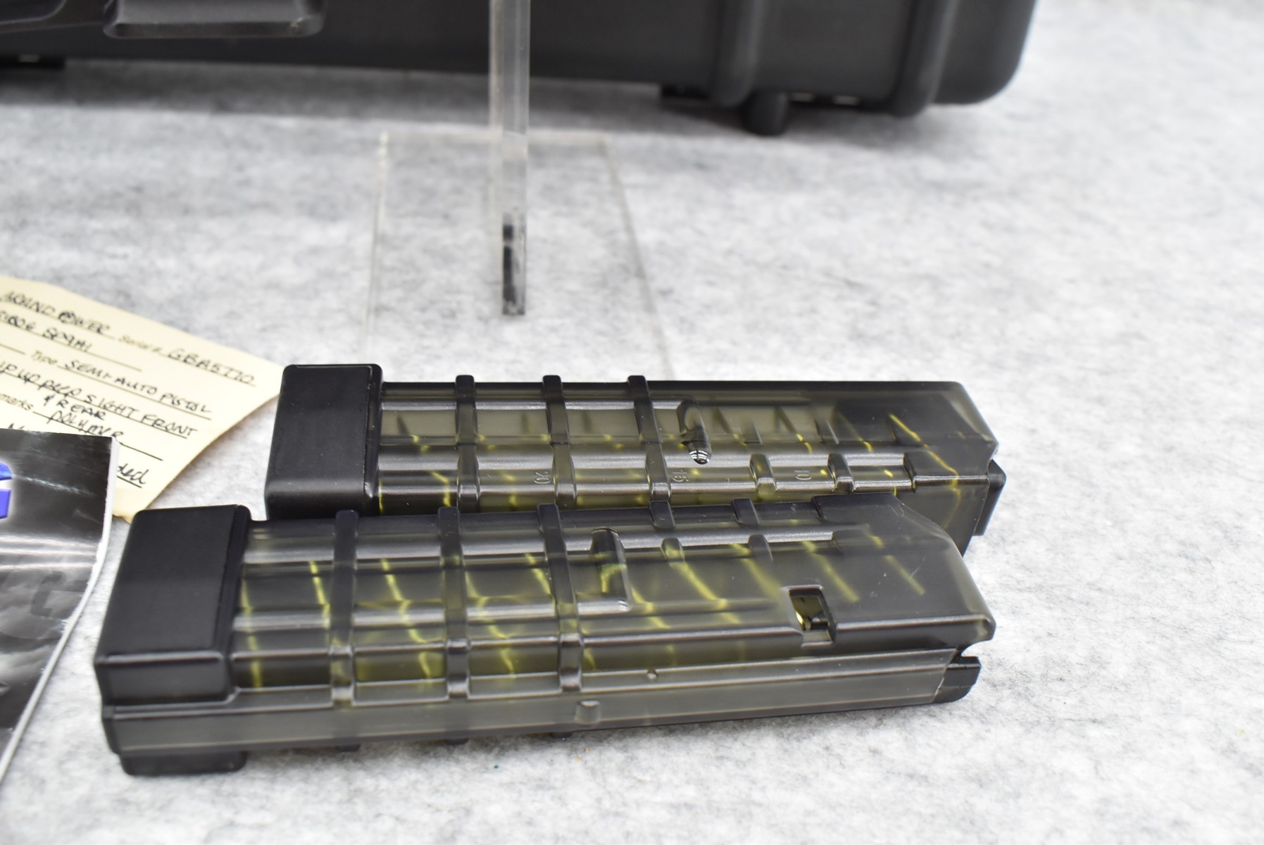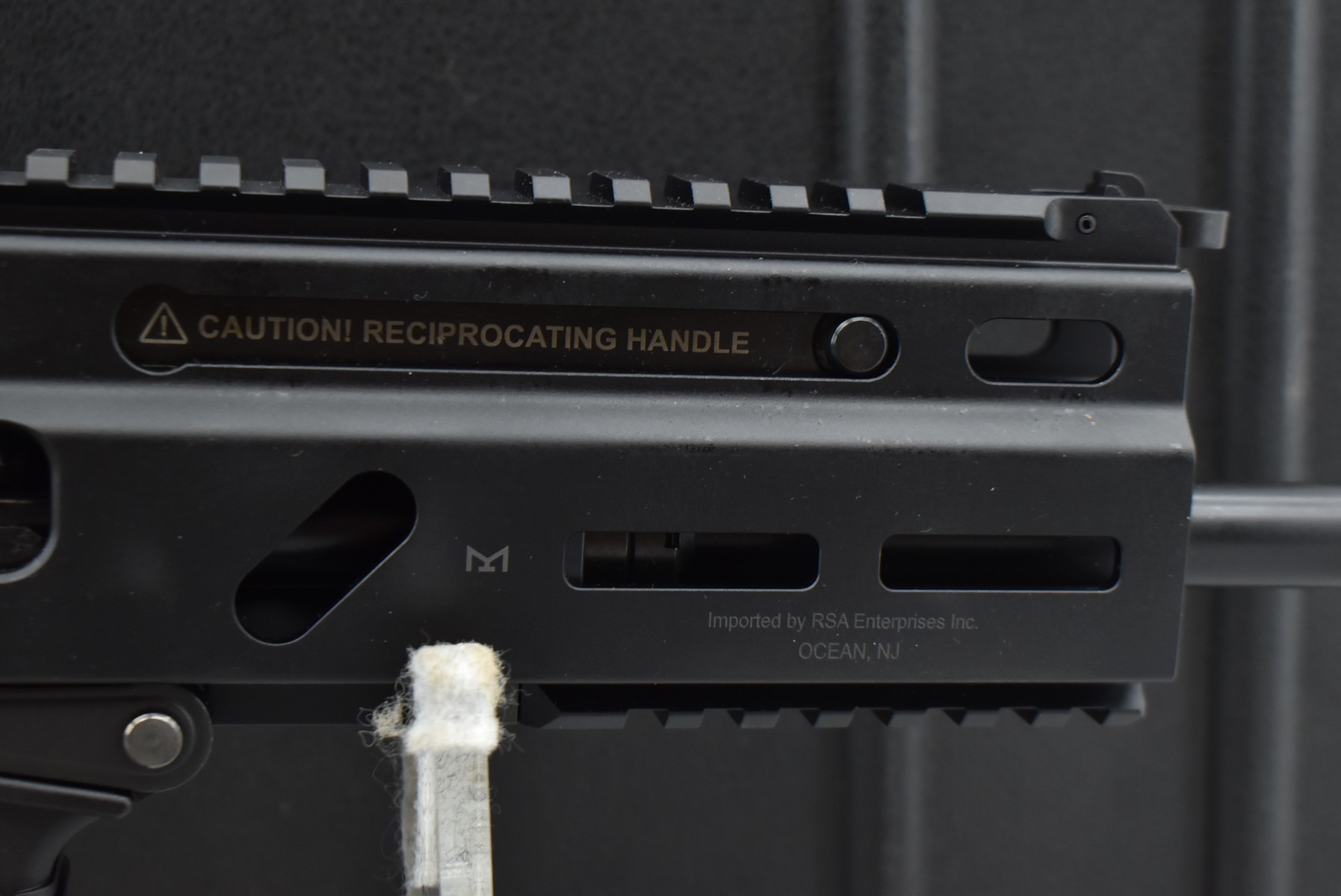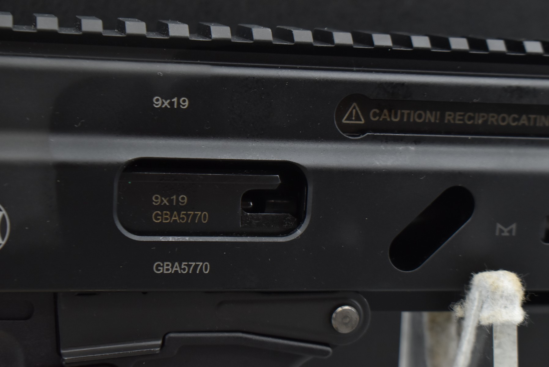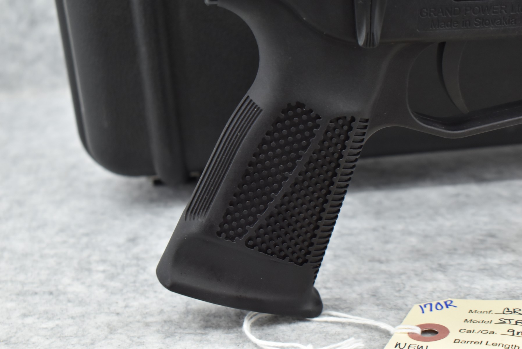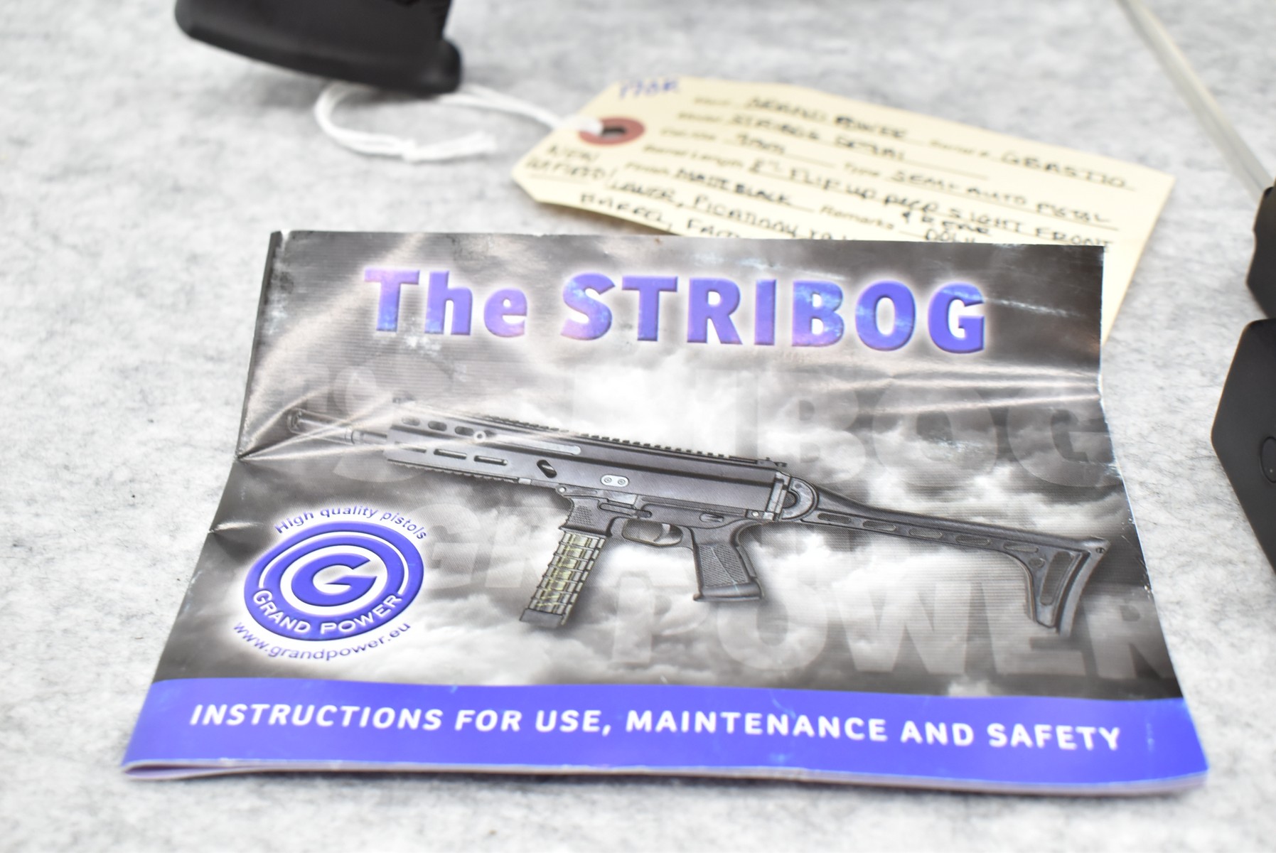 170R. Grand Powder – Mod. STRIBOG SP9A1 – 9mm Cal. Semi-Auto Pistol – w/8” Threaded Barrel w/Flip-Up Peep Sight Front & Rear Sights – Matte Black Finish – w/Polymer Lower – w/Picatinny Rail – New & Unfired w/Factory Hard Case & 2 Mags