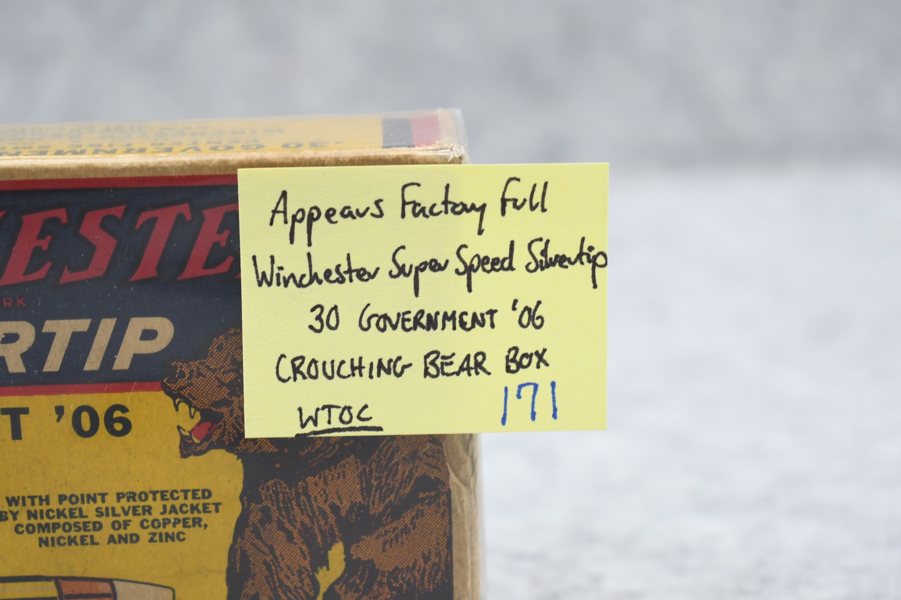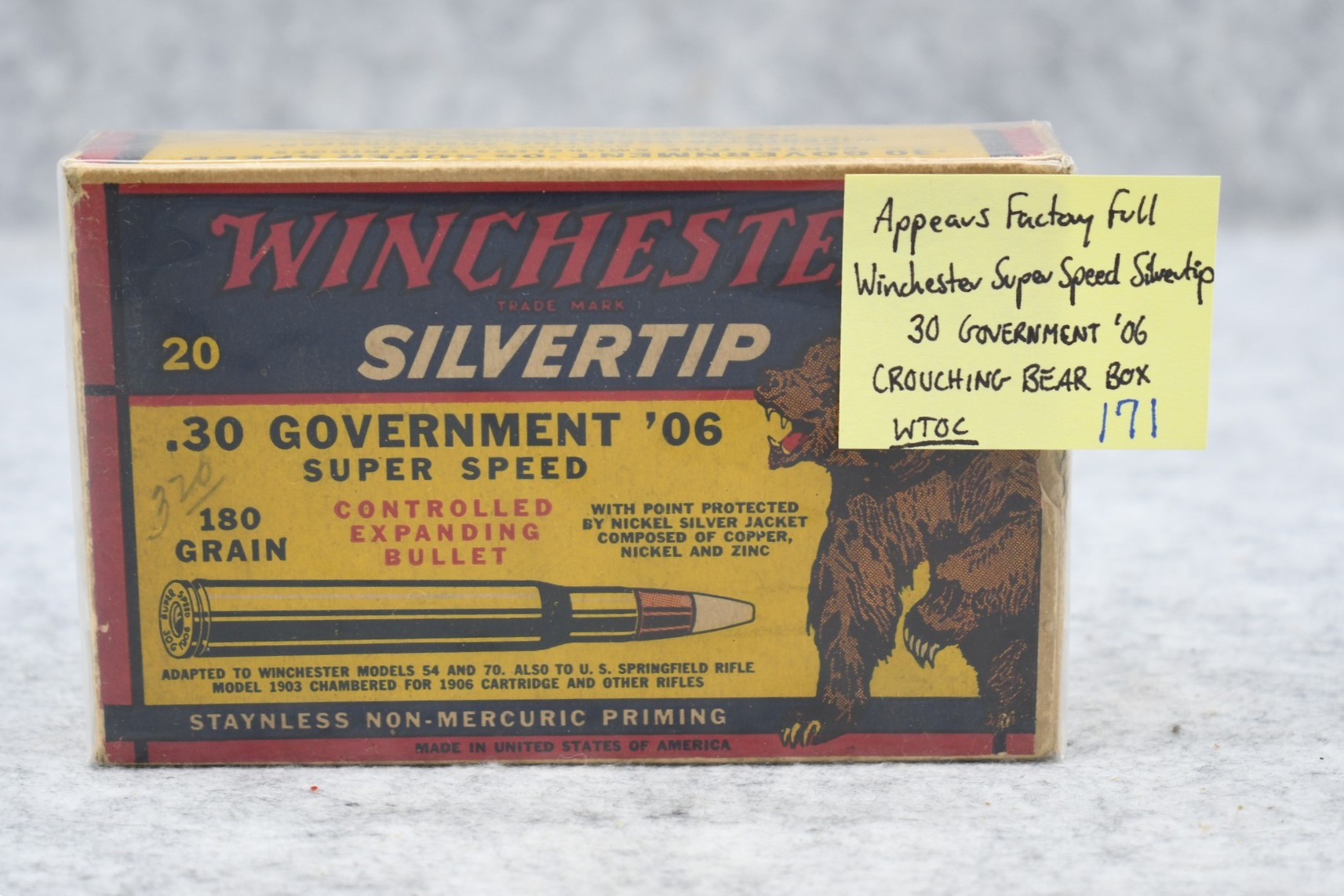 171. Winchester – Super Speed Silvertip 30 Government ’06 Crouching Bear Box – AFF – WTOC