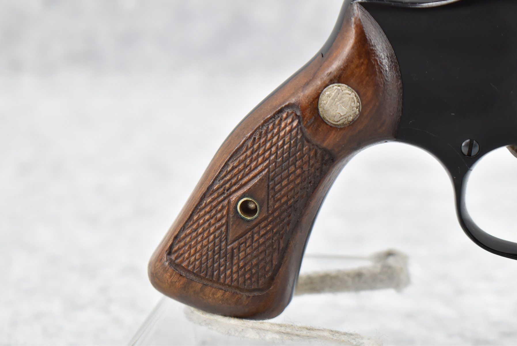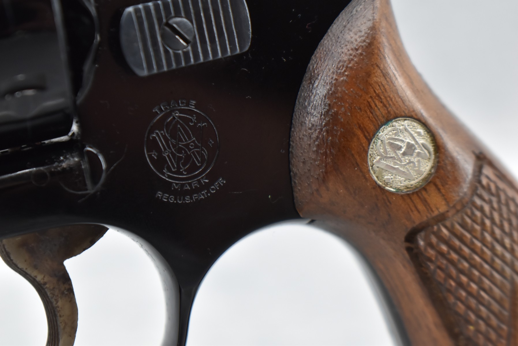 172R. Smith & Wesson – Mod. 1955 22/32 Kit Gun Airweight “Pre-Model 43” – 22 Long Rifle Cal. Double Action Revolver – w/3 ½” Barrel w/Ramp Front & Adj. Rear Sights – Blued Finish – w/Factory Checkered Diamond Wood Grips w/S&W Medallion – Grips Number to the Gun! Cylinder, Underside of Barrel & Serial Number All Match! Under Left Side Gip on Frame is Marked “R-S”