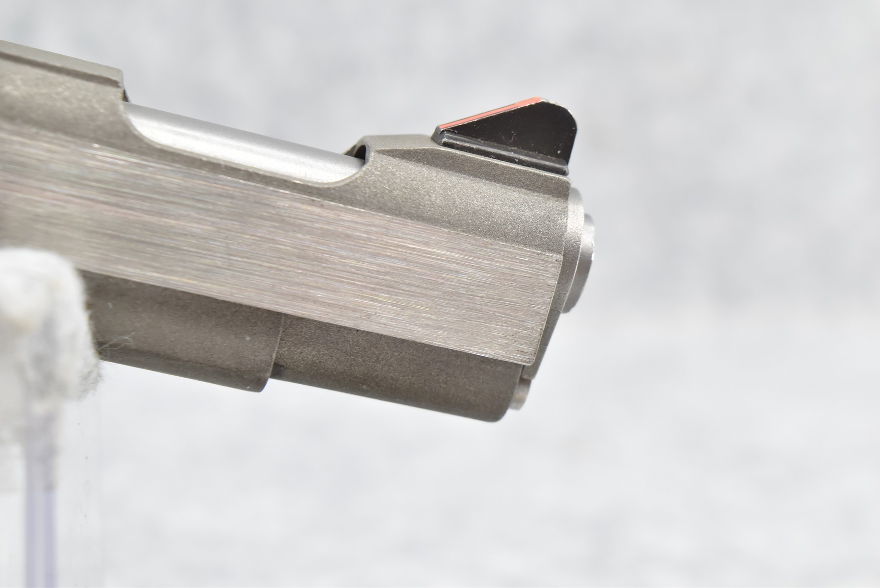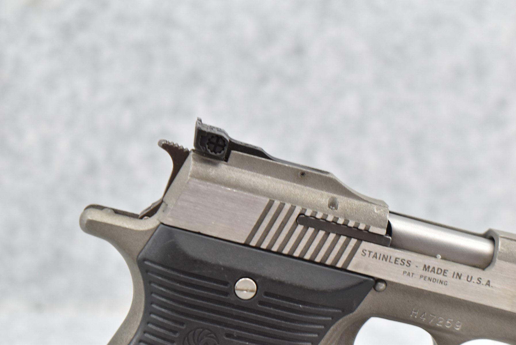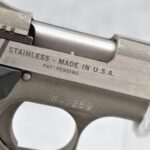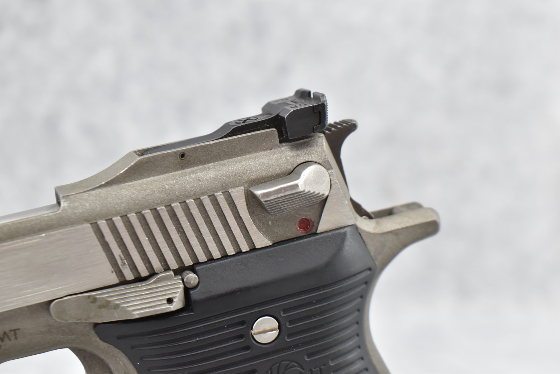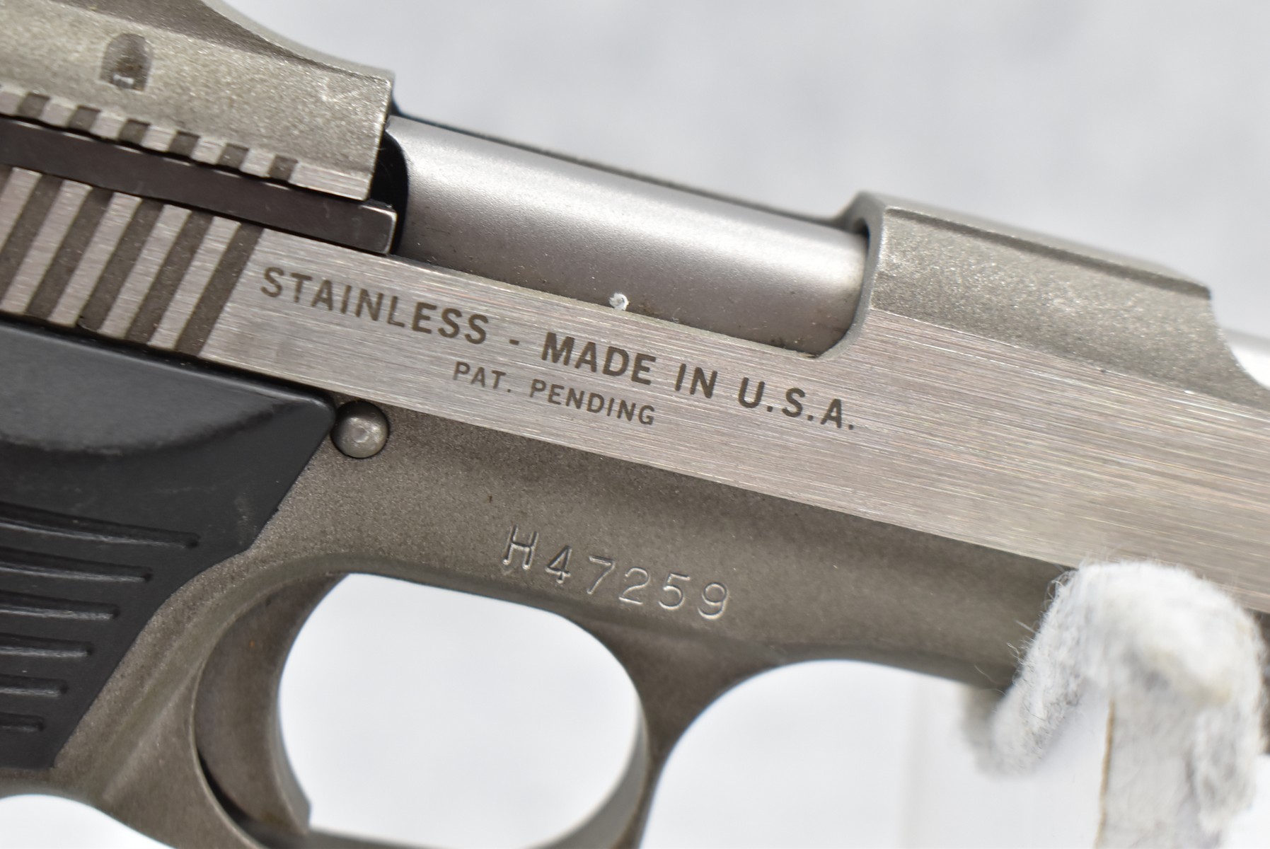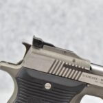 174R. AMT – Mod. Automag II – 22 WMR Cal. Semi-Auto Pistol – w/4 9/16” Barrel w/Blade Front and Adjustable Rear Notch Sights – Stainless Finish – w/AMT Factory Black Plastic Grips – w/1 Factory Detachable Magazine