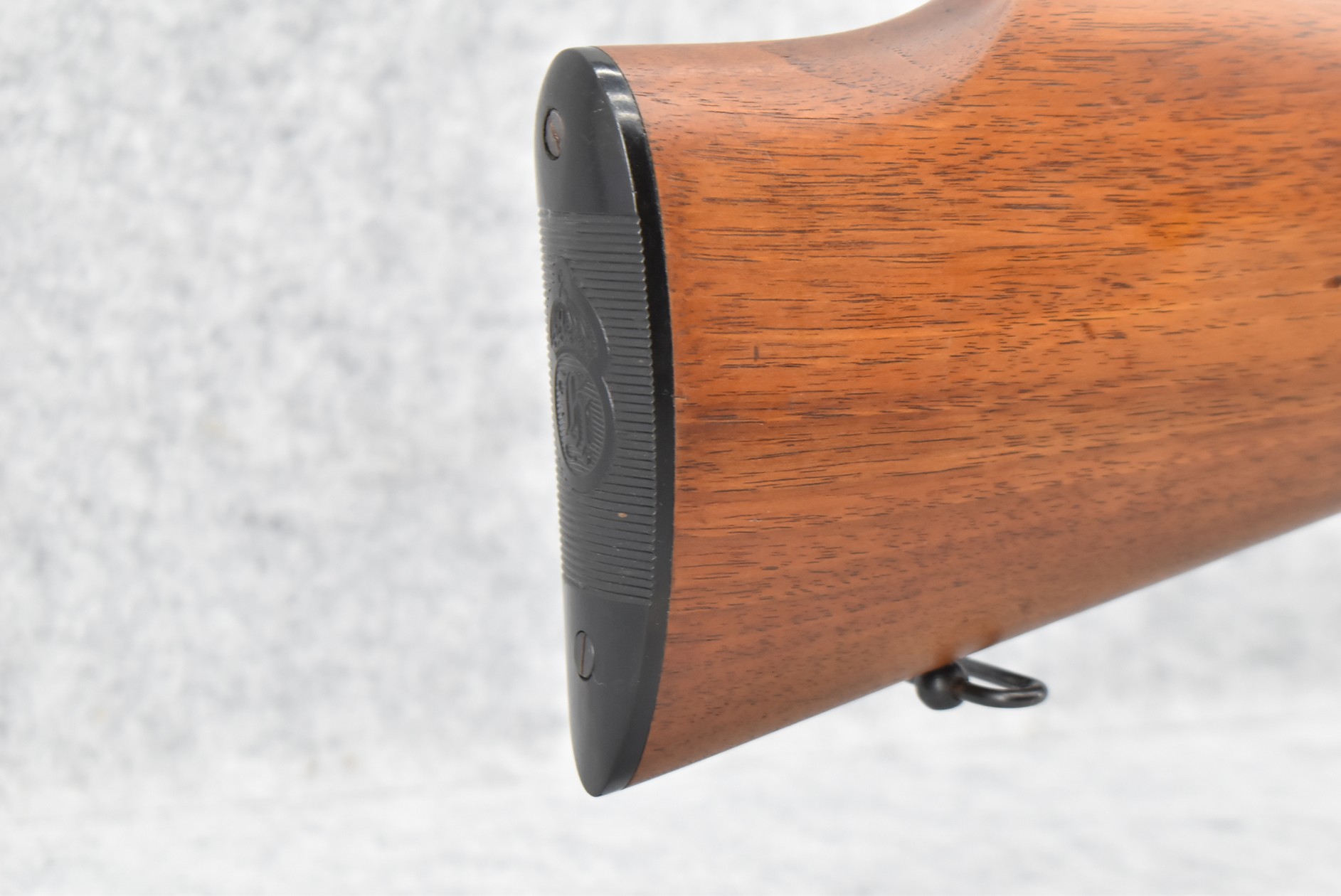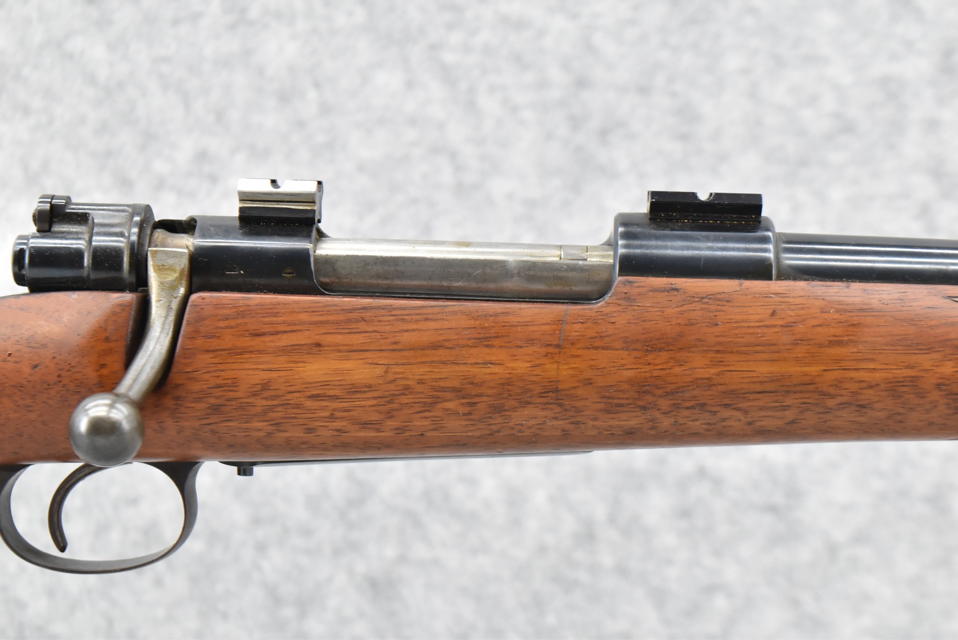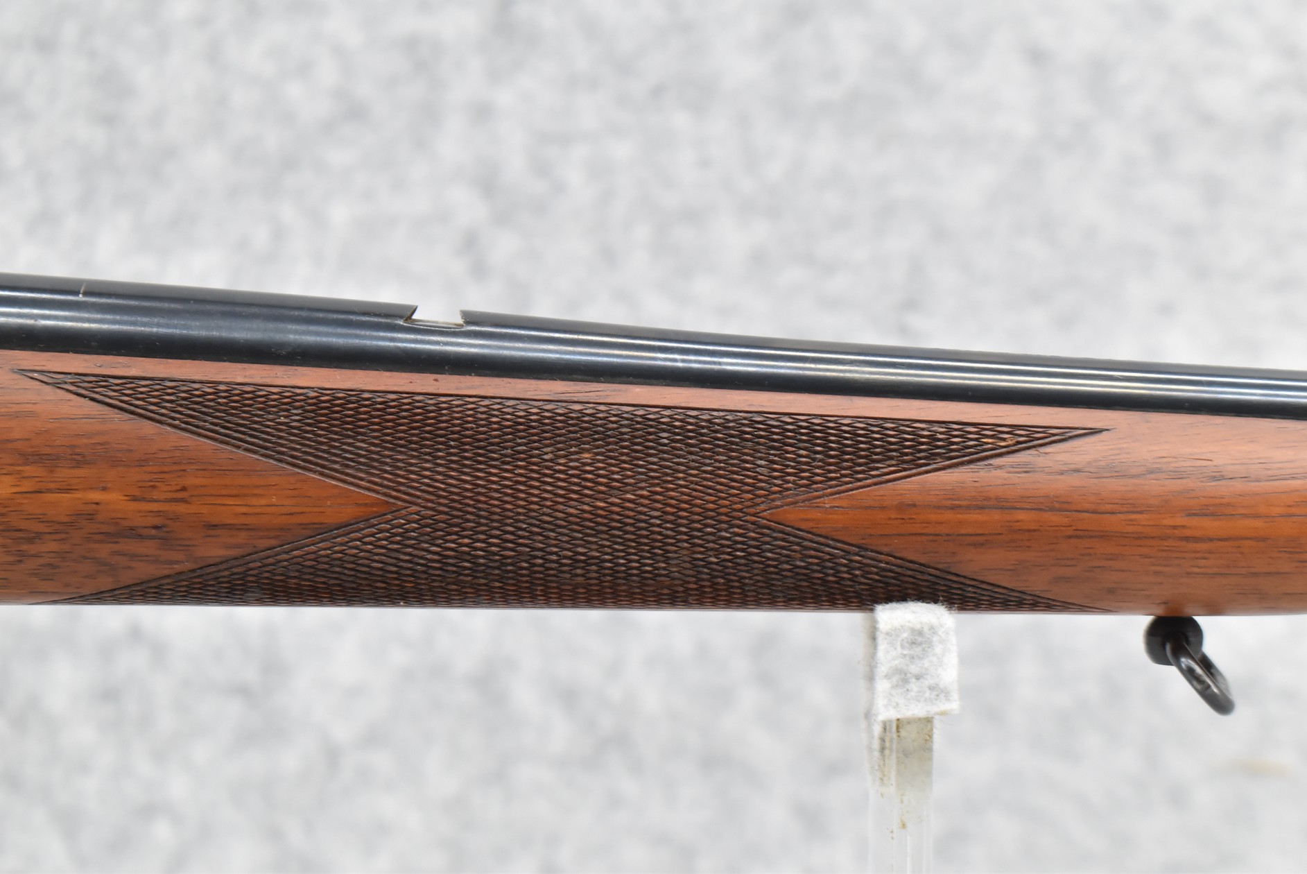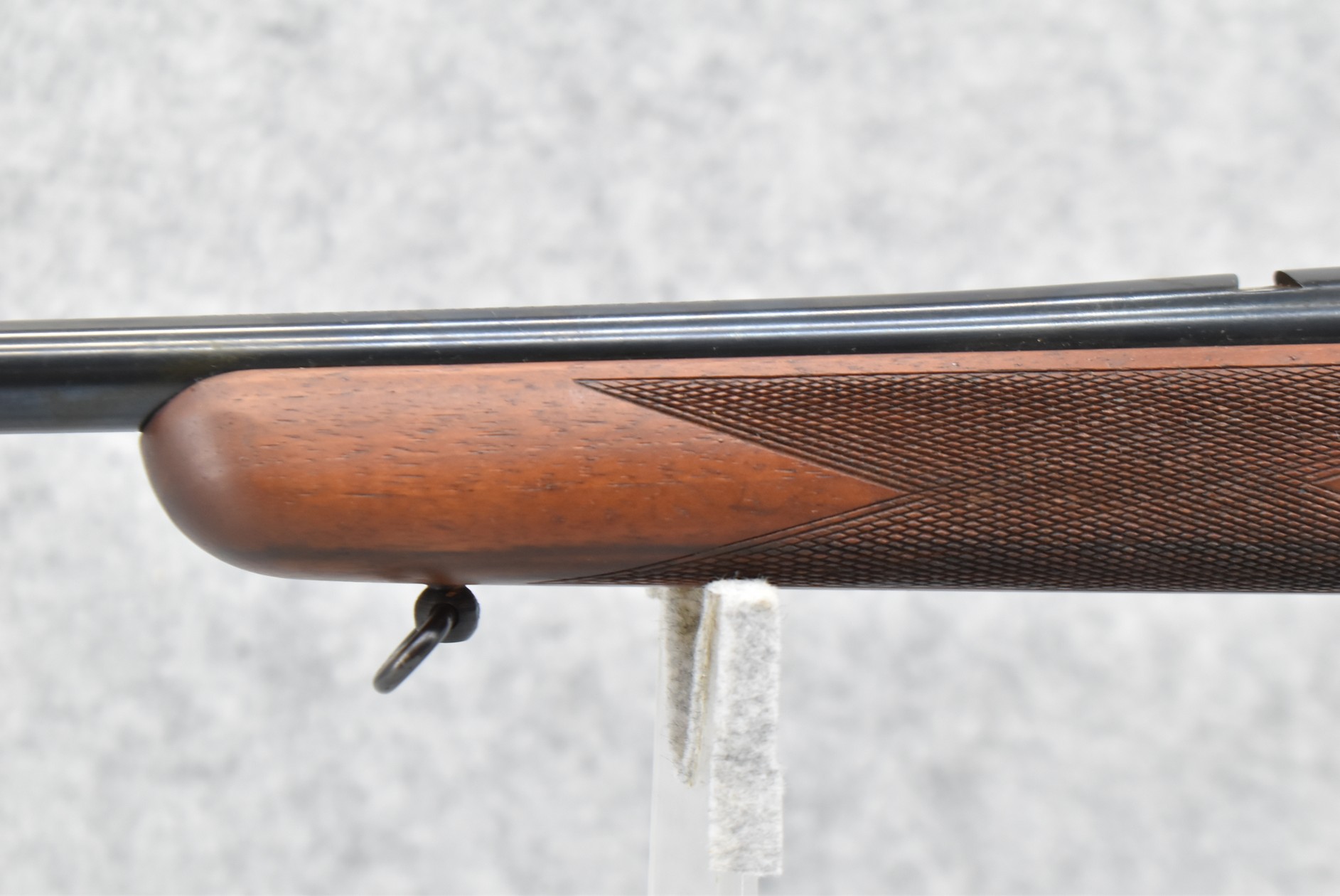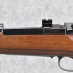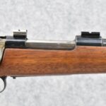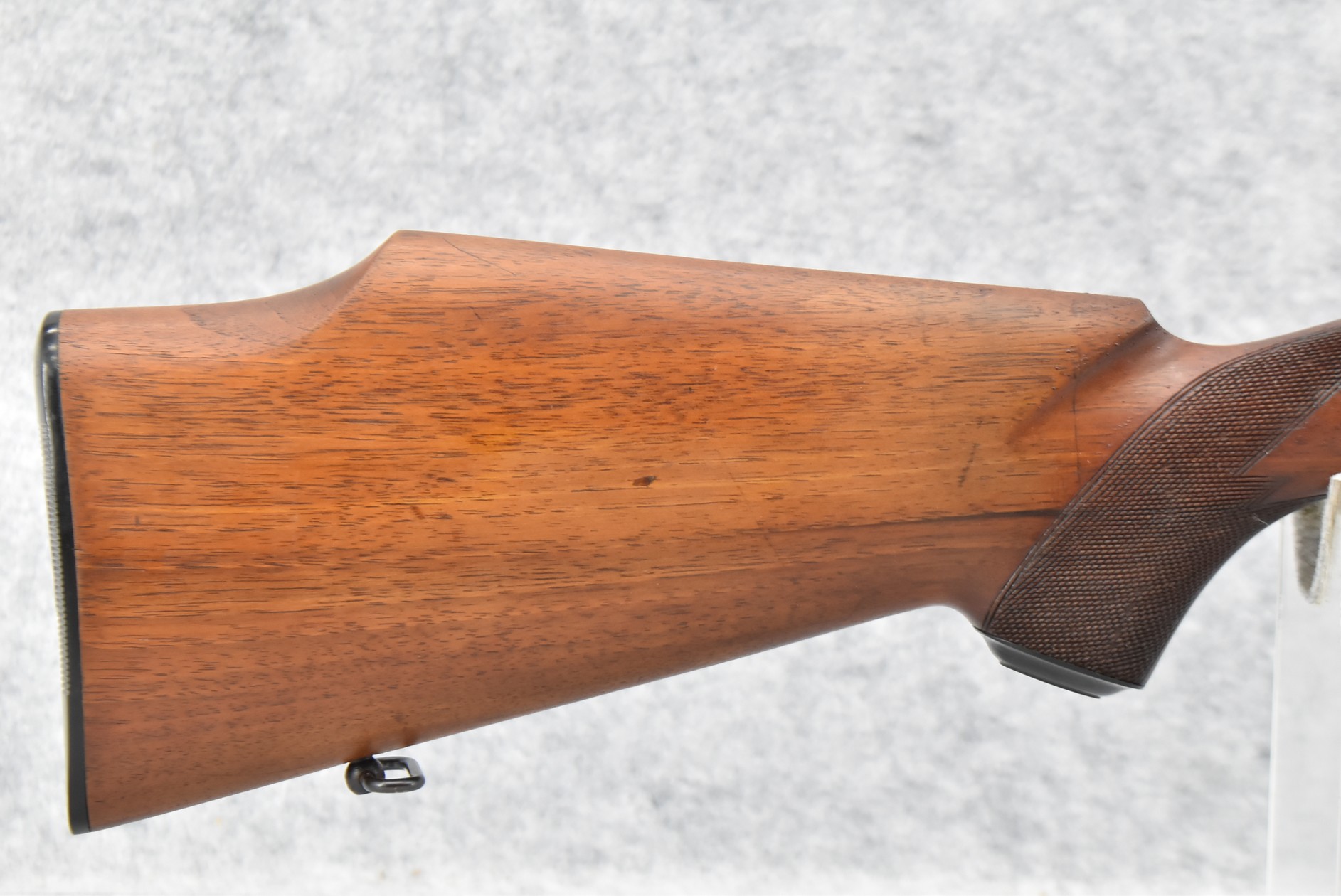 177R. Husqvarna – Mod. 1951 High Power – 220 Swift Cal. Bolt Action Rifle – w/24” Barrel w/Hooded Front Blade Sight – Blued Finish – w/Checkered Pistol Grip Monte Carlo Wood Stock w/Factory Butt Plate – w/Hinged Floor Plate – w/2pc. Bases