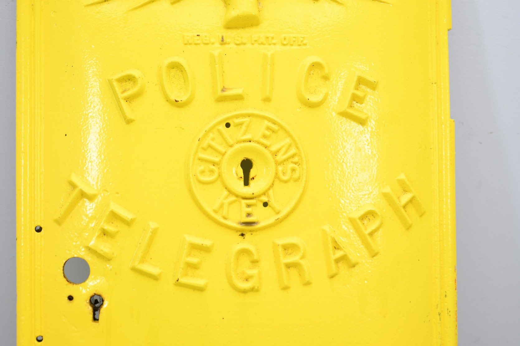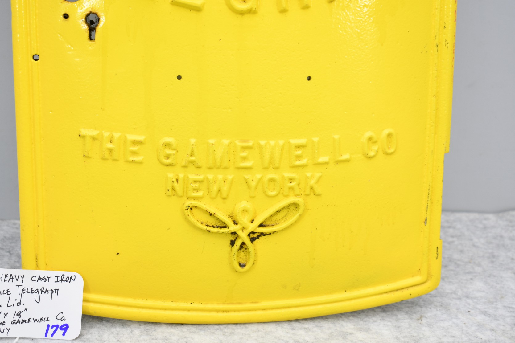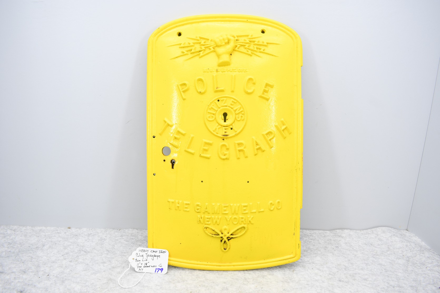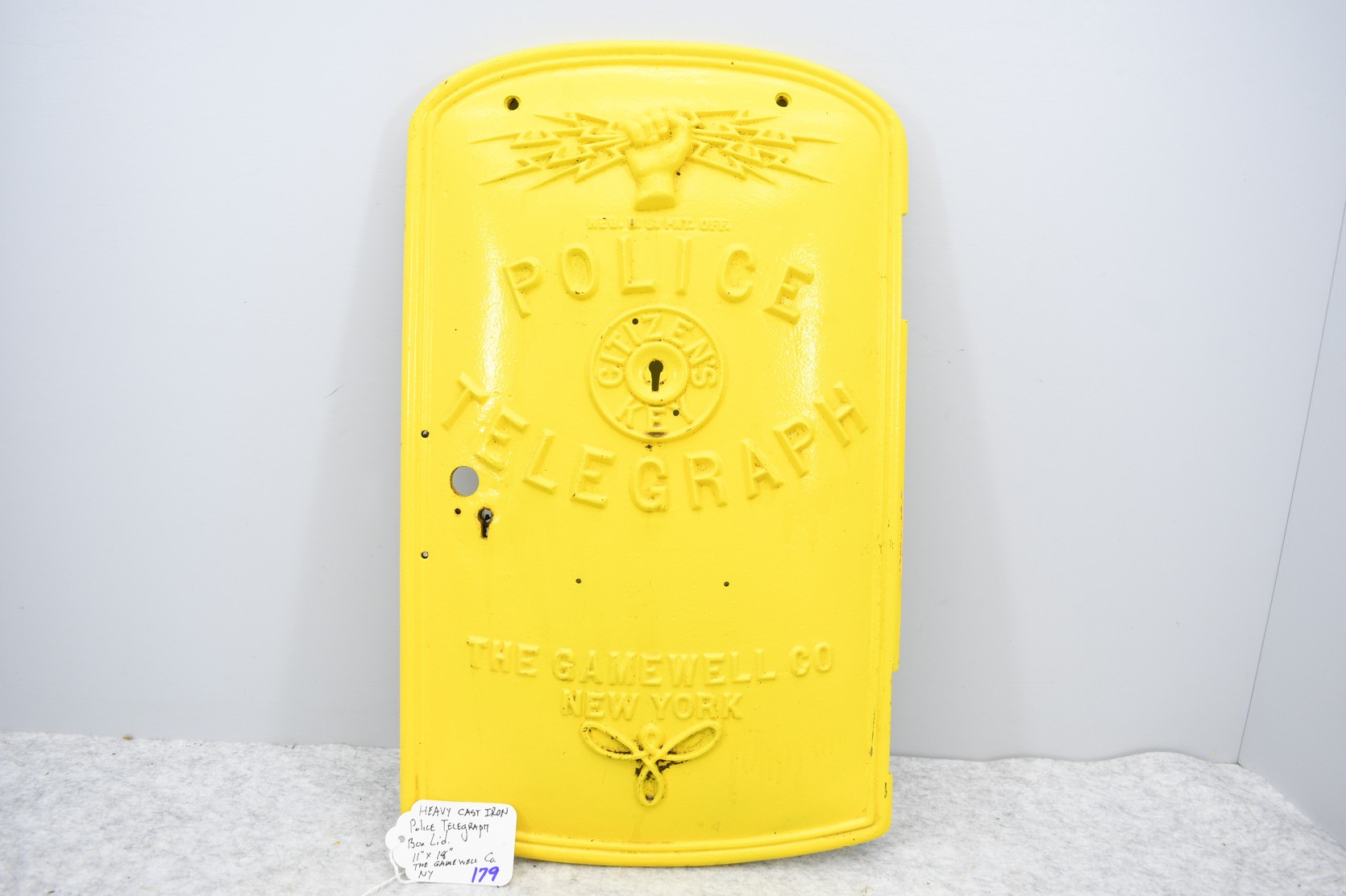 179. Heavy Cast Iron Police Telegraph Box Lid – The Gamewell Co. New York – Measures 11” x 18”