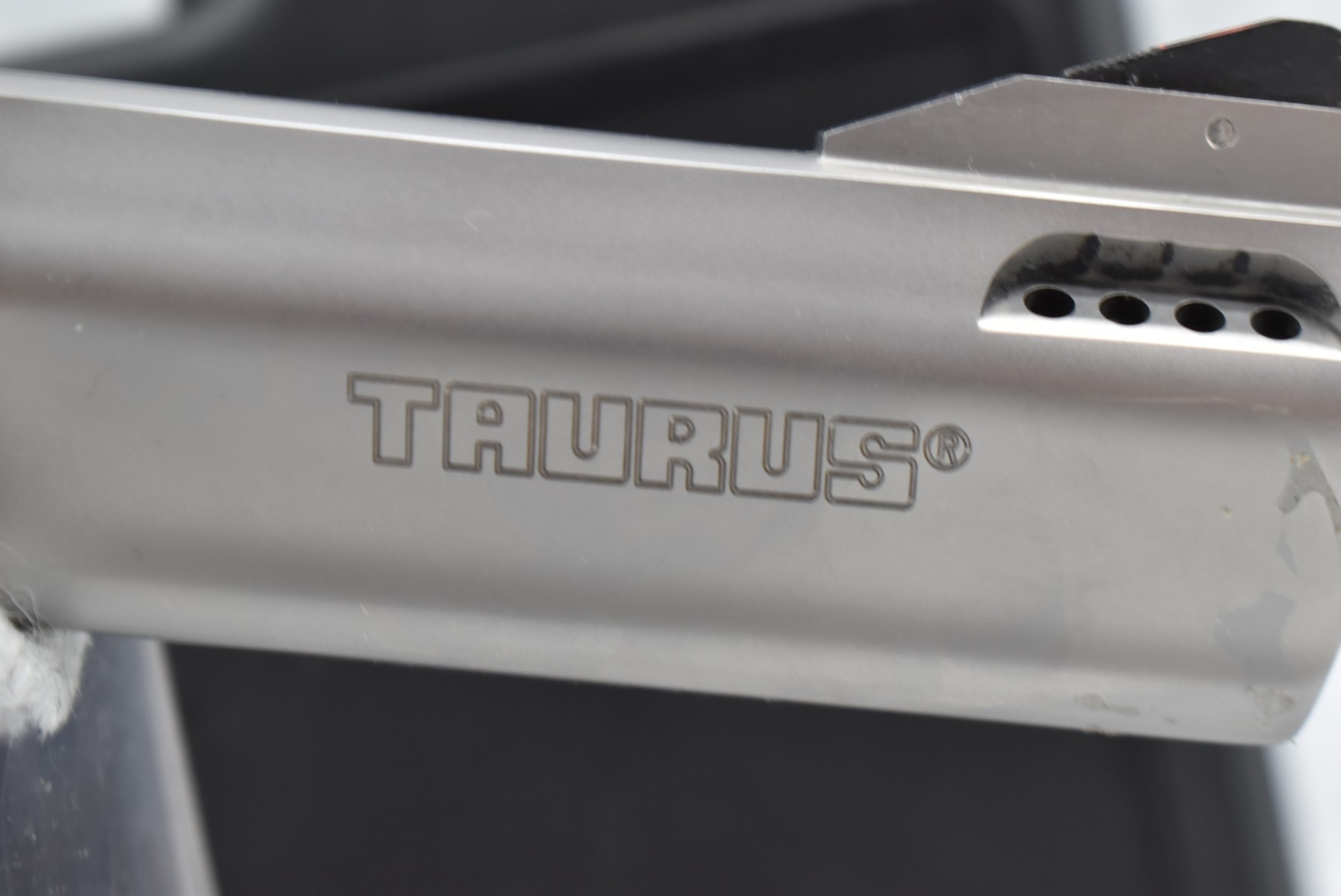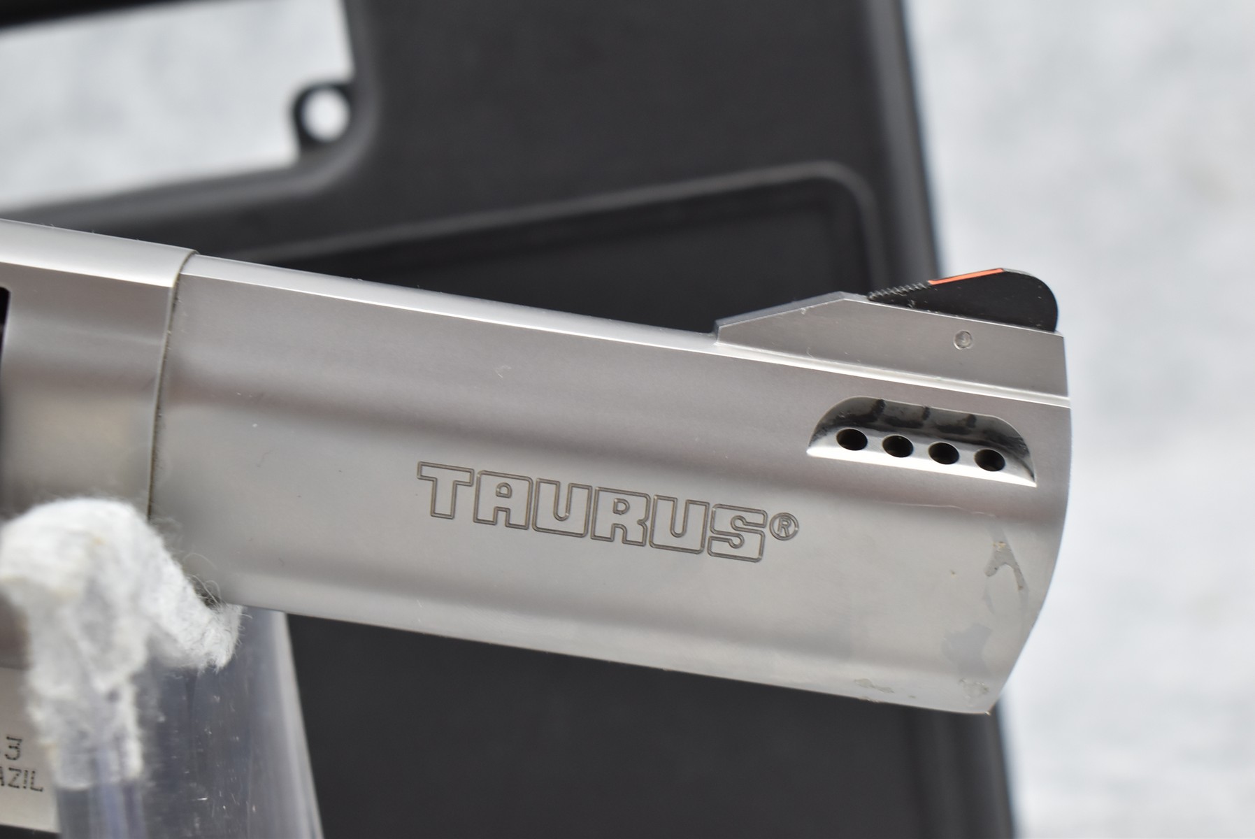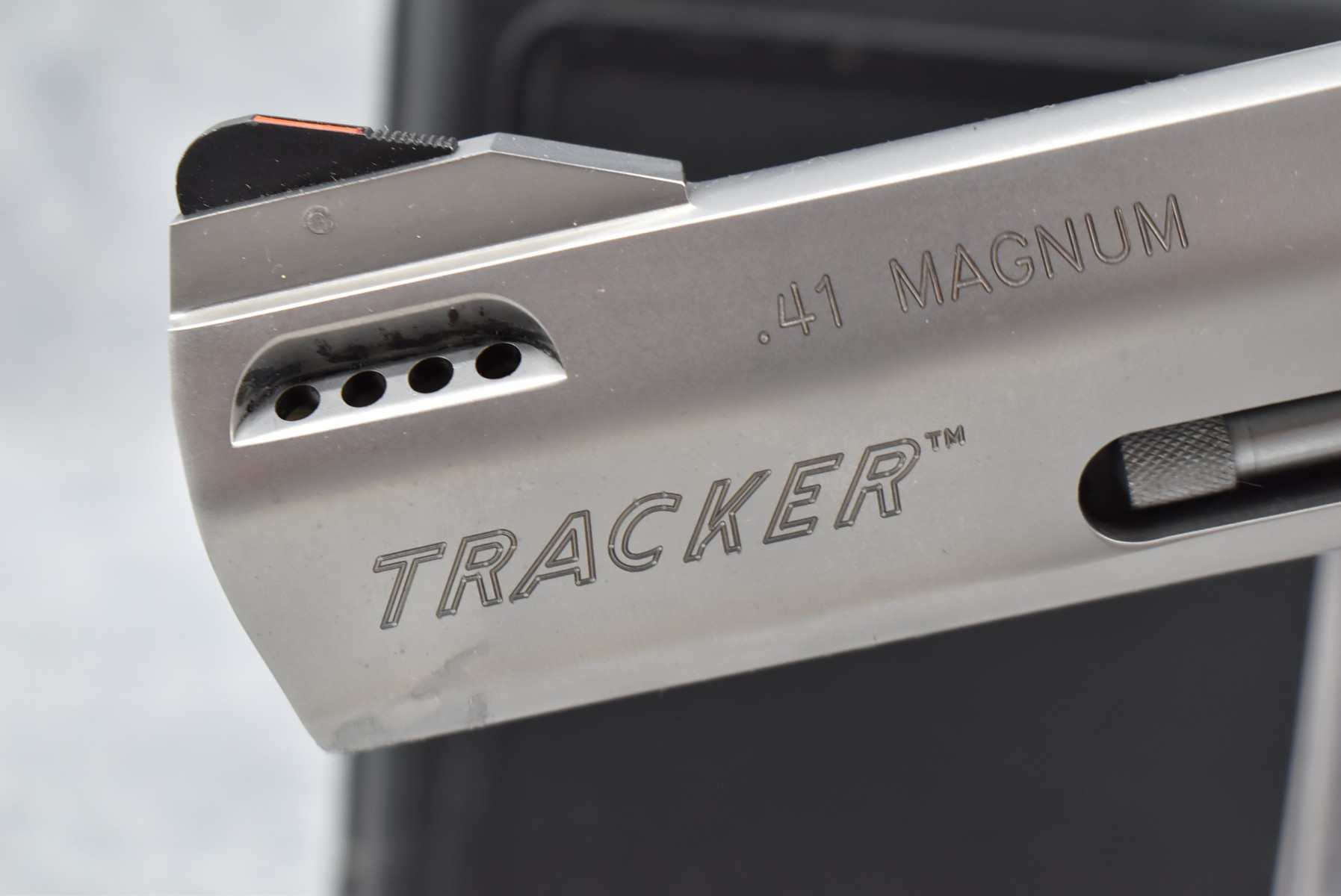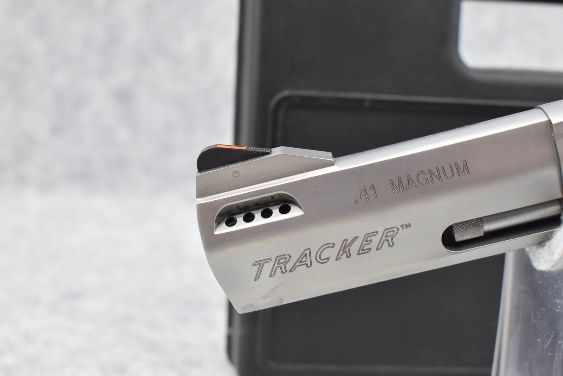 179R. Taurus – Mod. 425 Tracker – 41 Mag. Cal. Double Action Revolver – w/4” Ported Barrel w/Ramp Blade Front and White Outlined Adjustable Rear Sights – w/Factory Black Rubber Grips – w/5-Shot Fluted Cylinder – w/Factory Taurus Hard Case and Manual
