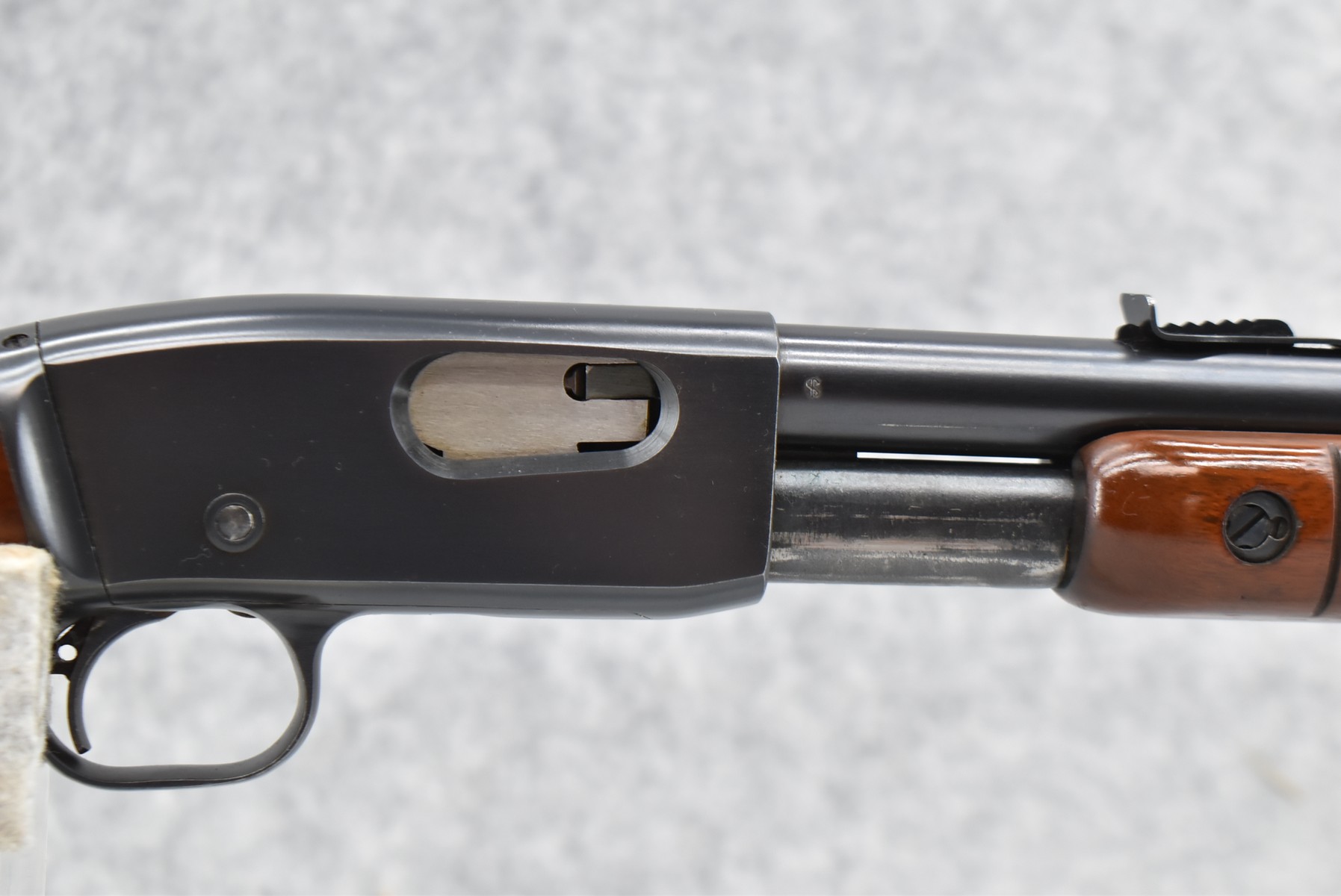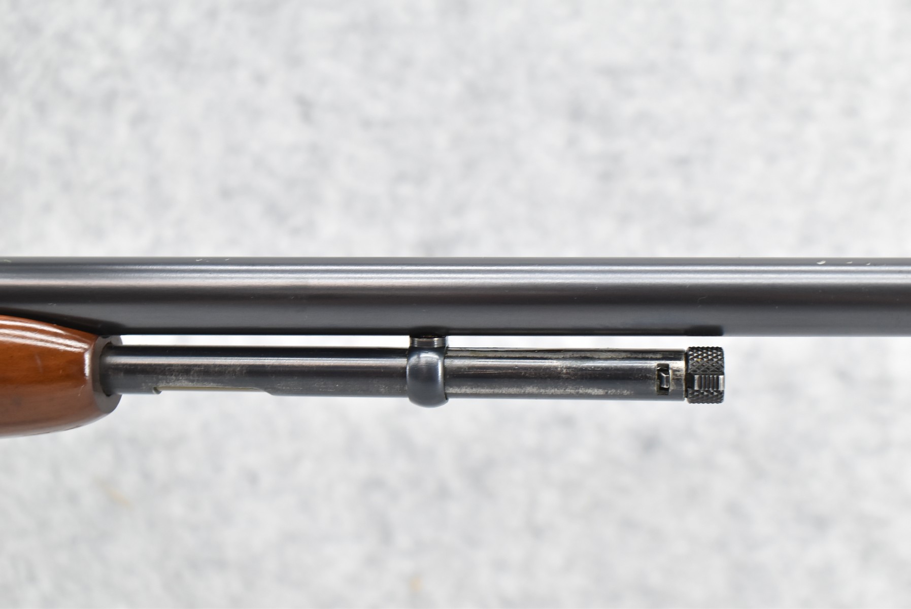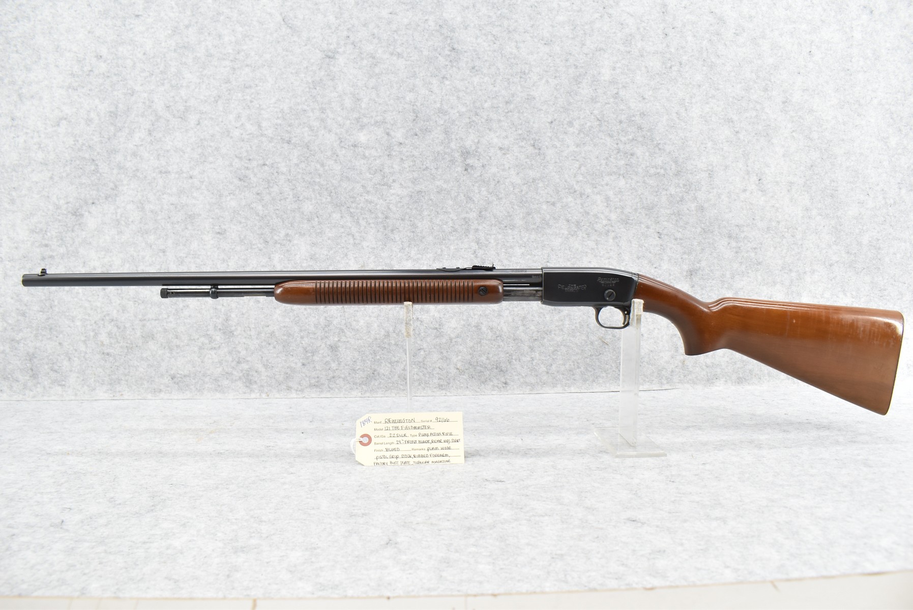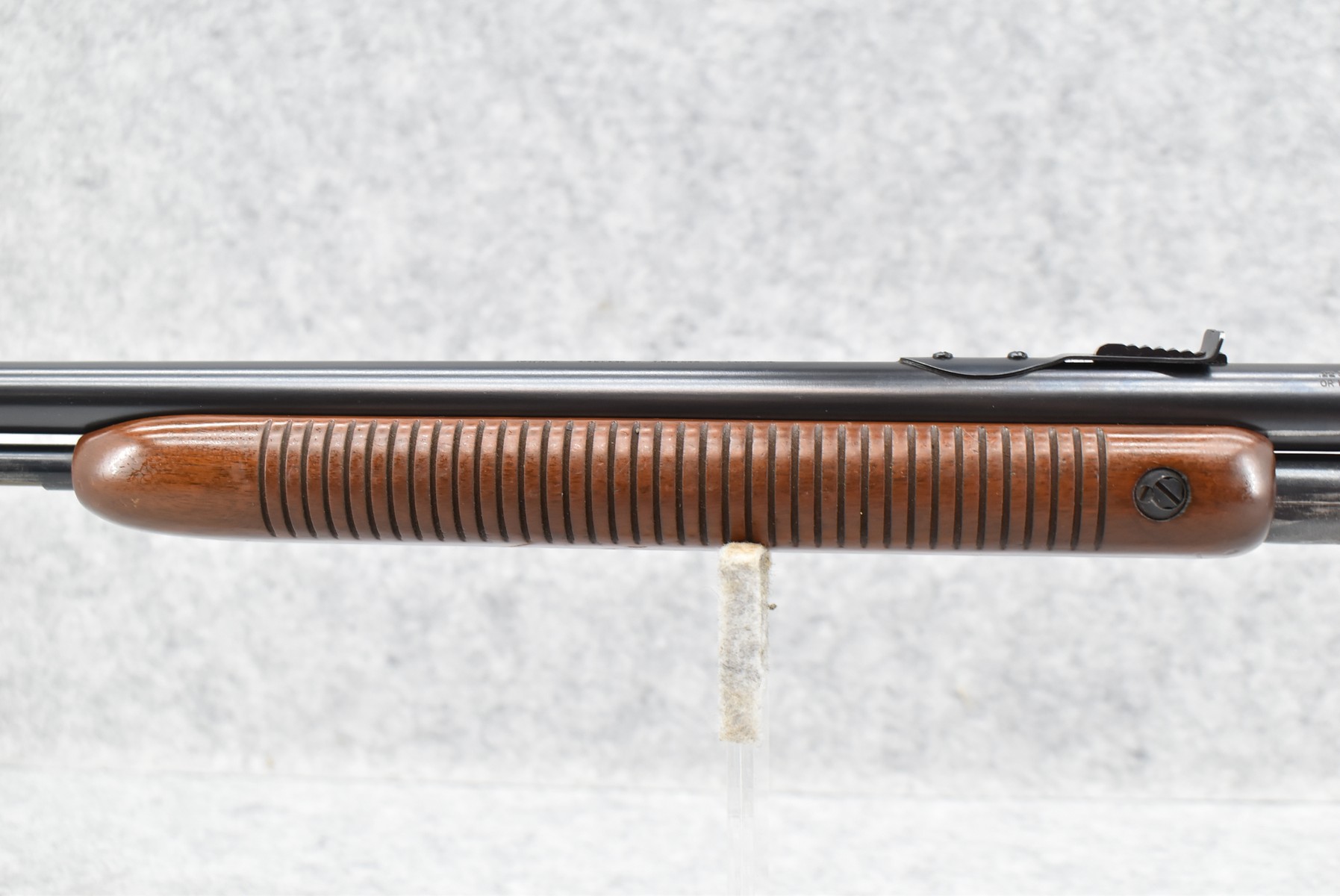 184R. Remington – Mod. 121 The Fieldmaster – 22 Cal. Pump Action Rifle – w/24” Barrel w/Front Blade & Rear Adj. Sights – Blued Finish – w/Plain Wood Pistol Grip Stock w/Factory Butt Plate & Ribbed Forearm – w/Tubular Magazine