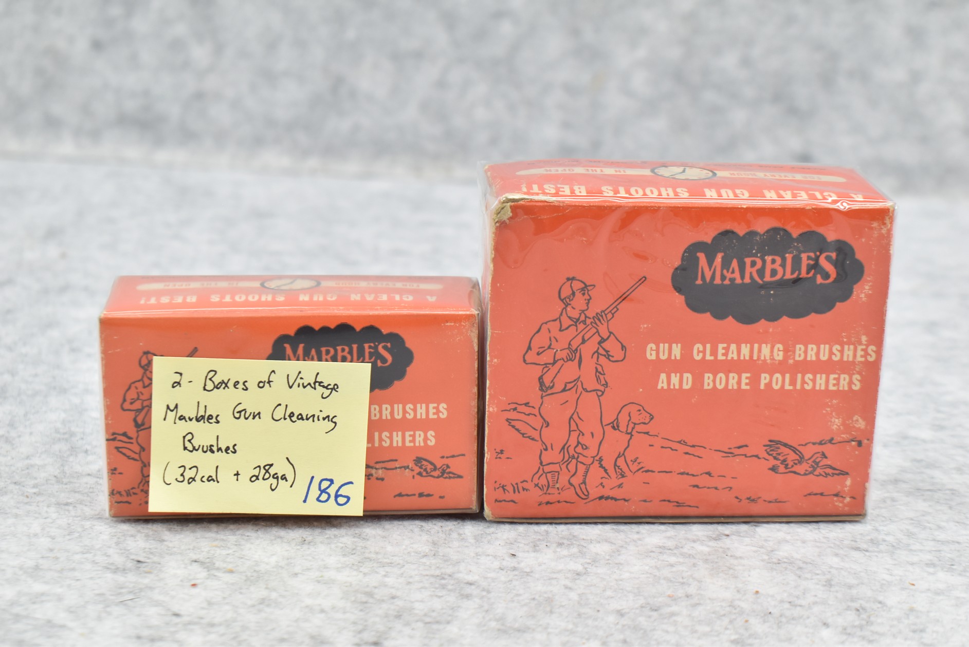 186. 2 Boxes of Vintage Marbles Gun Cleaning Brushes (32 Cal. & 28ga.)