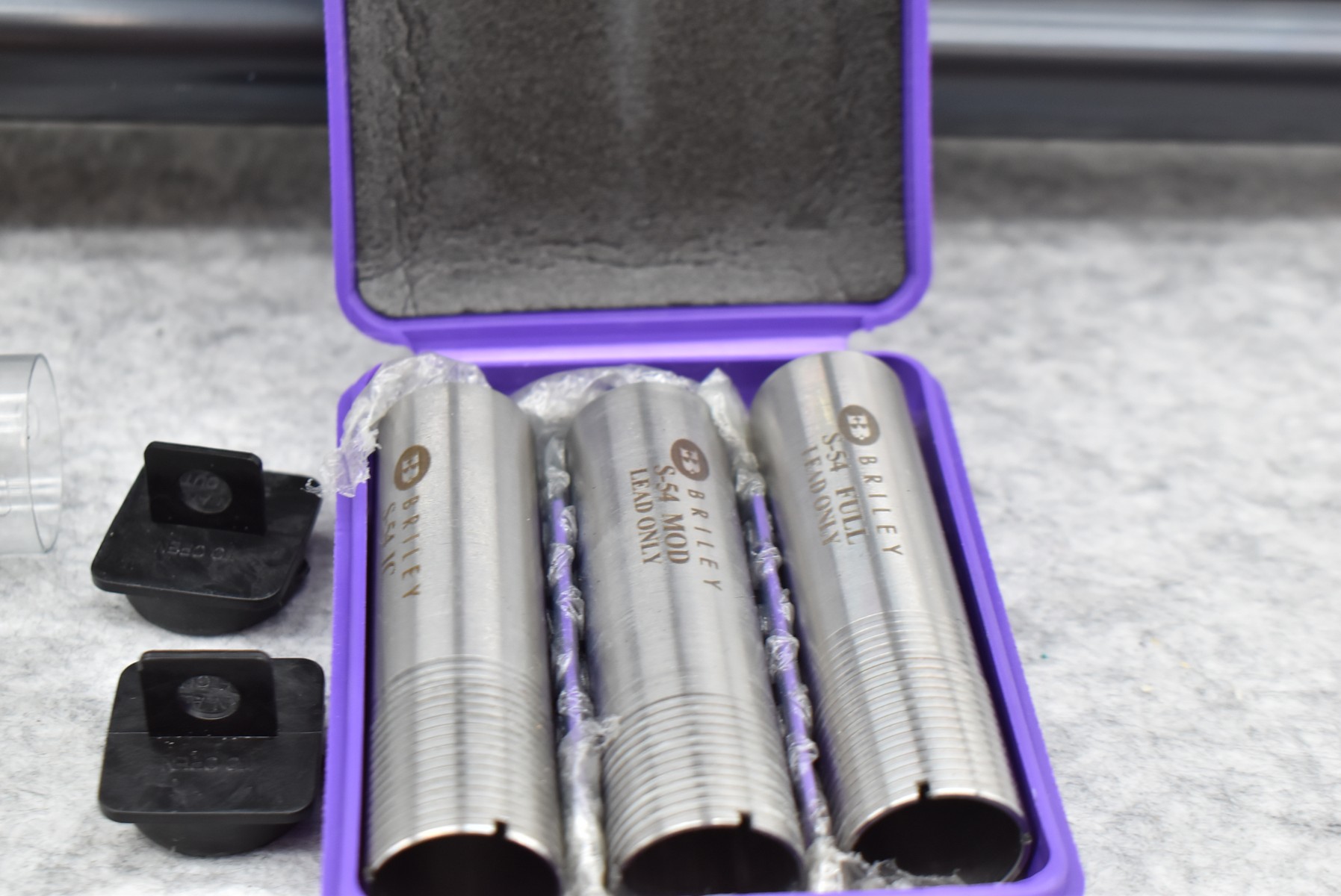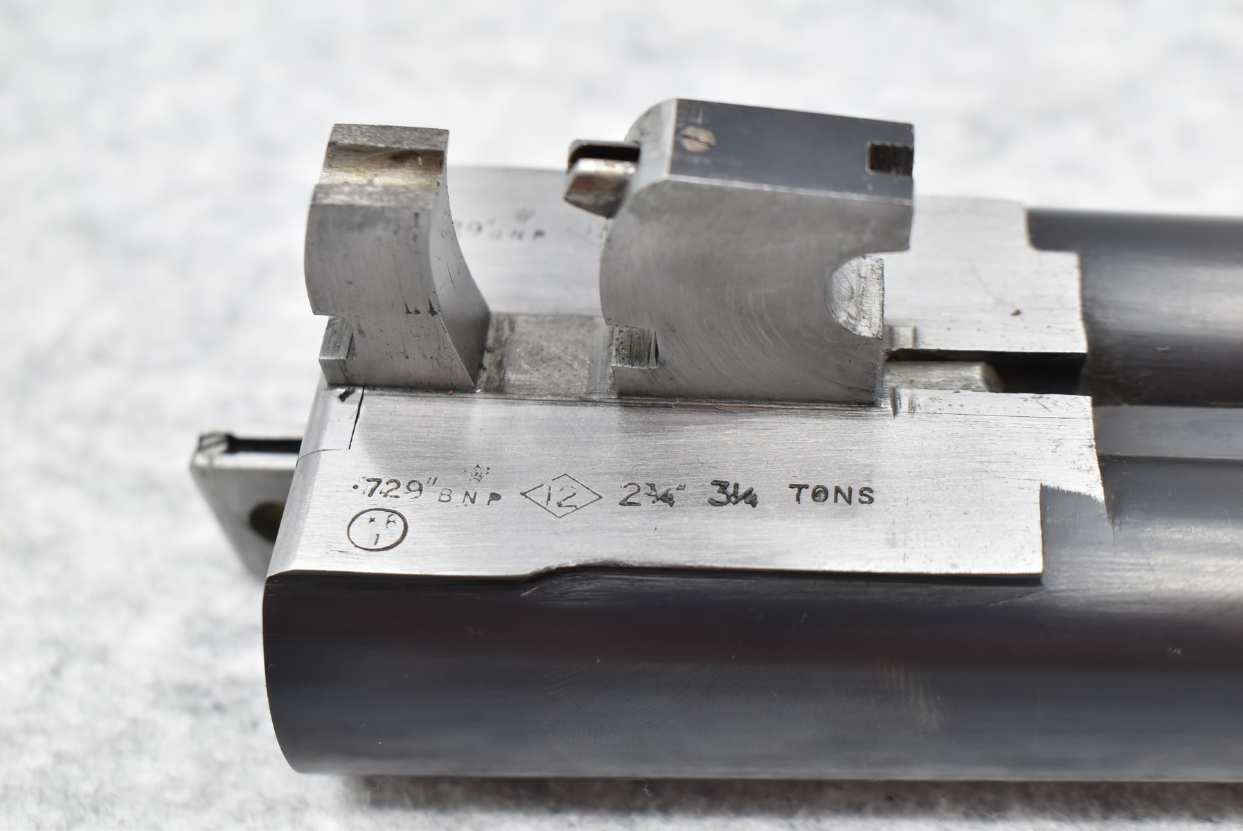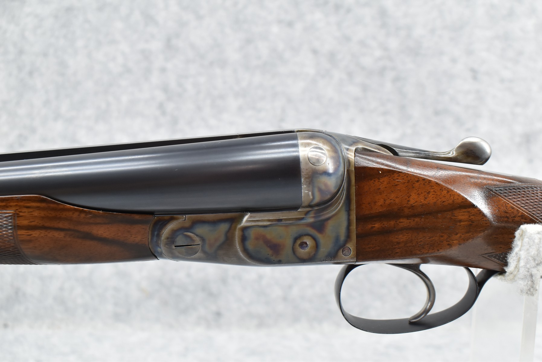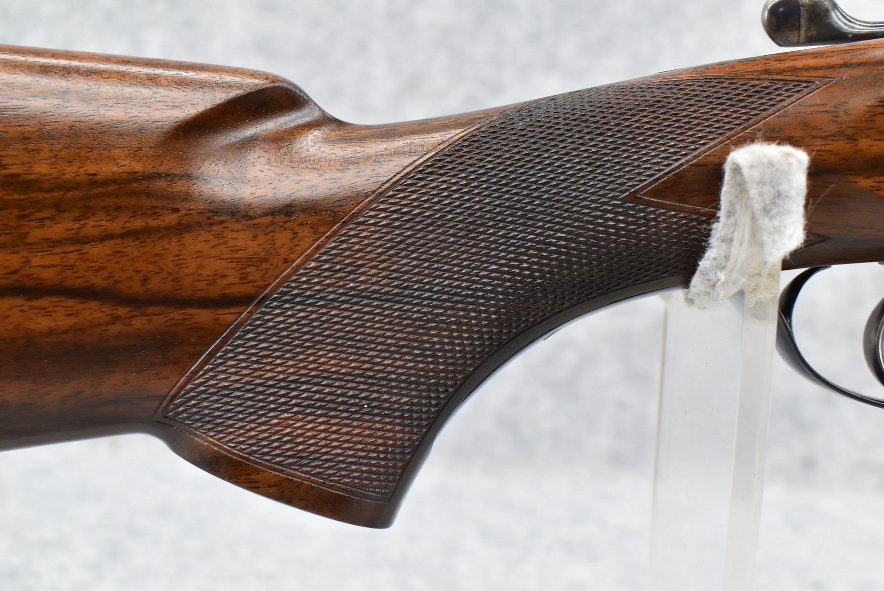 187R. W.W. Greener – 12 Bore Two-Barrel Set Double Barrel Shotgun w/Extractors – 1st Set of Barrels are 30” Full & Full Choked – 2nd Set of Barrels are 30” & Have Been Choked w/Interchangeable Chokes by Briley – Gun is Currently 2 ¾” From 2 ½” – No Safety Gun w/A Jurjevic Single Non Selective Trigger – An Anson Frontal Forend Release – Gun Has Been Professionally Restock w/A Fine Checkered Capped Pistol Grip Wood Stock w/Beavertail Forearm, Professionally Re-Blued & Re-Case Colored to As New Condition – w/Excellent Bores – Stock Dimensions of 14 3/8” x 1 9/16” x 1 5/8” Over a 7/8” Pad – Weight of 8lbs. 5oz