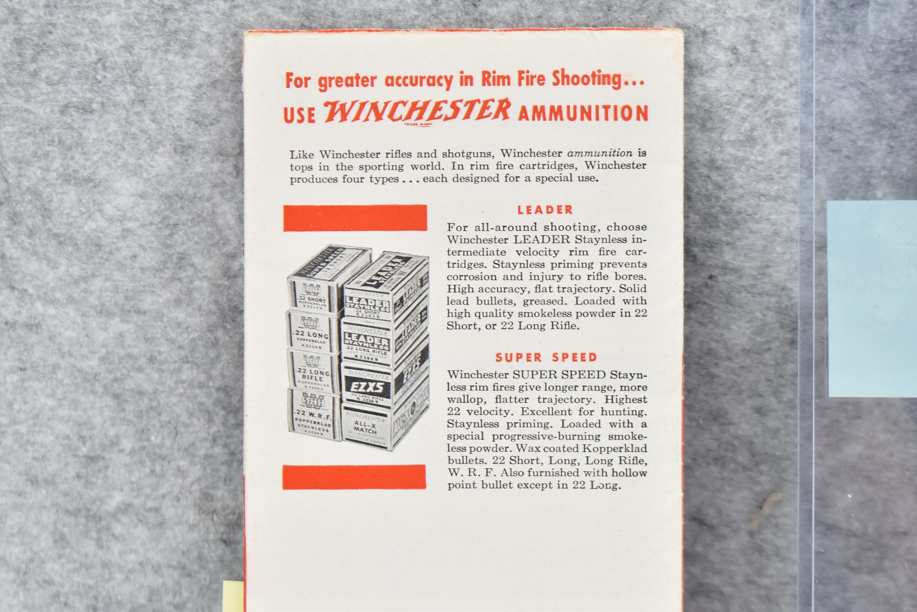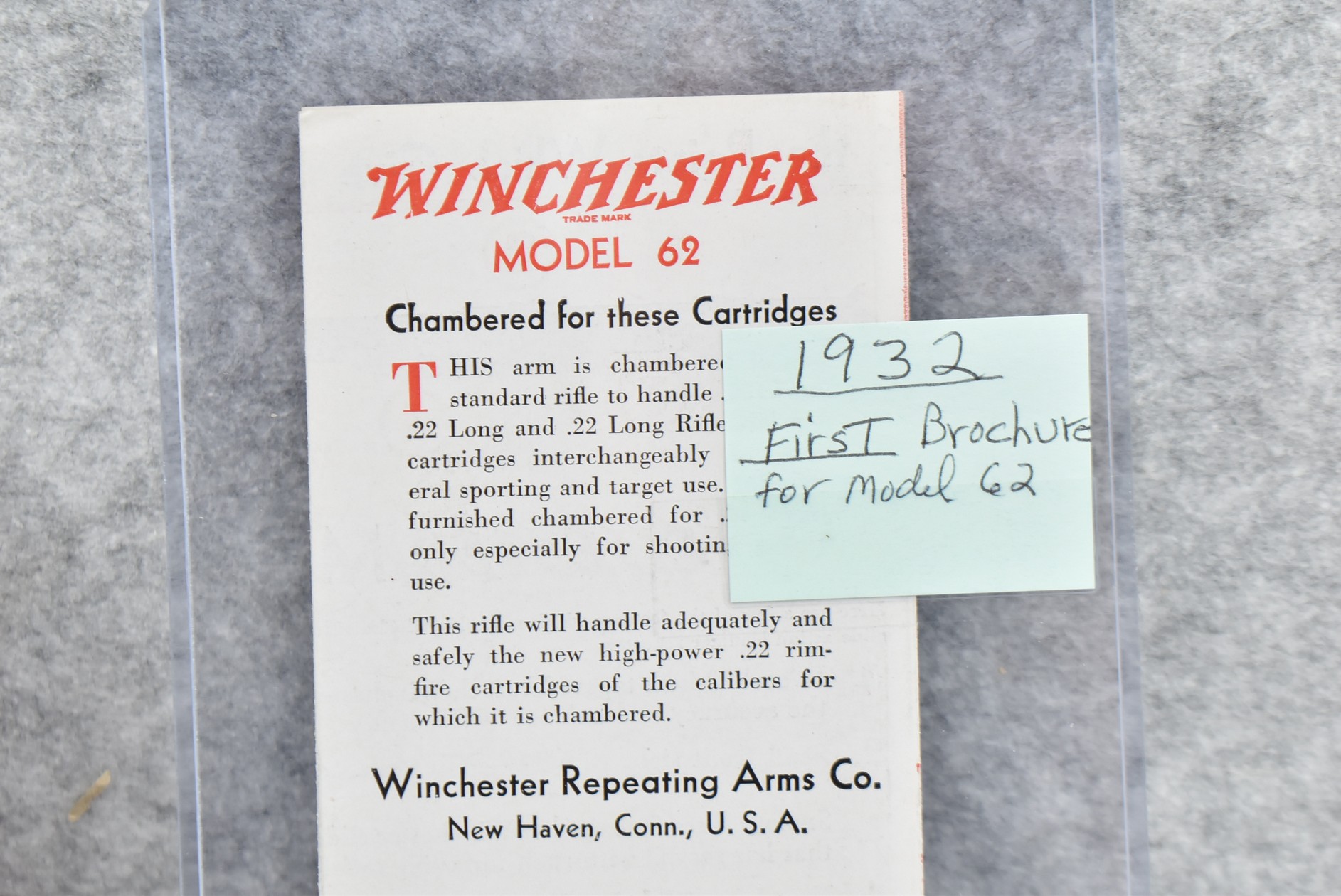 190. Pair of Winchester Brochures: 1) 22 Cal. Rifles Advertising Brochure. 2) Model 62 Advertising Brochure