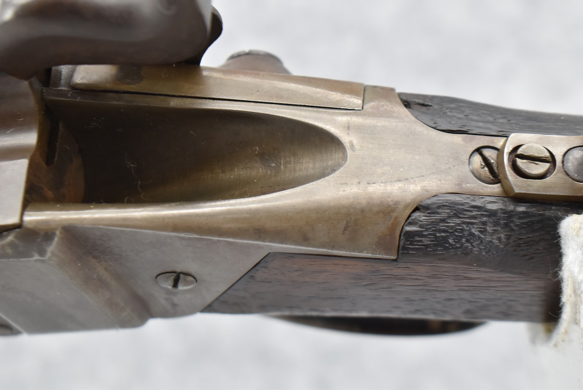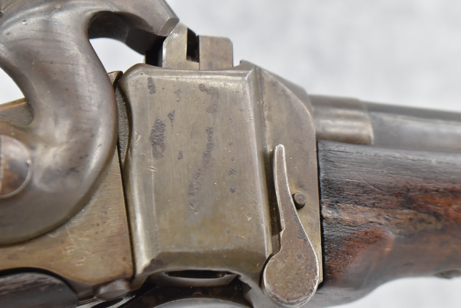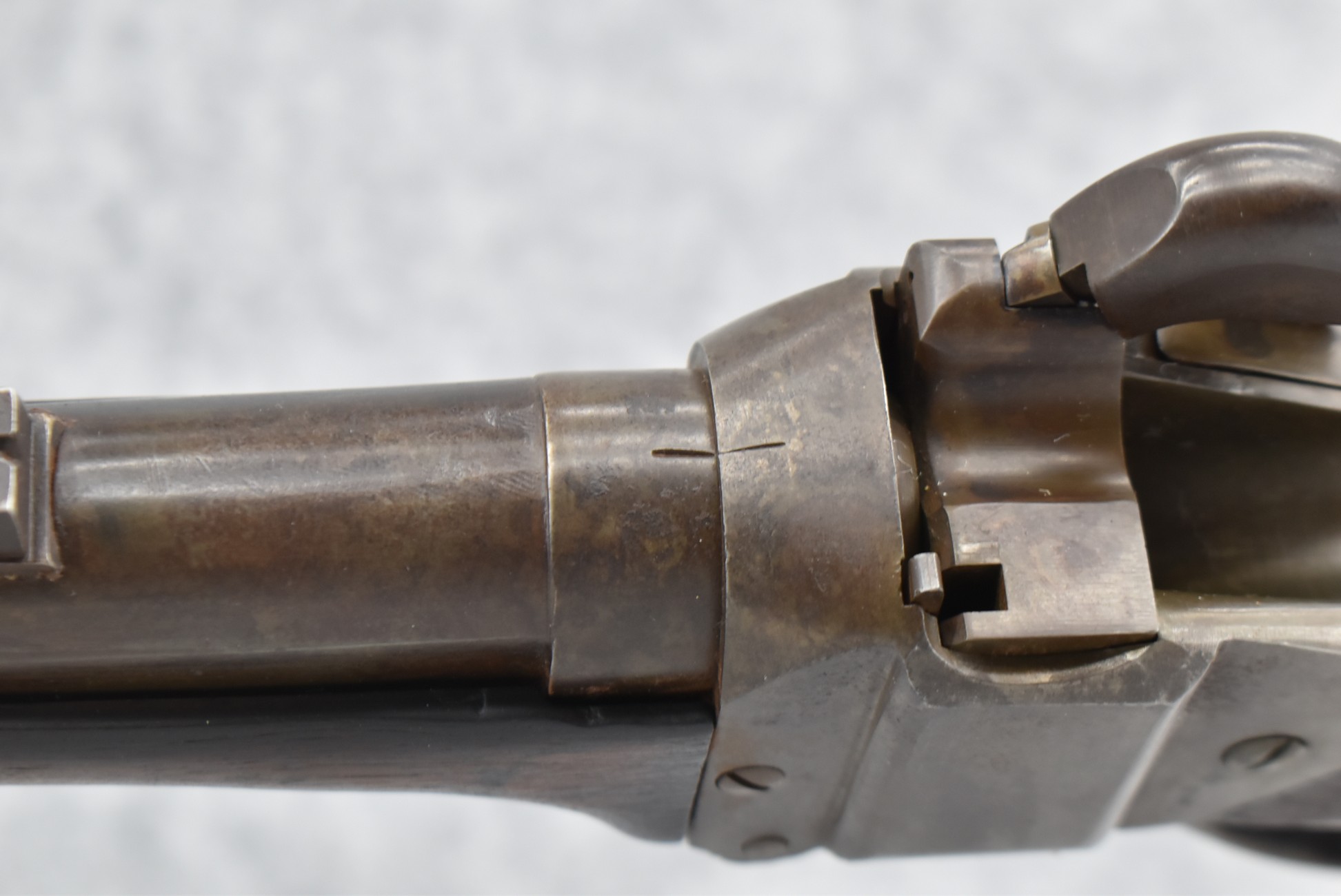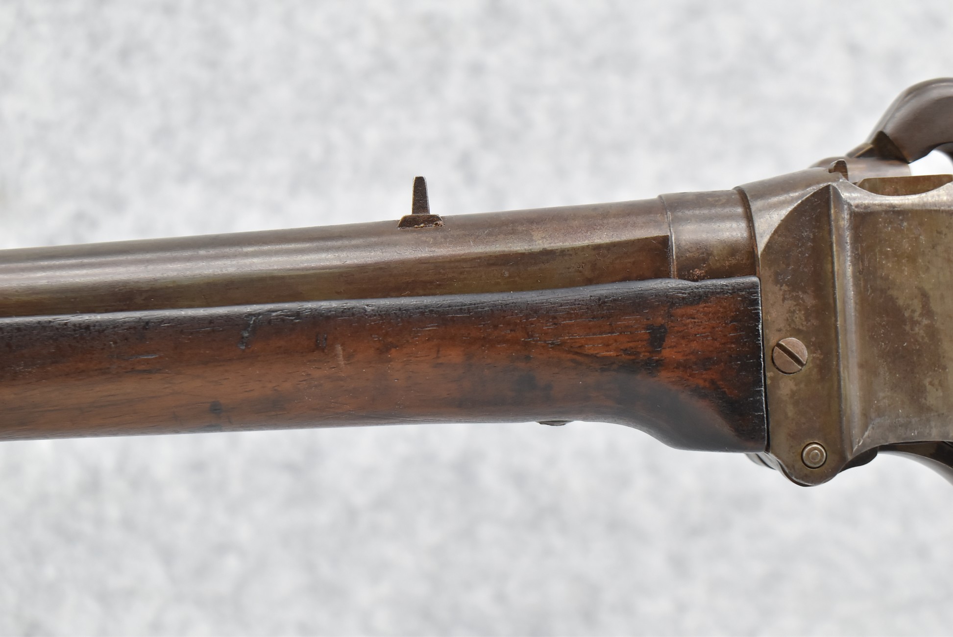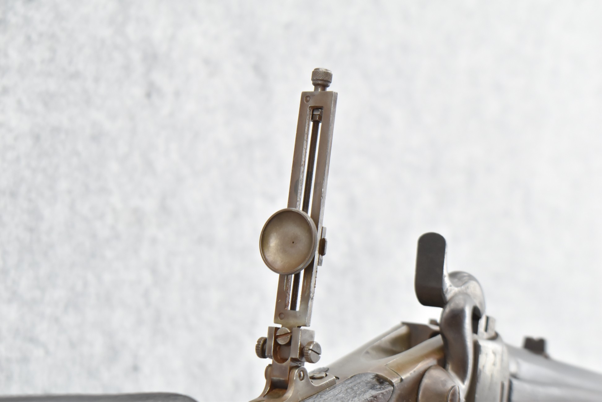 194. C. Sharps – Converted to Sporting Rifle – 50 Cal. – w/28” Round Barrel w/Sporting Front & Fixed Rear Sights – Barrel is Marked “U.S. Sharps Rifle Co.” & Has Been Rifled Sleeved – w/Straight Grip Checkered Wood Butt Stock w/Metal Butt Plate & Longer Then Standard Wood Forearm Held on by 2 Screw – w/Very Nice Long Range Veneer Fine Adj. Large Disc Tang Sight – Lock Marked “C. Sharps” “PAT Oct. 5th 1852”