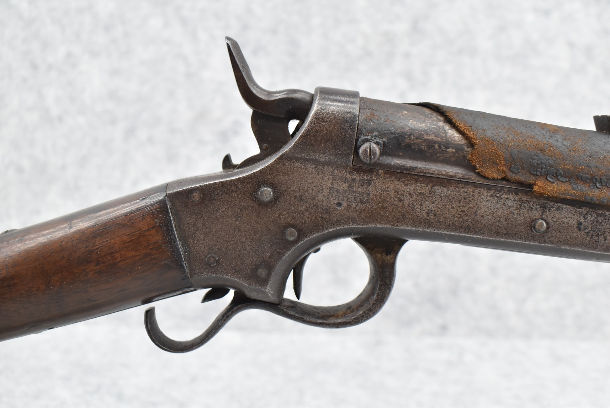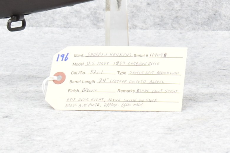 196. Sharps & Hankins – Mod. U.S. Navy 1859 Carbine – 52 Cal. Single Shot Breech Load Rifle – w/24” Leather Covered Barrel w/Blade Front & Adj. Rear Sights – Brown Finish – w/Wood Stock w/Brass Butt Plate – w/Sling Swivel – Approx. 6,660 Mfg.