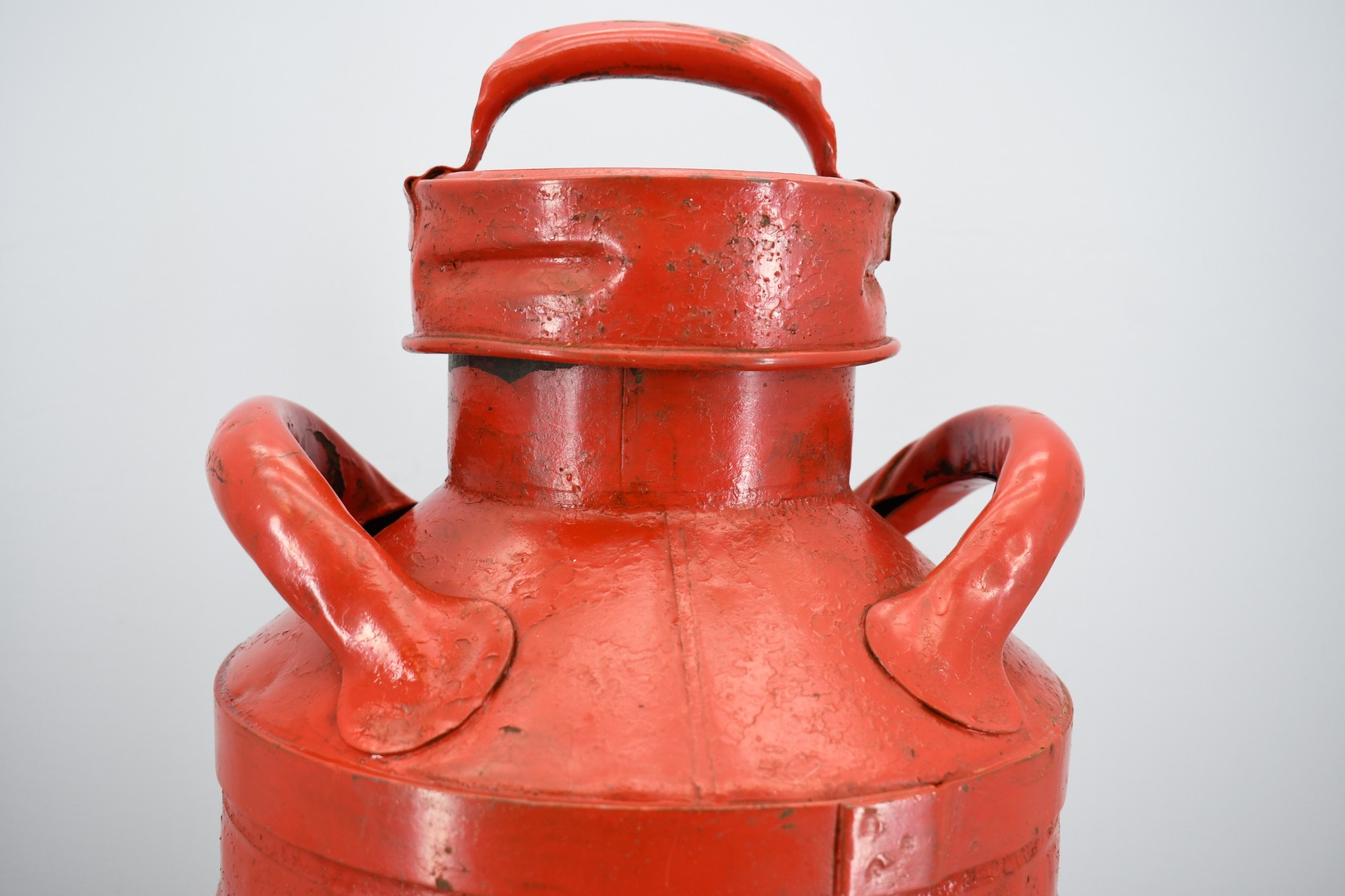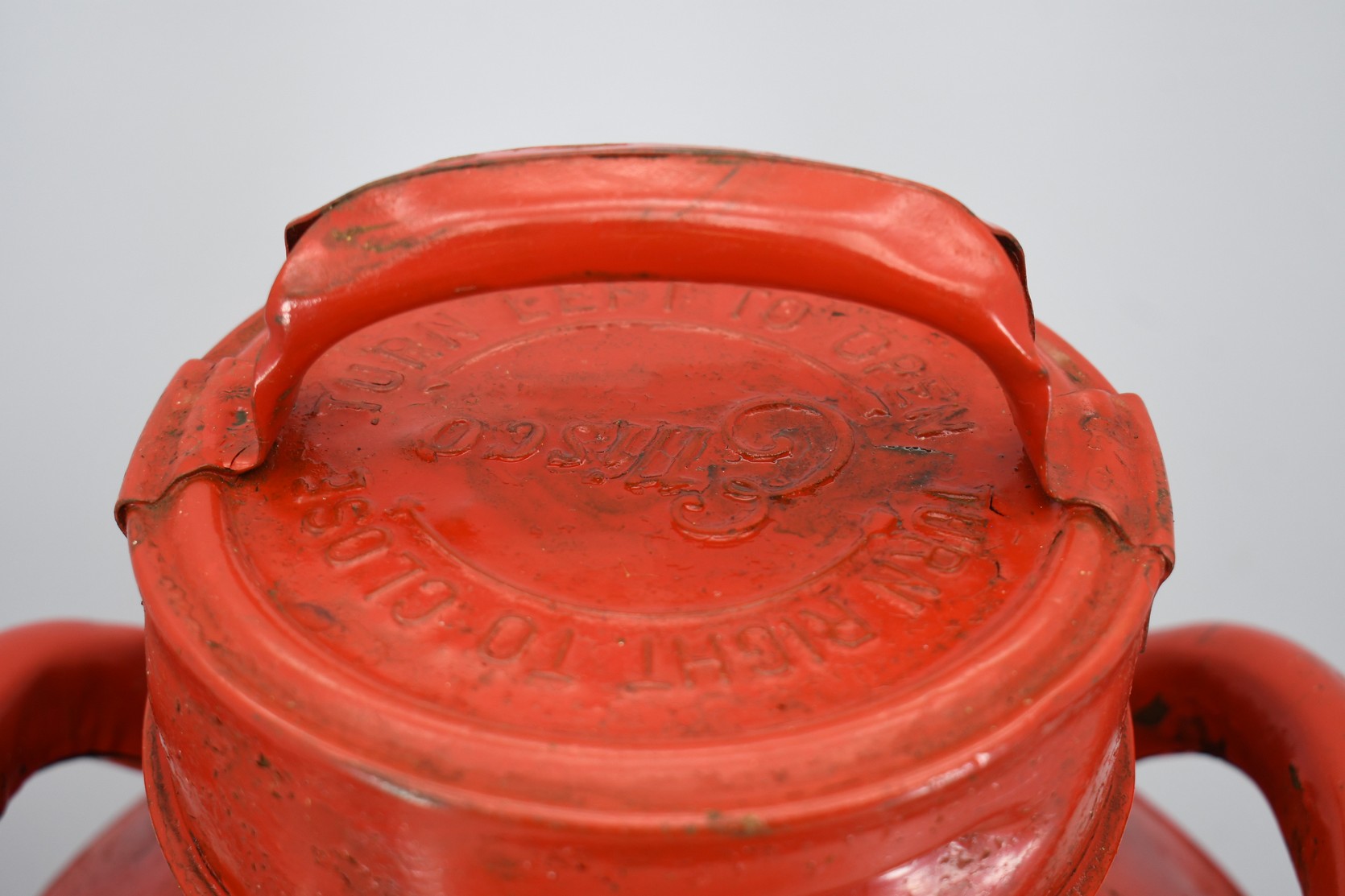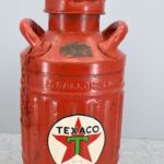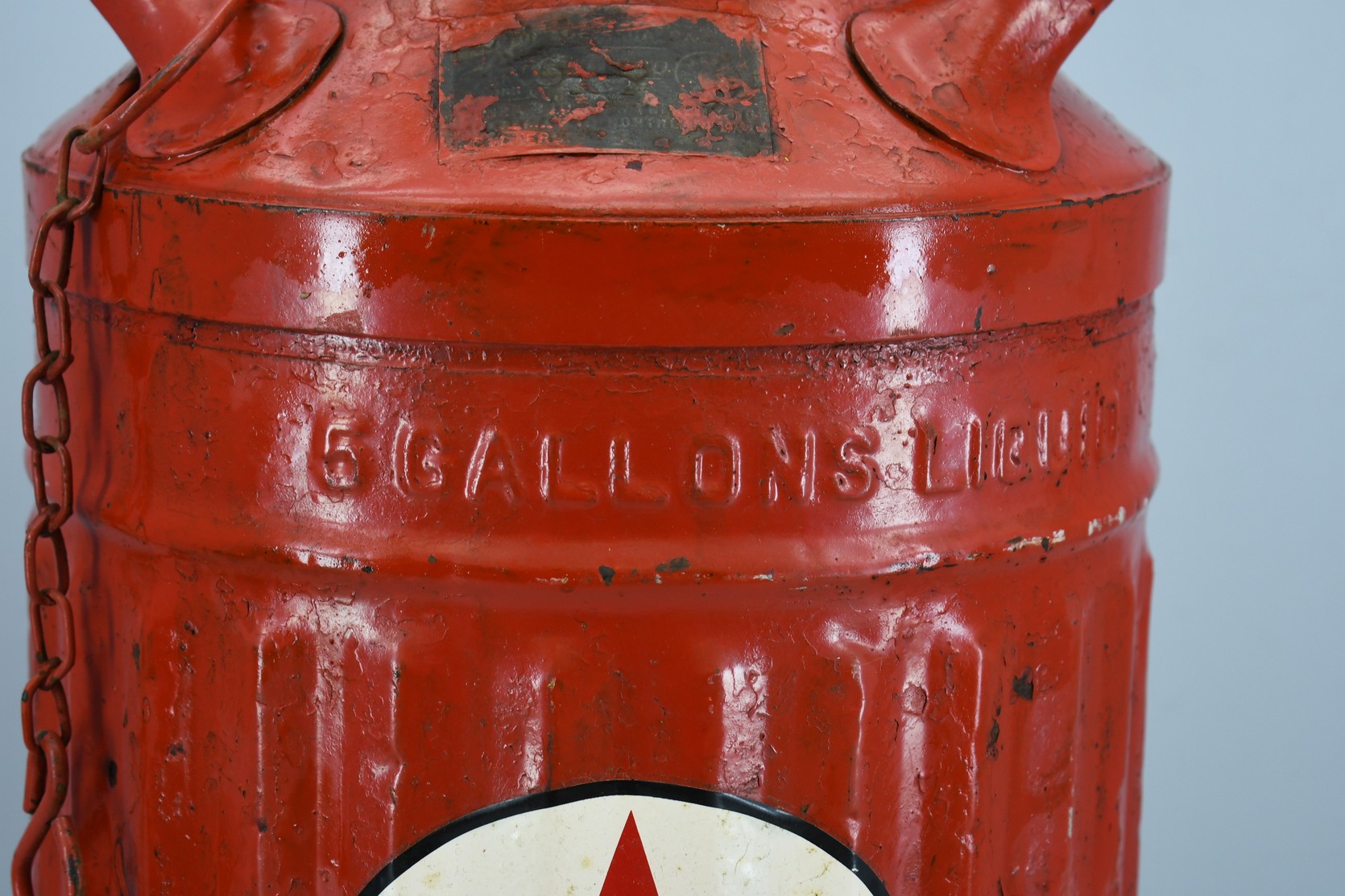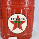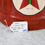197. EMSCO 5-Gallon Liquid Tin w/Screw Top Lid – Tin has a Texaco Sticker on It – Brass Plate is Present