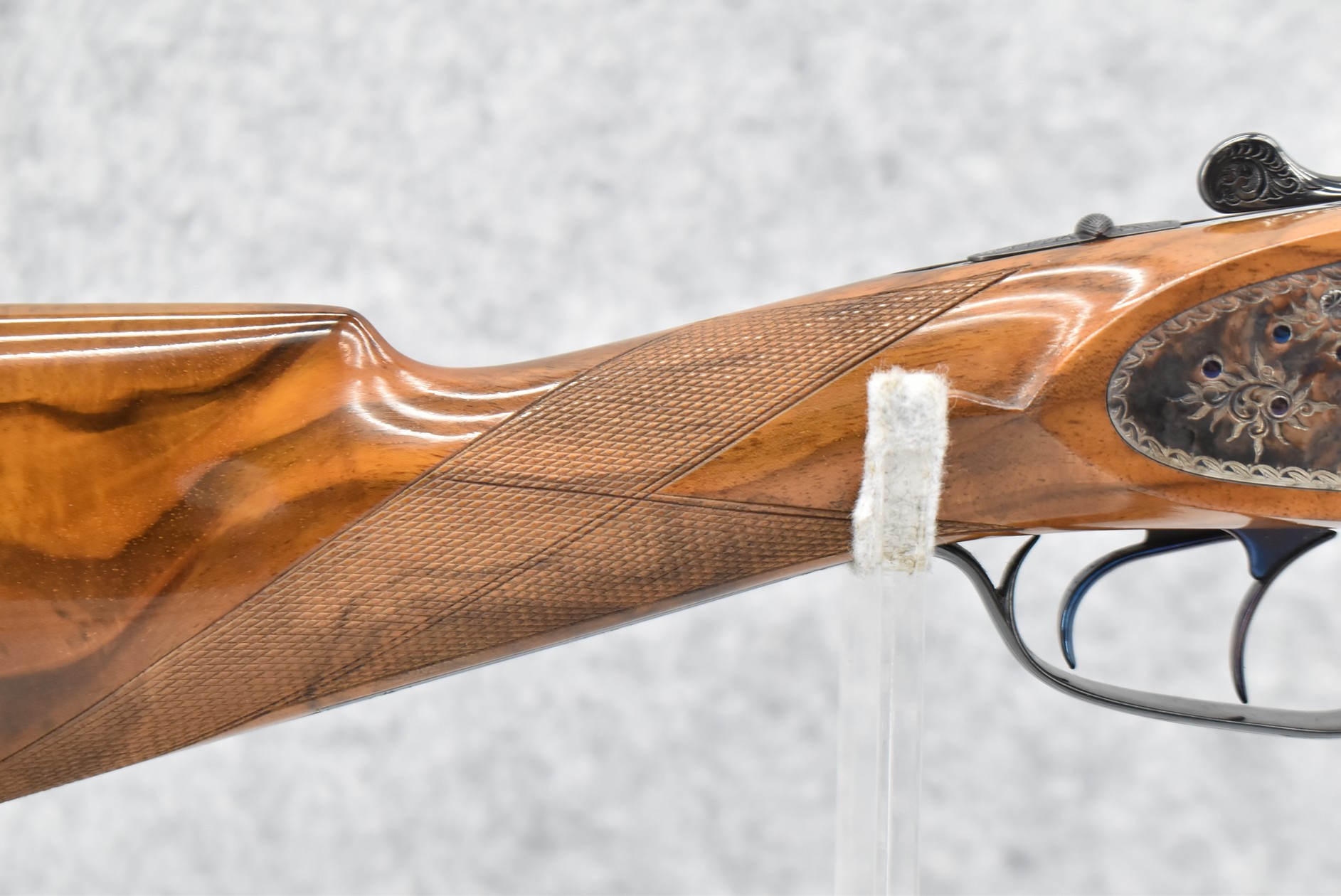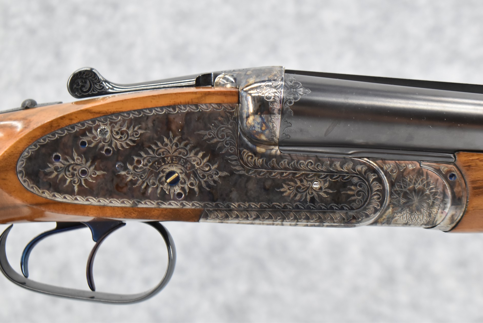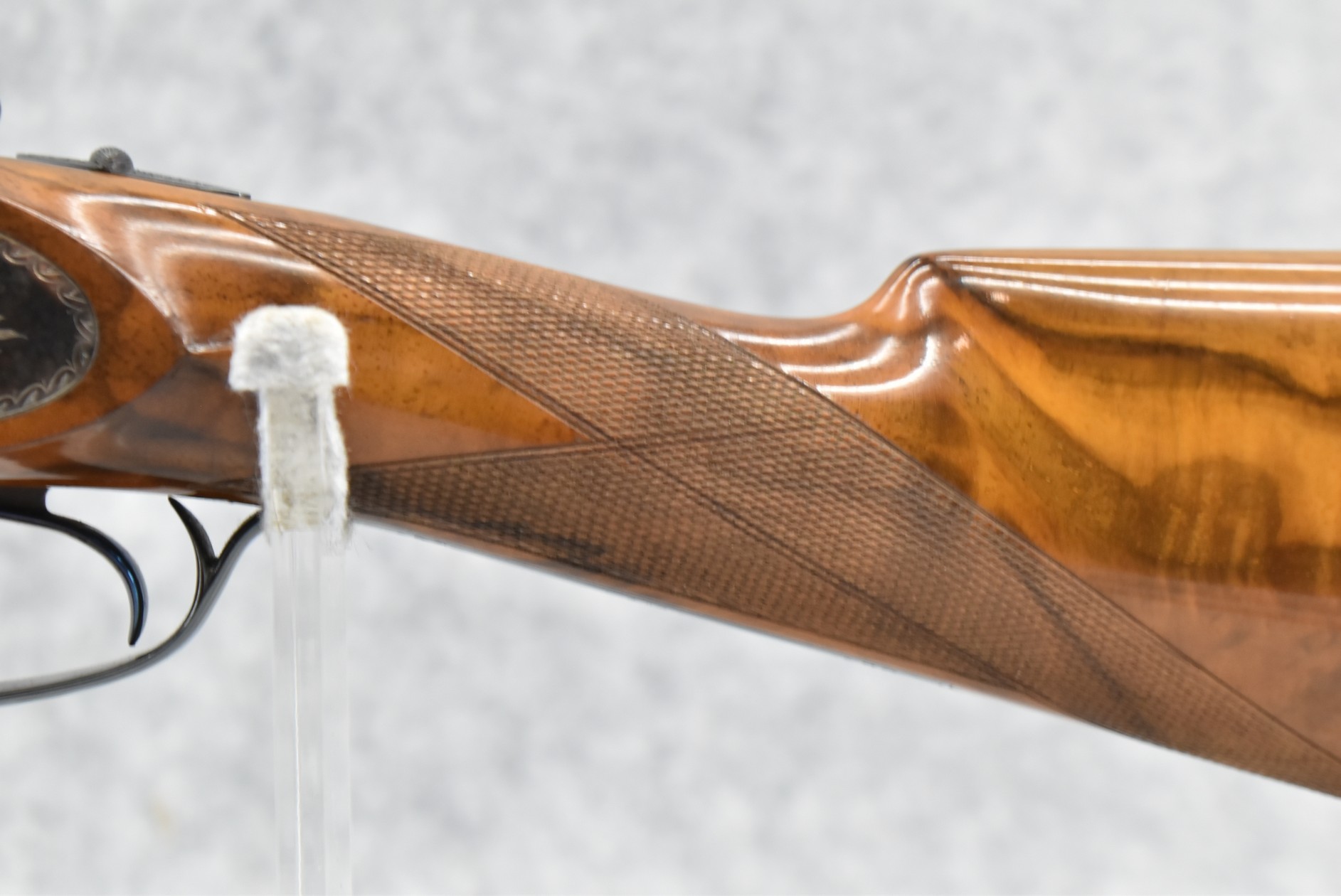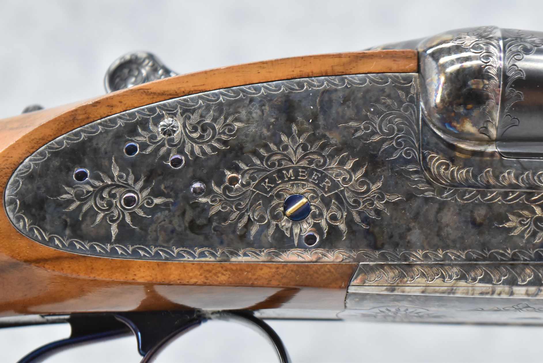 1R. Kimber – Mod. Valier Grade II – 20ga. Hammerless Double Barrel Shotgun – w/28” Mod. & IC Choked, Solid Rib Barrels w/Front Bead Sight – Blued Finish w/Beautifully Engraved Case Hardened Receiver – w/Deluxe Checkered Highly Figured Turkish Walnut Straight Grip Wood Stocks w/Checkered Wood Butt Plate – w/Double Triggers – w/Factory Kimber Canvas/Leather Takedown Case – Mfg. 2005-2008