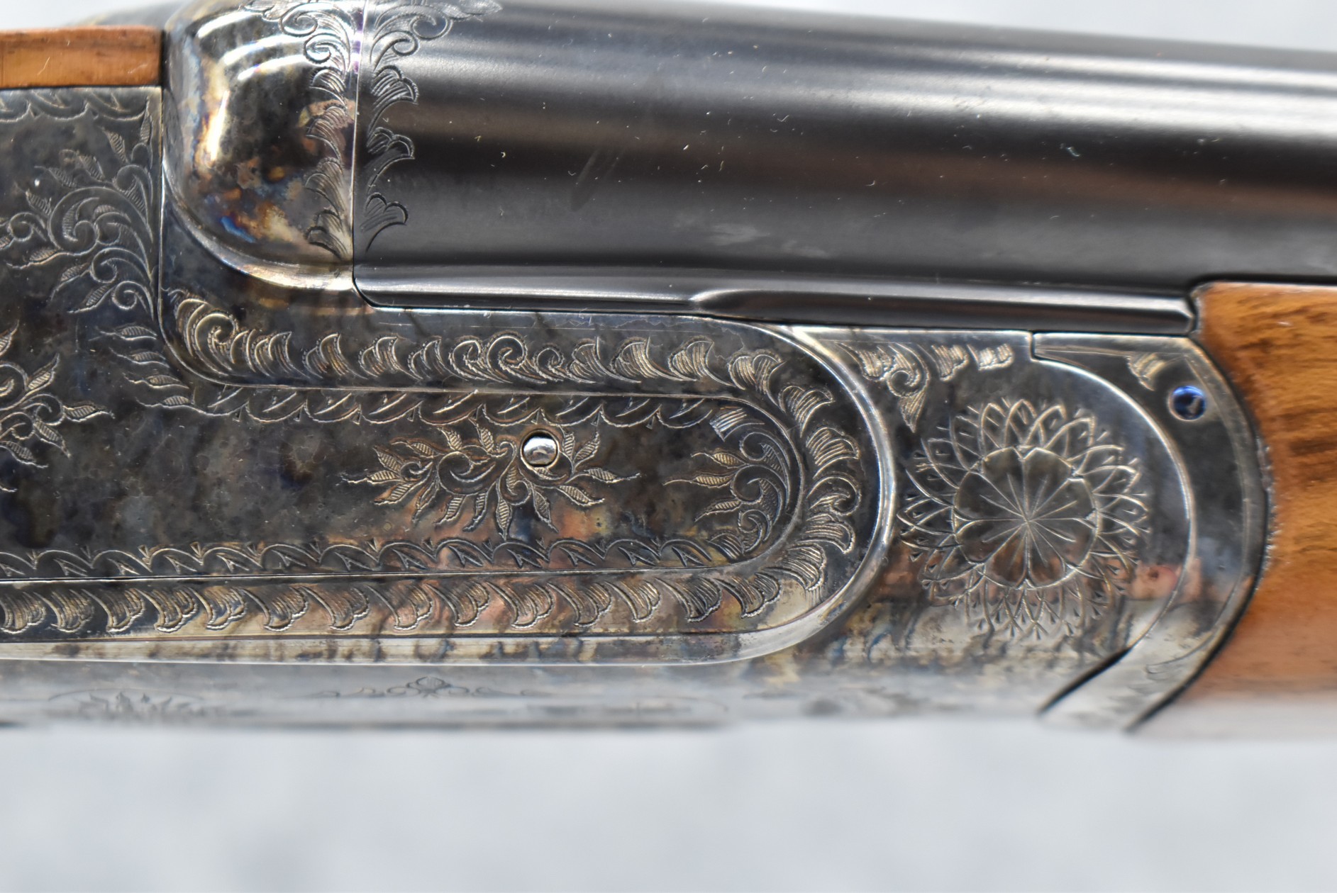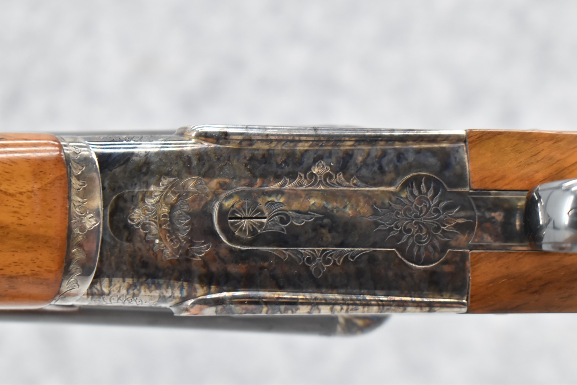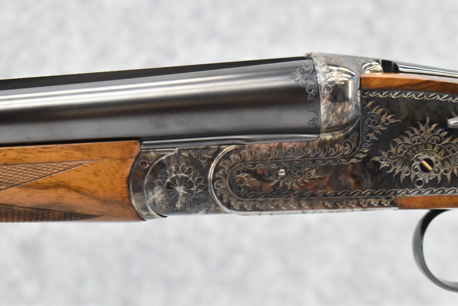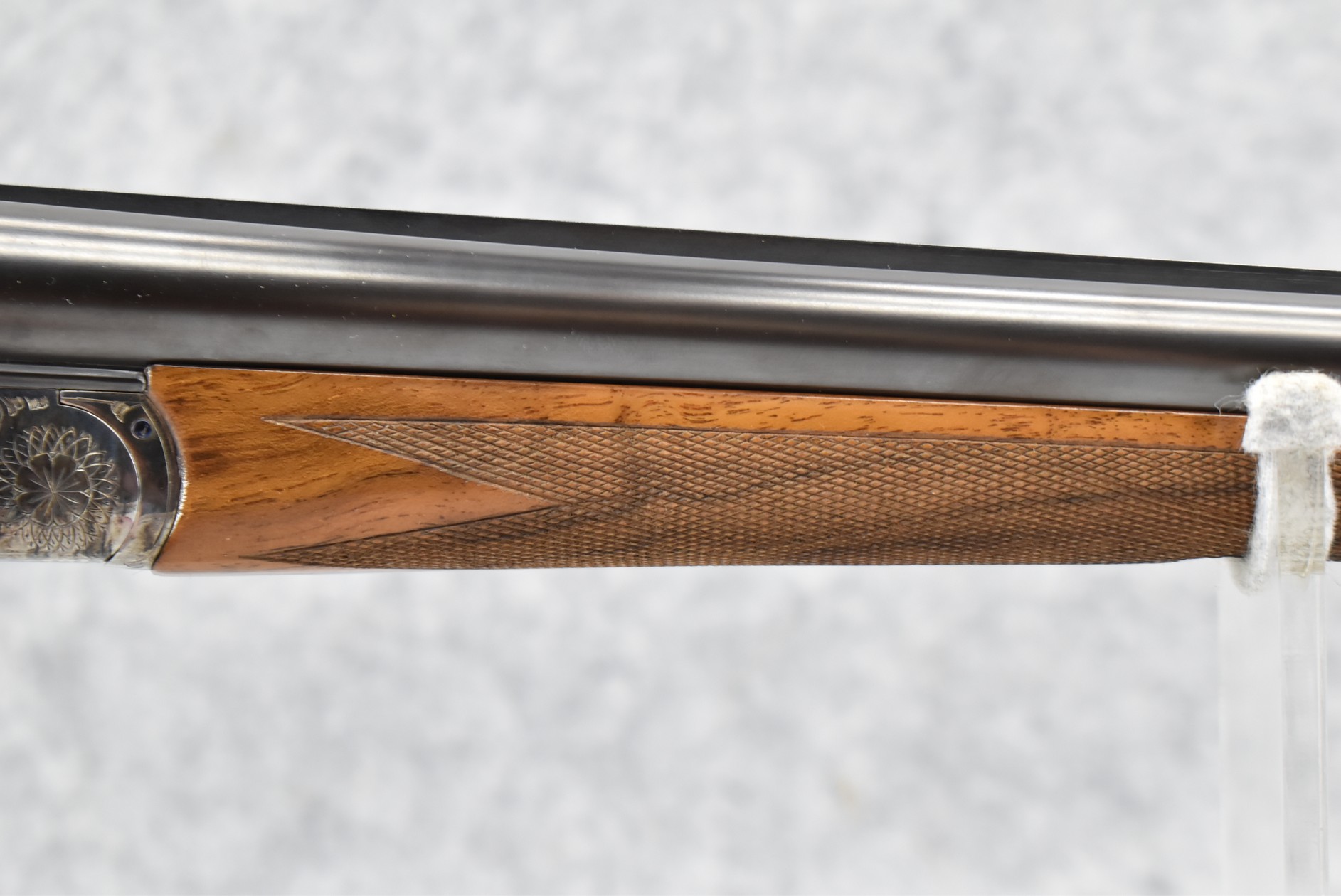 1R. Kimber – Mod. Valier Grade II – 20ga. Hammerless Double Barrel Shotgun – w/28” Mod. & IC Choked, Solid Rib Barrels w/Front Bead Sight – Blued Finish w/Beautifully Engraved Case Hardened Receiver – w/Deluxe Checkered Highly Figured Turkish Walnut Straight Grip Wood Stocks w/Checkered Wood Butt Plate – w/Double Triggers – w/Factory Kimber Canvas/Leather Takedown Case – Mfg. 2005-2008