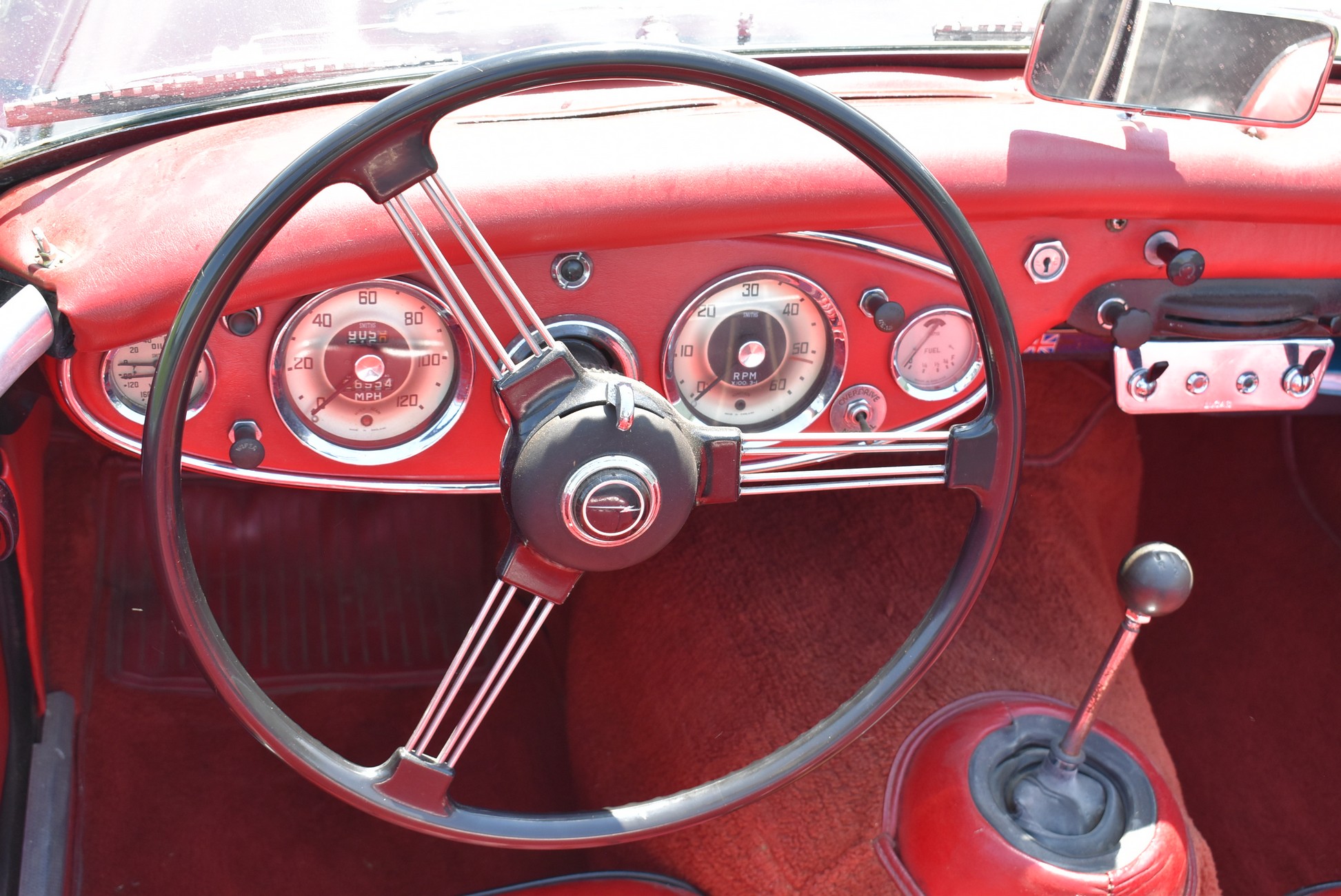 2. 1962 Austin Healey BT7 3000 Mk II Convertible – 2.9L I6 w/3 Carburetors (Tri-Carb) – 26,954 Miles Showing on the Odometer – 4spd. Manual Transmission Equipped w/Overdrive – “Center Shift”, 4-Seater – Tow Hook Installed – Black Exterior – Red Interior – Also Included is the Rare Hard Top – Vin#: HBT7L18323