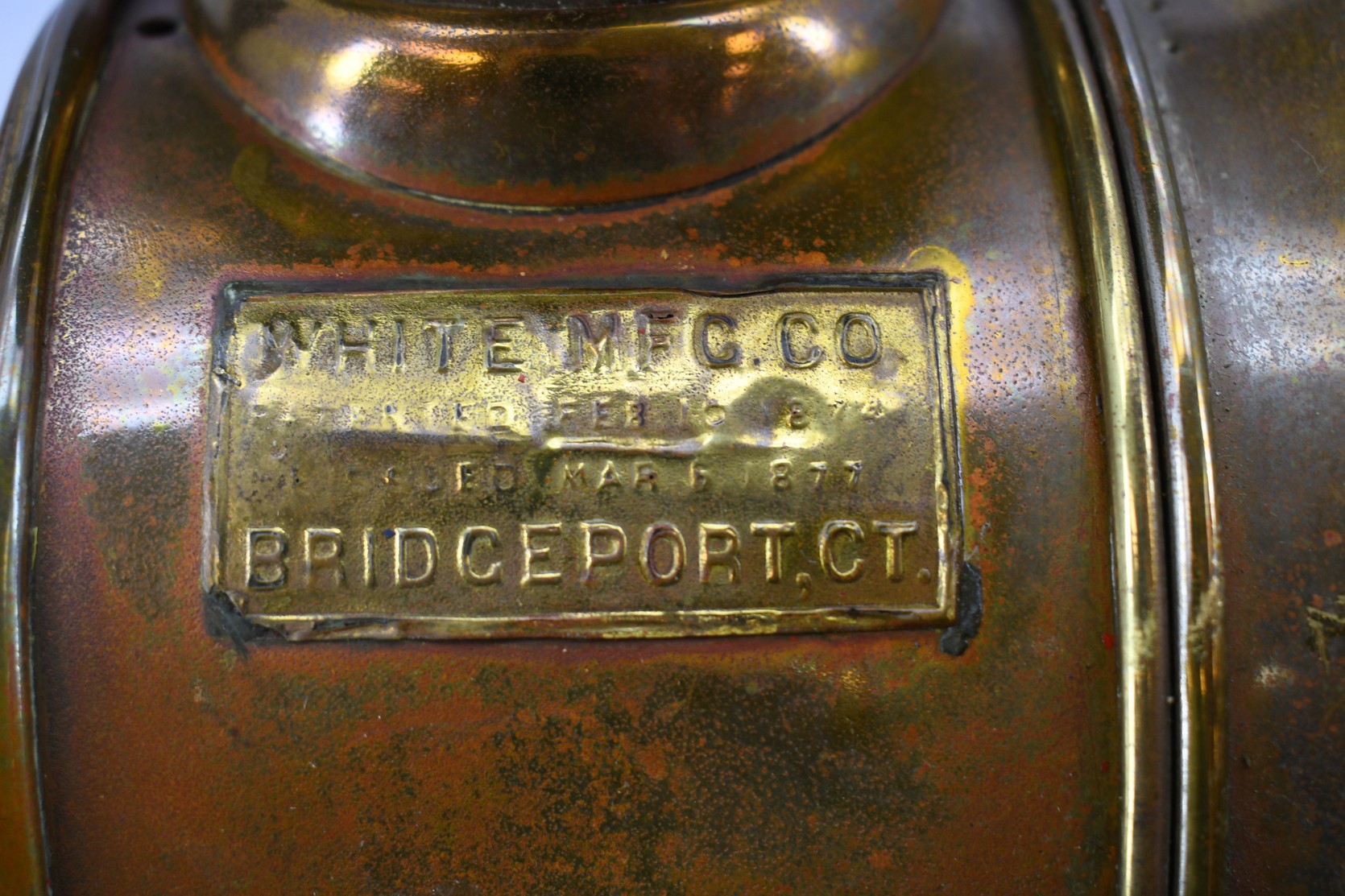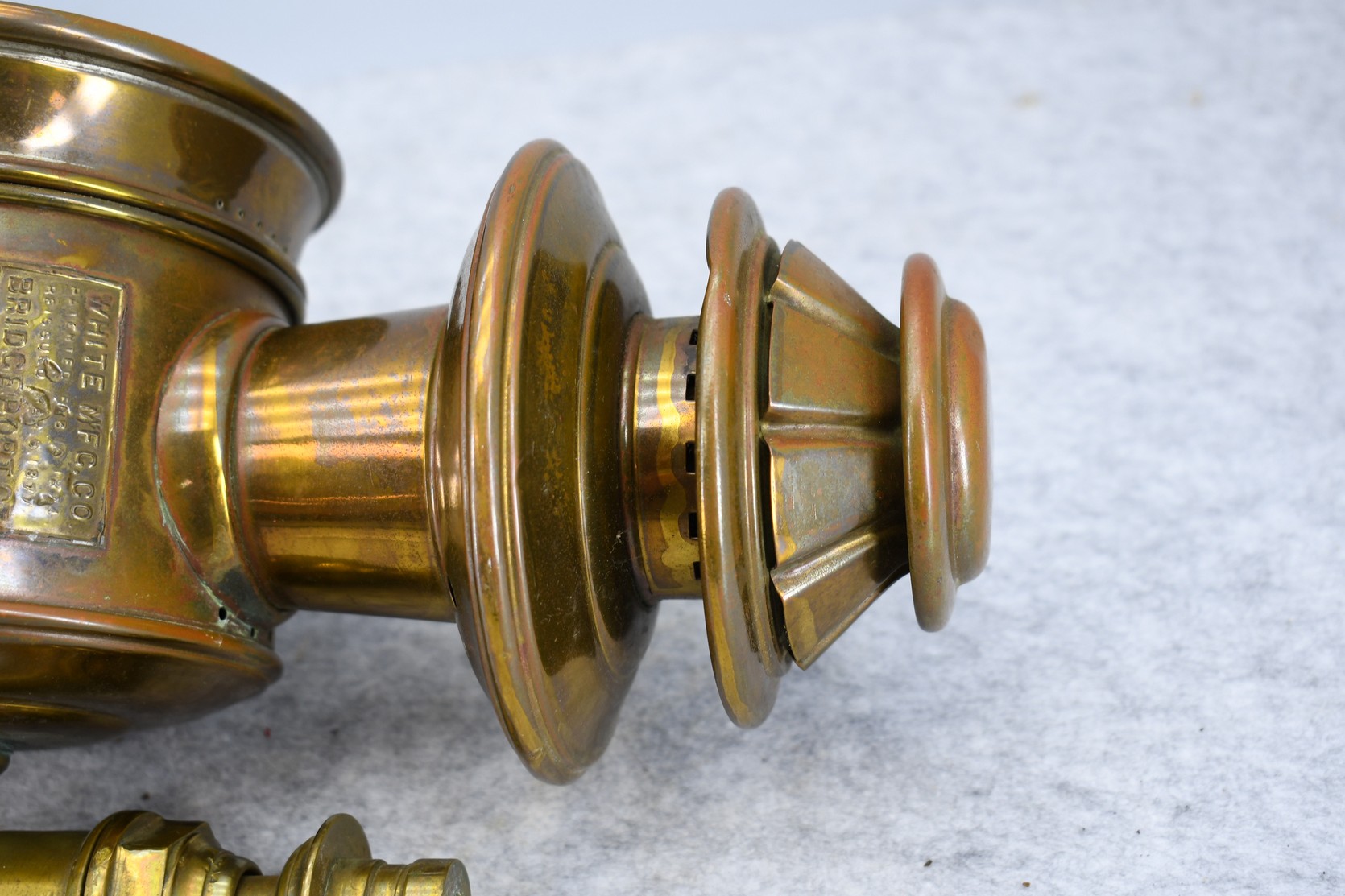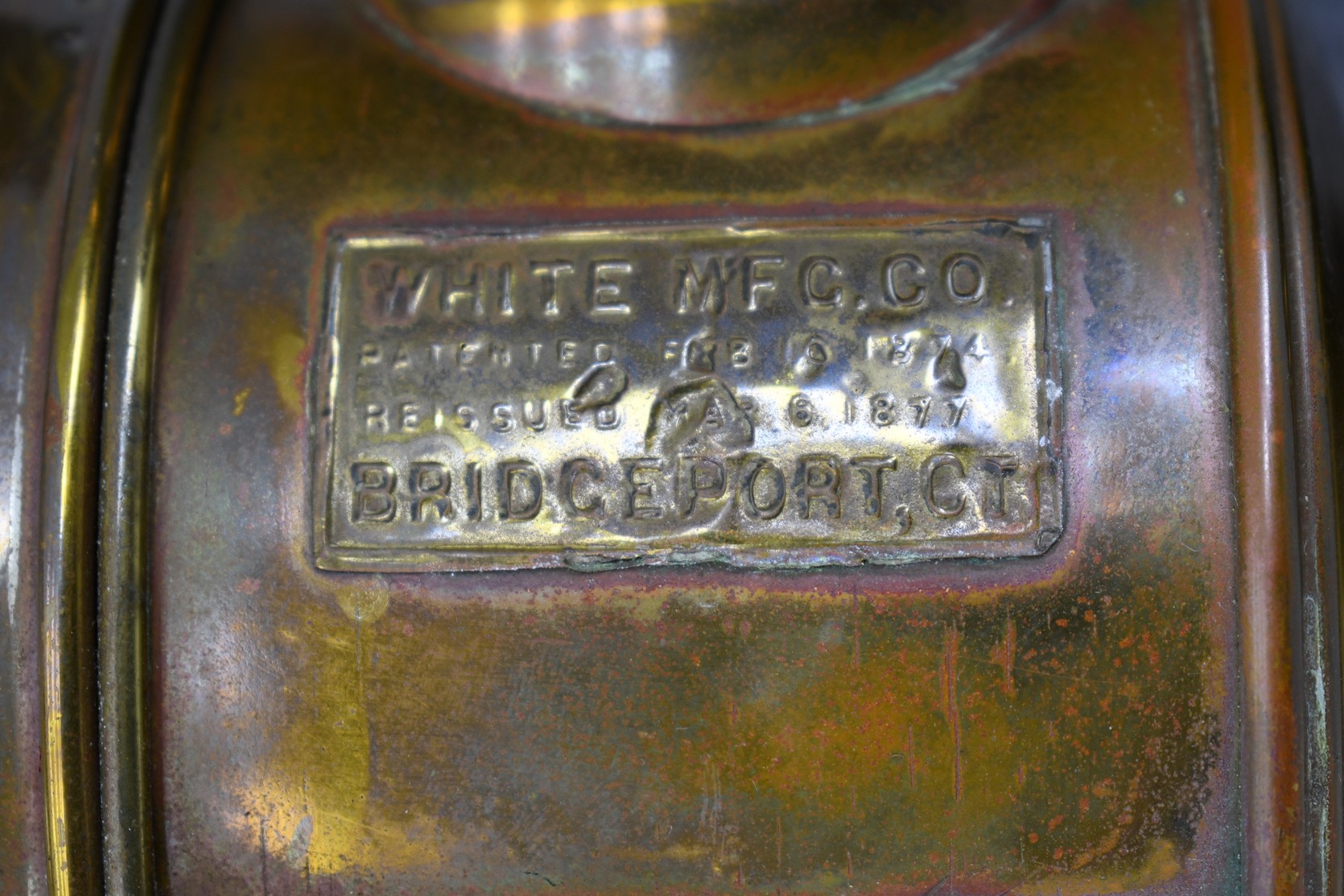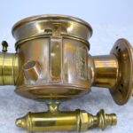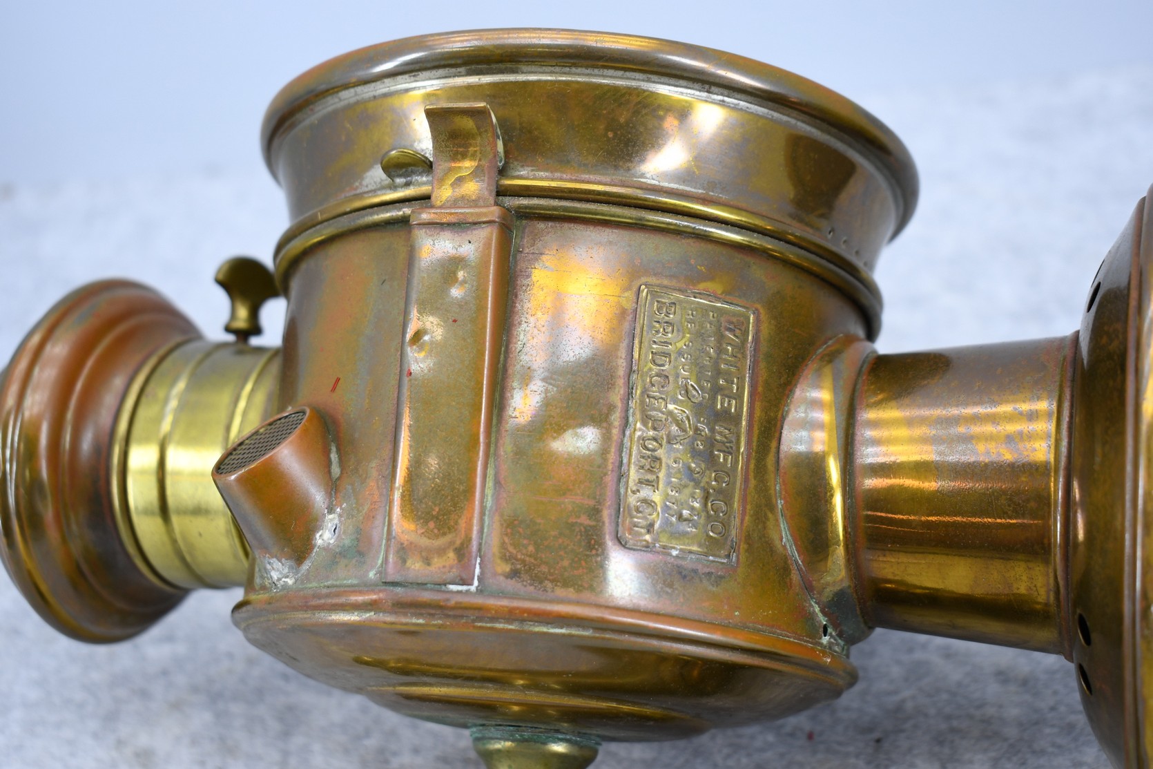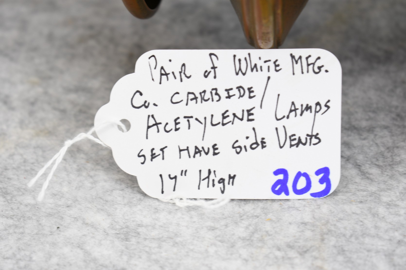 203. Pair of Brass and Copper White Manufacturing Co. Bridge Port Conn. Carbide/Acetylene Lamps – Lamps are 17” High