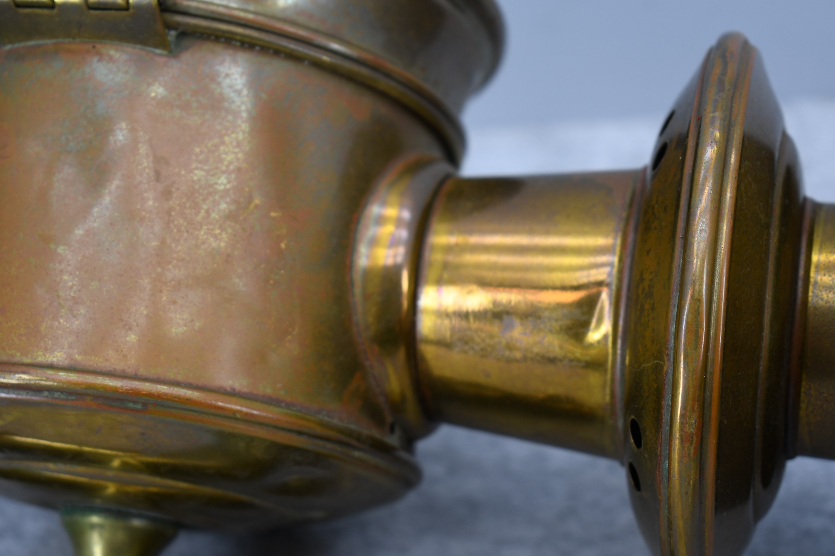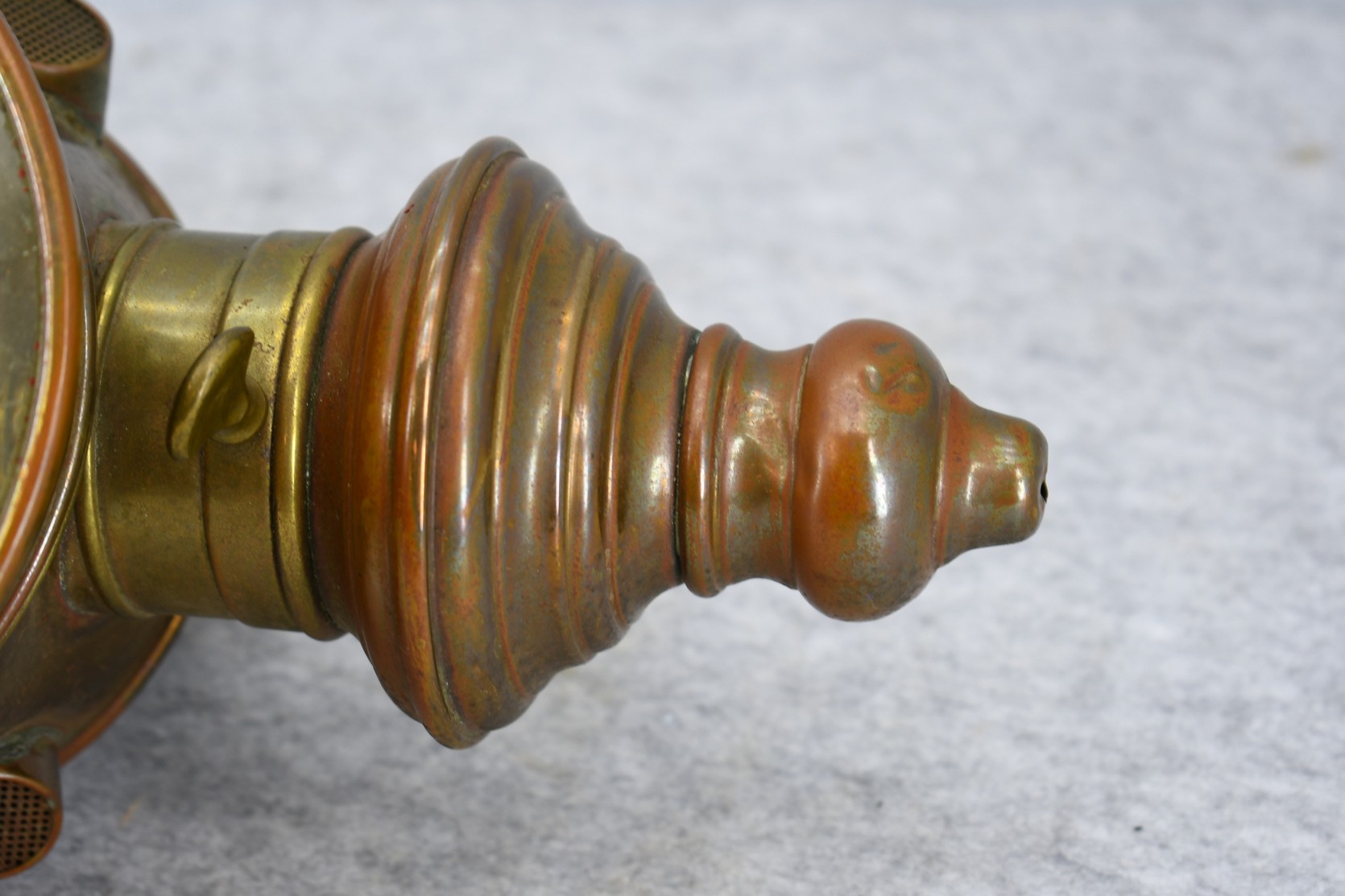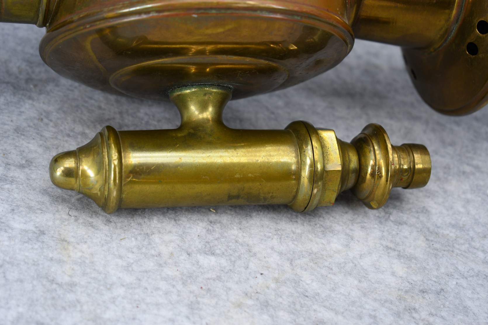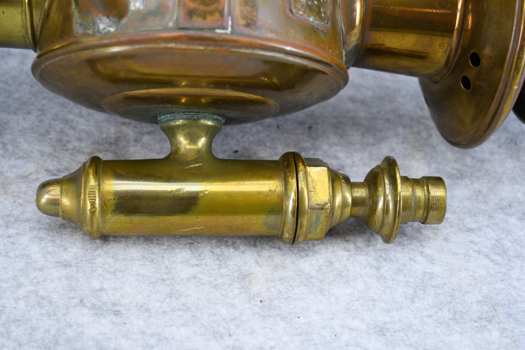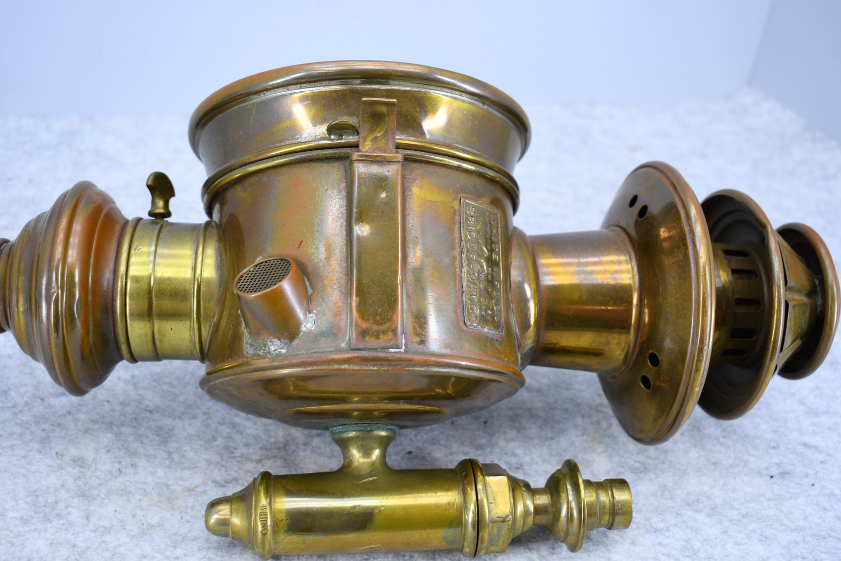 203. Pair of Brass and Copper White Manufacturing Co. Bridge Port Conn. Carbide/Acetylene Lamps – Lamps are 17” High
