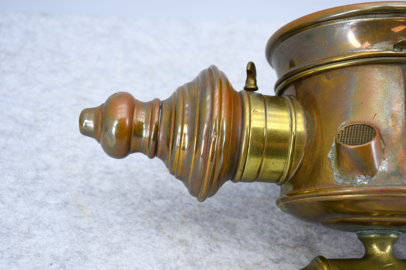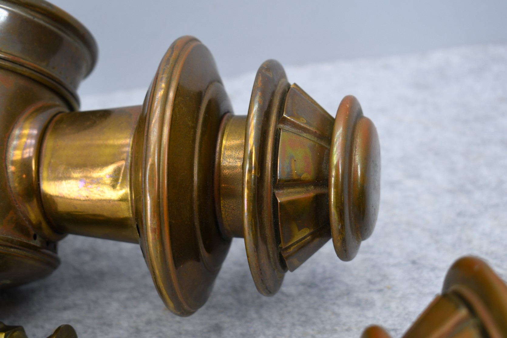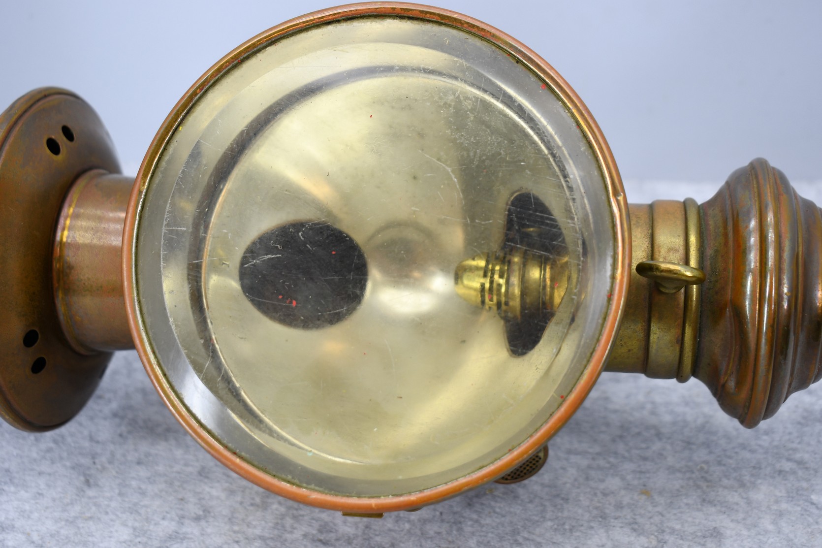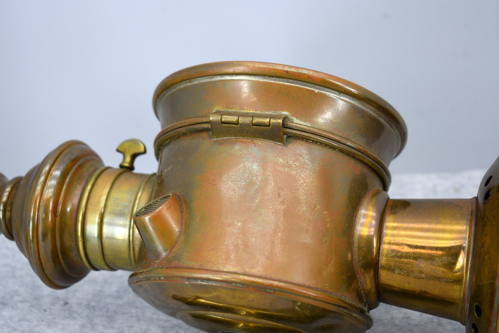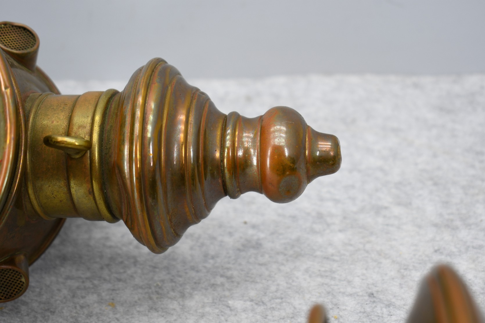 203. Pair of Brass and Copper White Manufacturing Co. Bridge Port Conn. Carbide/Acetylene Lamps – Lamps are 17” High