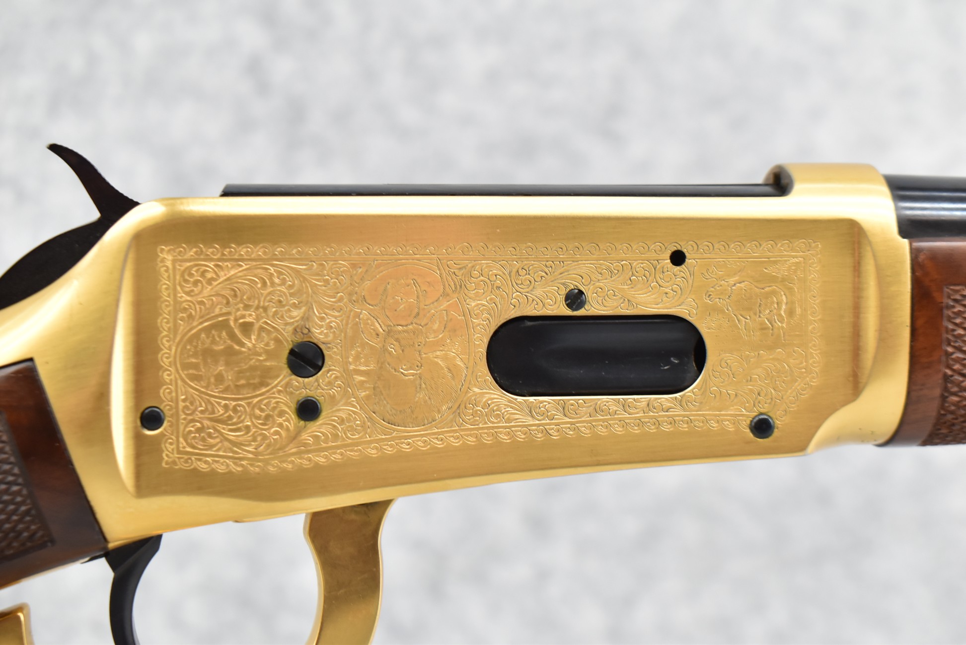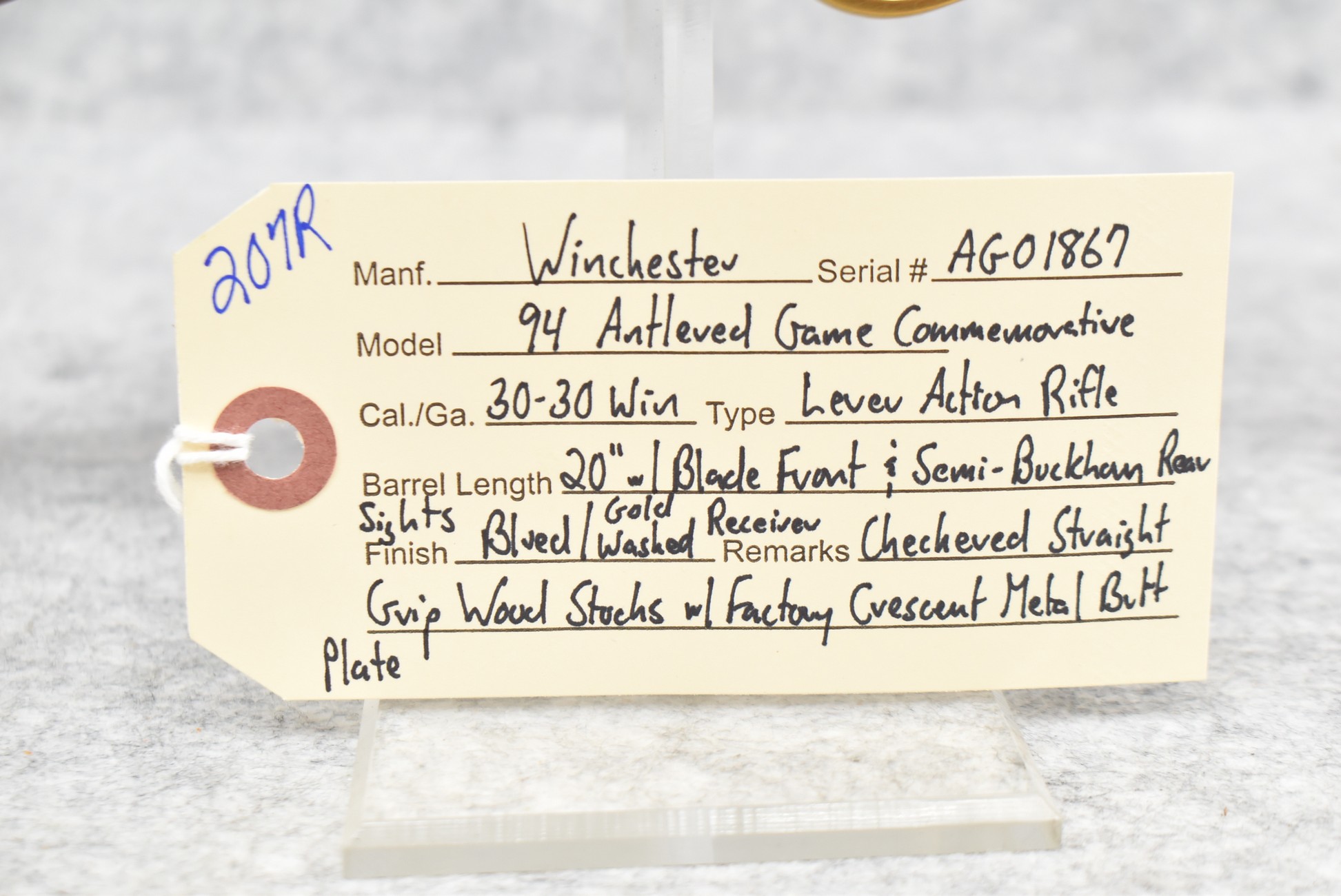207R. Winchester – Mod. 94 – Antlered Game Commemorative – 30-30 Win. Cal. Lever Action Rifle – w/20” Barrel w/Blade Front & Semi-Buckhorn Rear Sights – Blued Finish w/Engraved Gold Washed Receiver – w/Checkered Straight Grip Wood Stocks w/Factory Crescent Metal Butt Plate