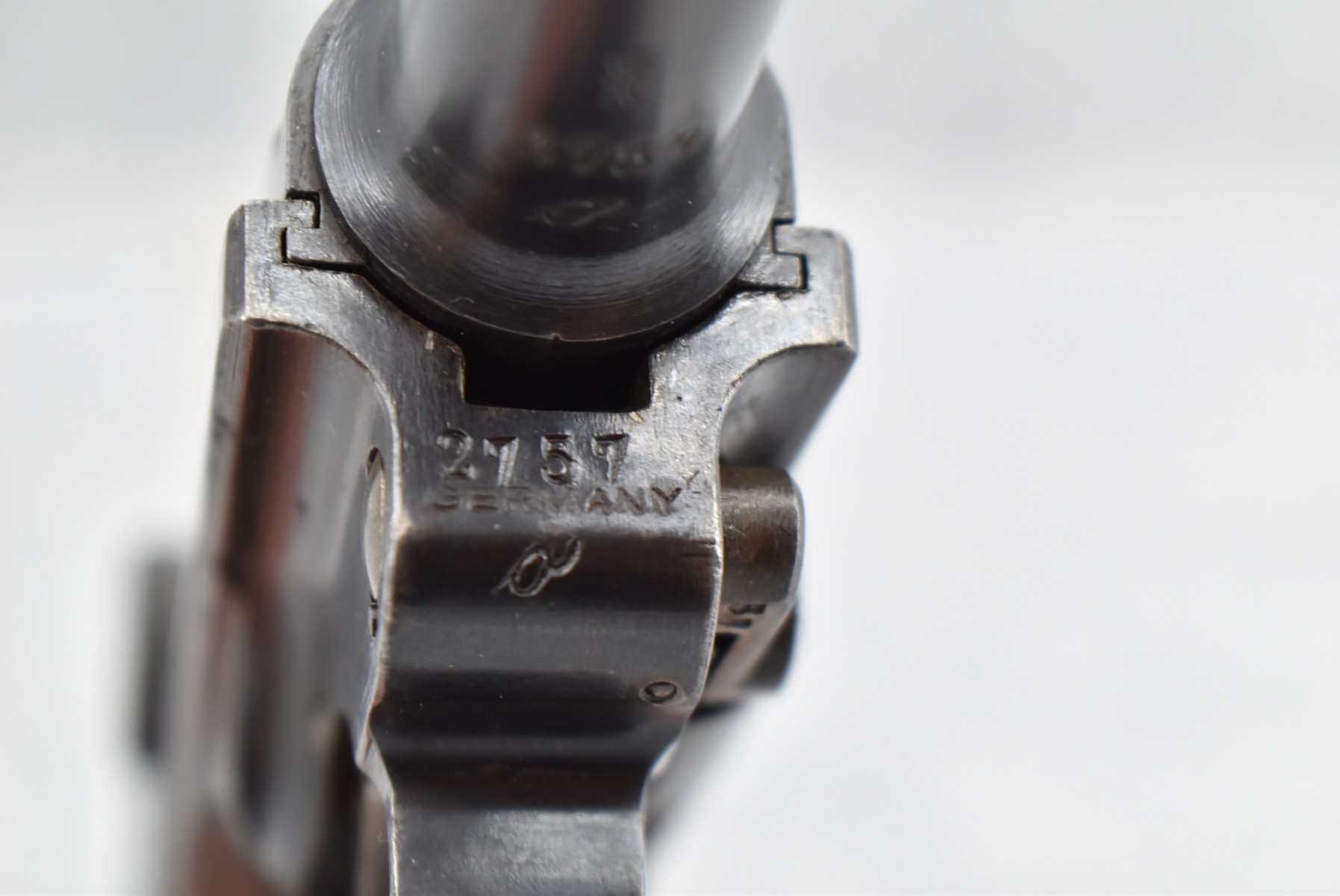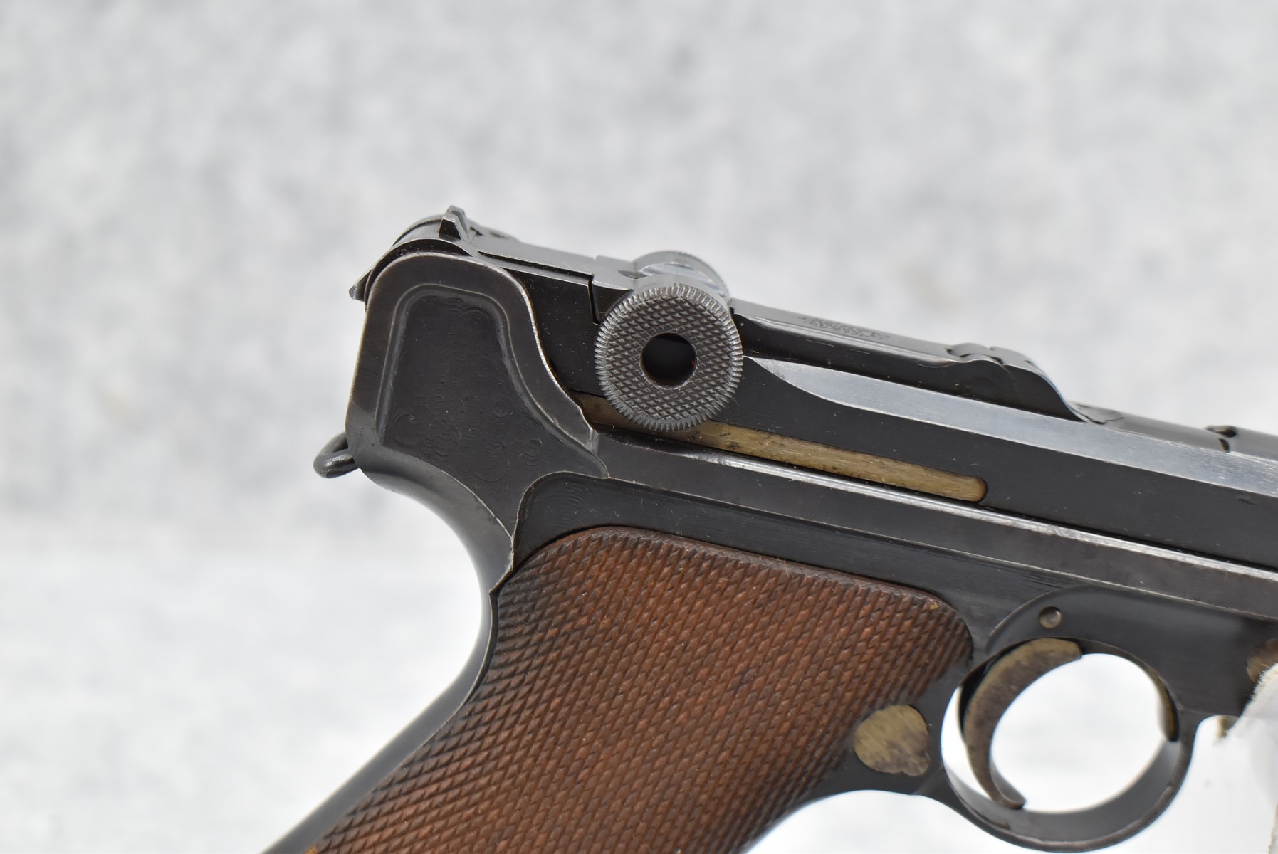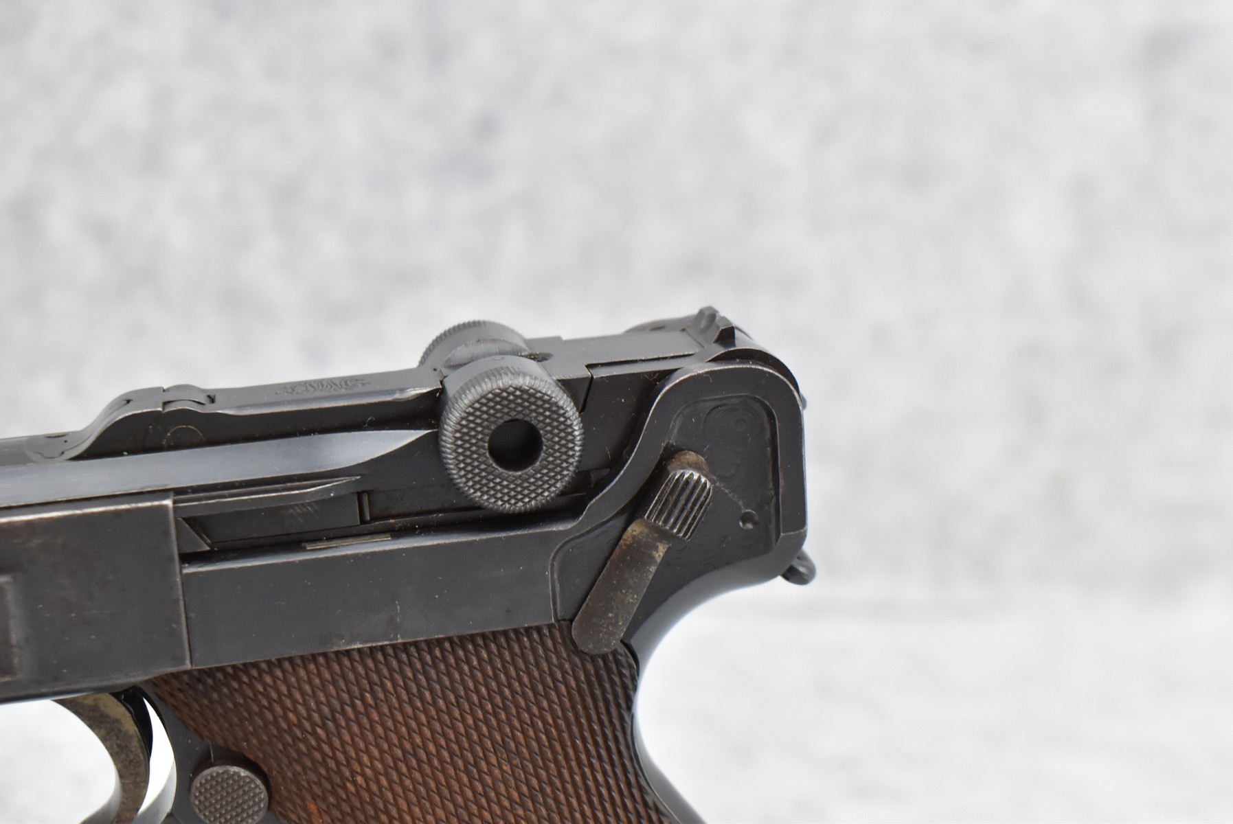 211R. DWM – Mod. P08 Commercial – 7.65 Cal. Semi-Auto Pistol – w/4” Barrel w/Front & Rear Sights – Blued Finish – w/Checkered Wood Grips – w/Wood Button Magazine – Marked “Germany” as Well by Frame Serial #