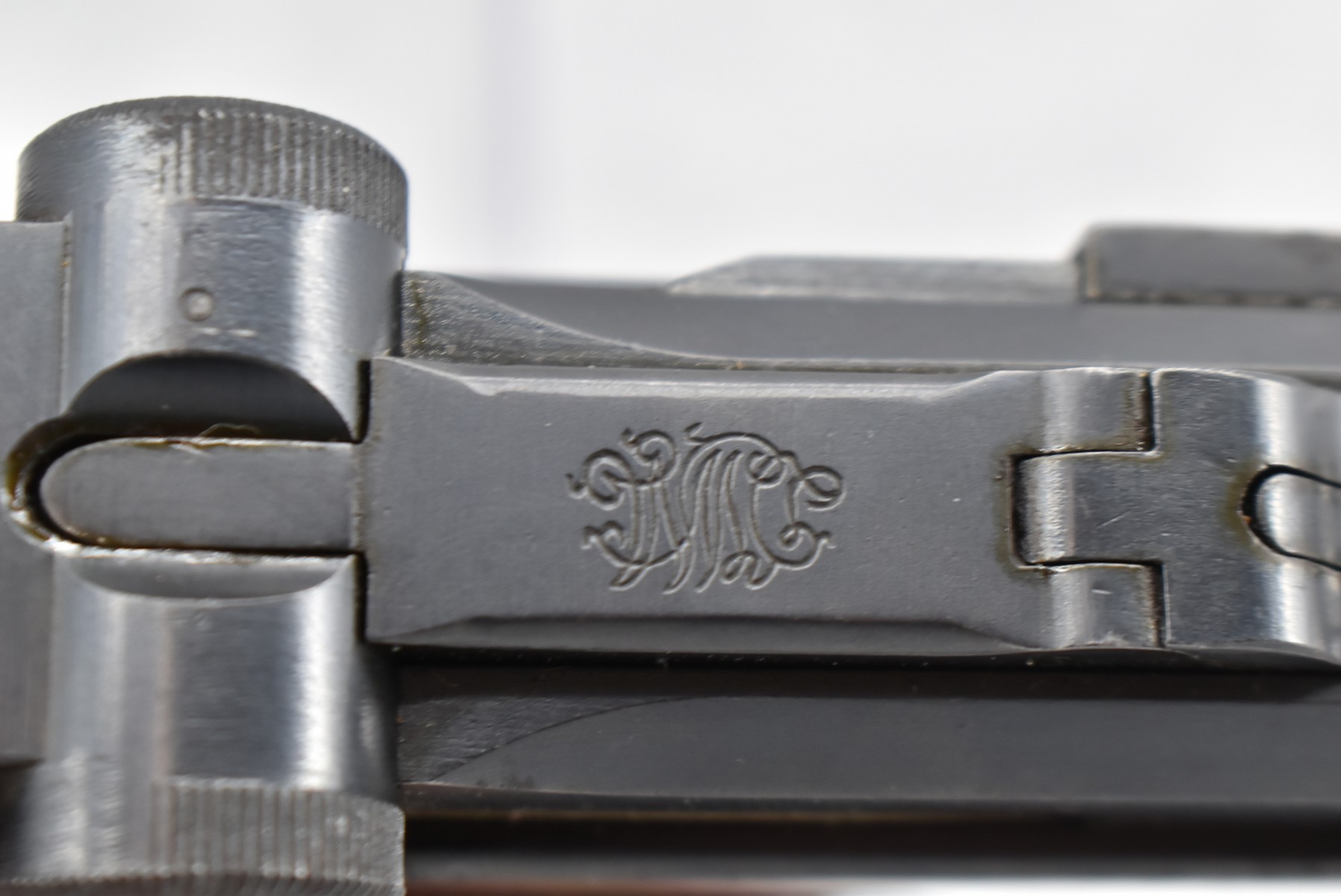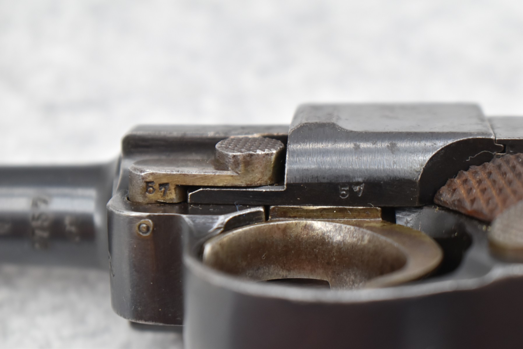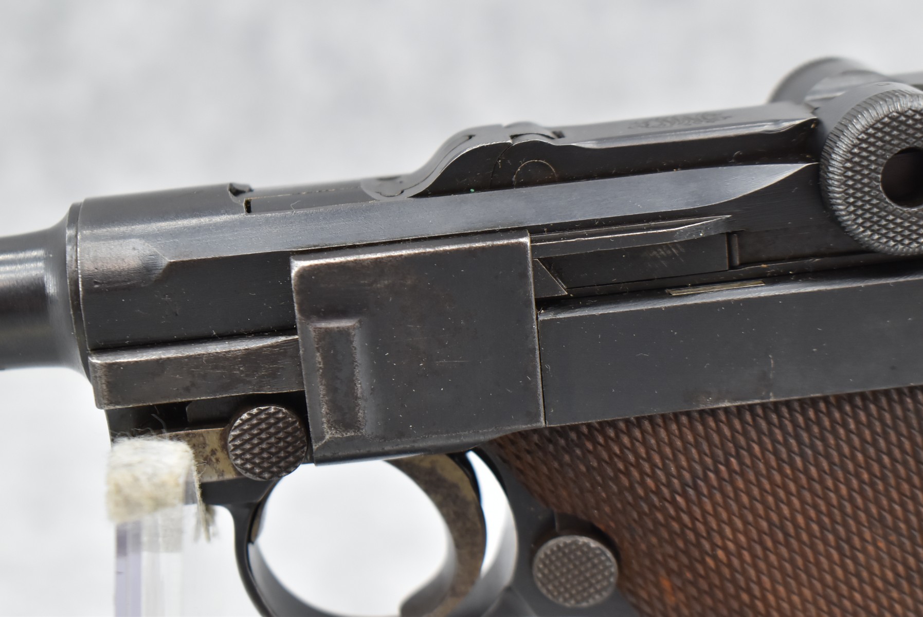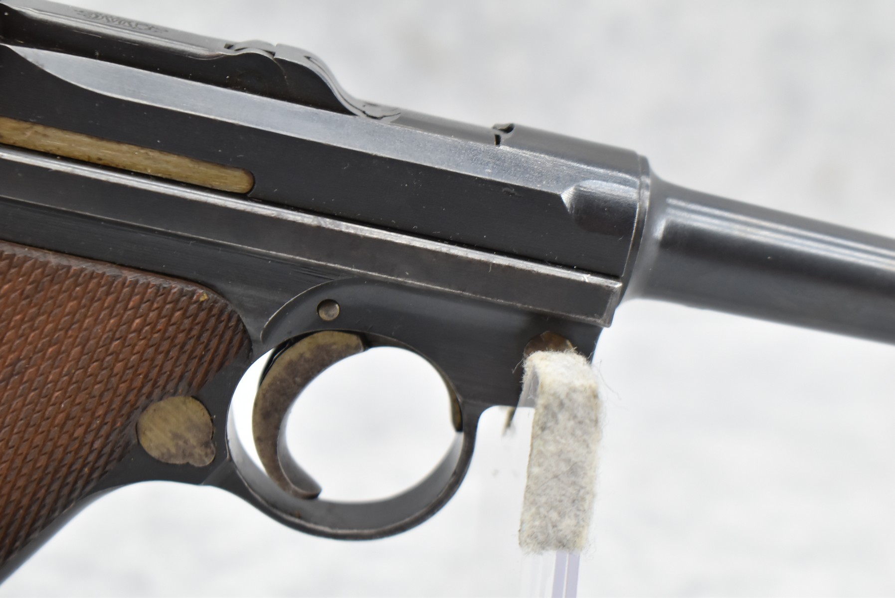 211R. DWM – Mod. P08 Commercial – 7.65 Cal. Semi-Auto Pistol – w/4” Barrel w/Front & Rear Sights – Blued Finish – w/Checkered Wood Grips – w/Wood Button Magazine – Marked “Germany” as Well by Frame Serial #